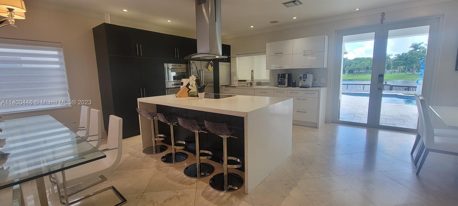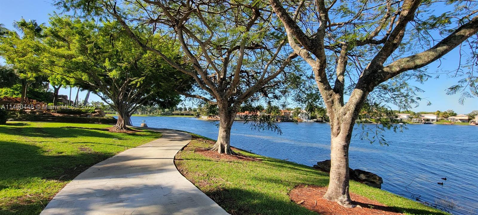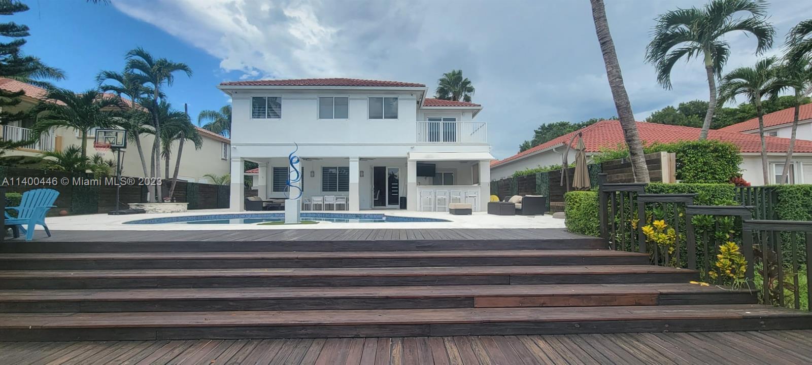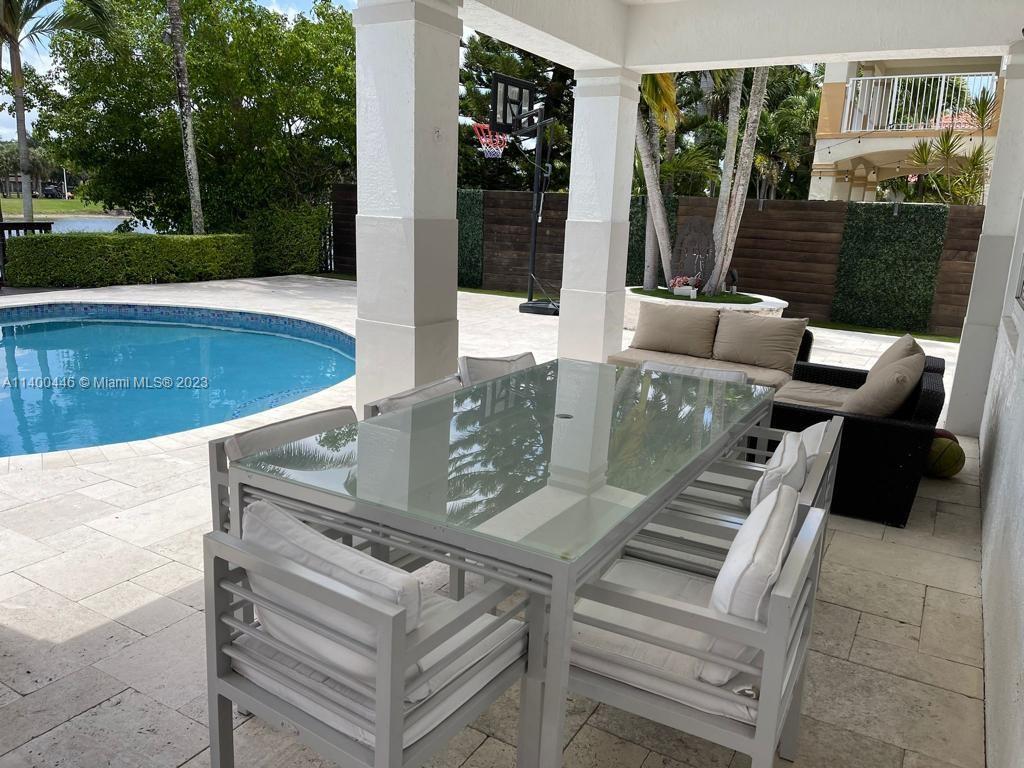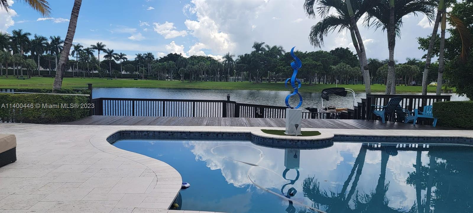 Unique single-family home featuring 6 bedrooms / 4 bathrooms. One bedroom downstairs. Huge Master, big closet, ample terrace overlooking the lake. Marble floors, glass and stainless-steel stairs railing. Quartz kitchen tops w/induction glass-cook-top on island. Marble, glass-enclosed, rain shower heads in all bathrooms. California closets style in all bedrooms. Formal dining room for a 10-seat table. 102” TV screen in spacious family room. Fabulous high-end Alfresco brand equipped summer kitchen with bar height Italian white top, covered and overlooking heated pool, 2,900Ft deck (400 floating) with unobstructed lake view. 2-car garage + 6 on driveway. Exterior outlet ready to connect a power generator in case of power outage. Located in the renowned Resort-Style gated community.