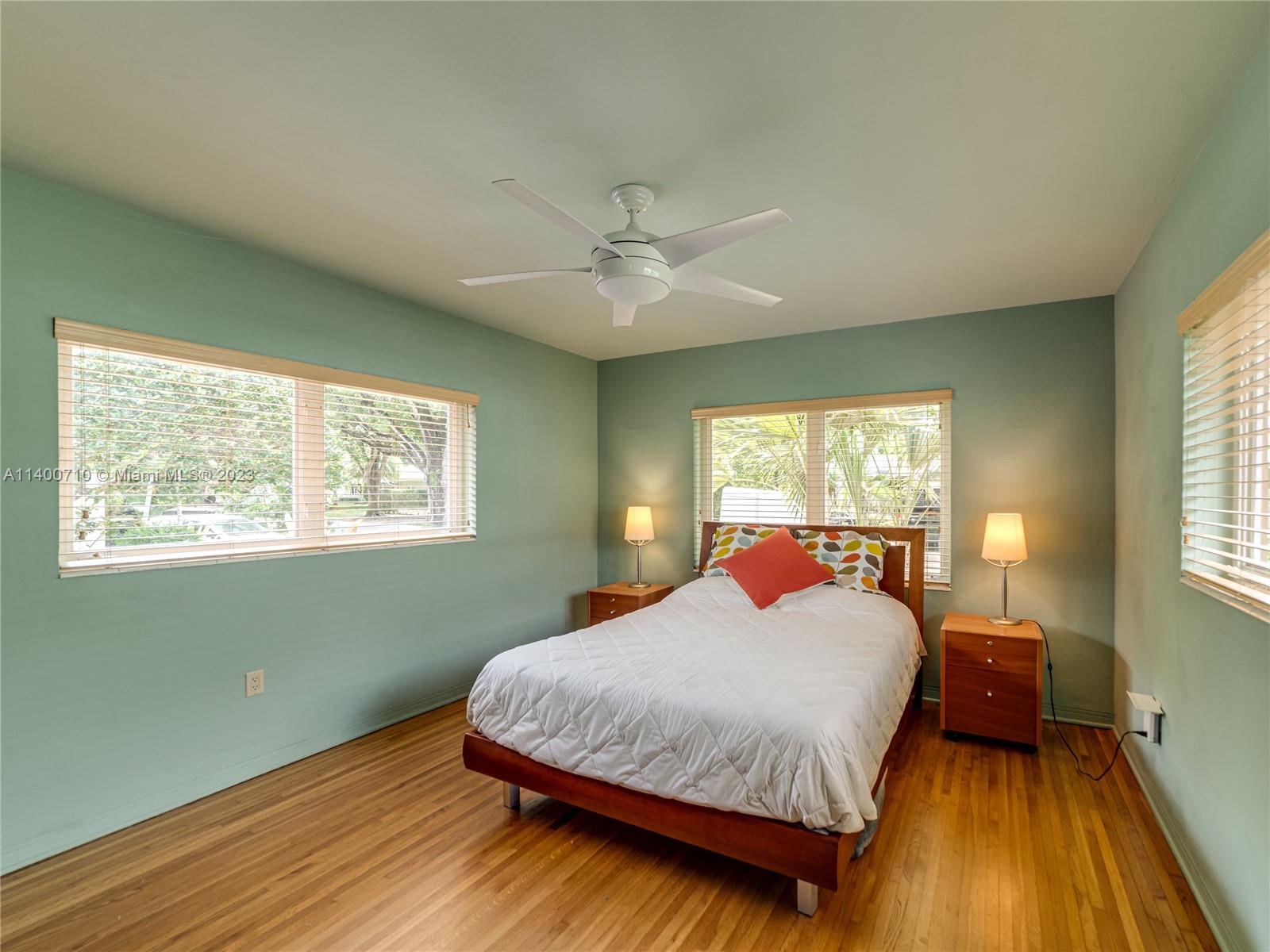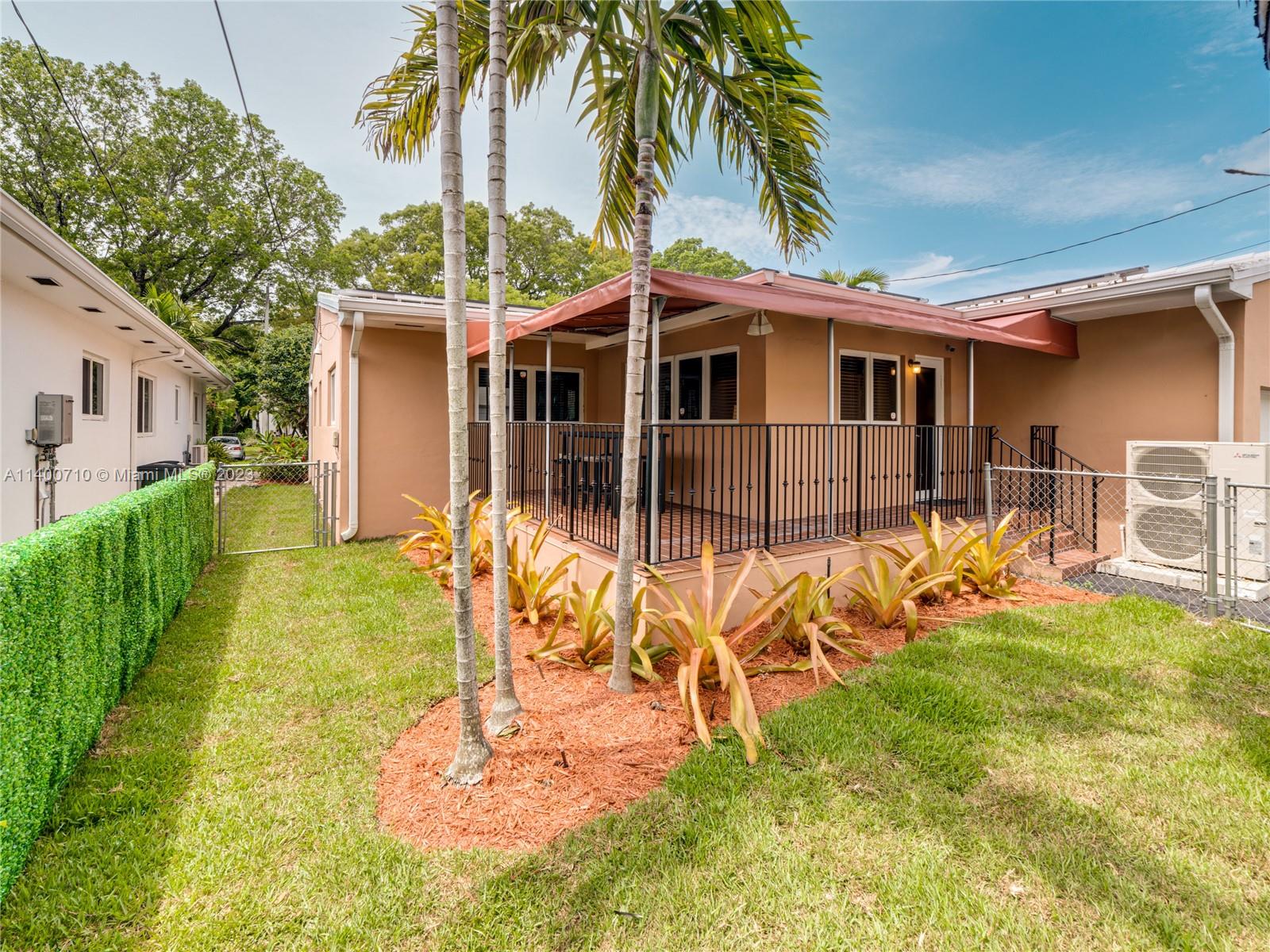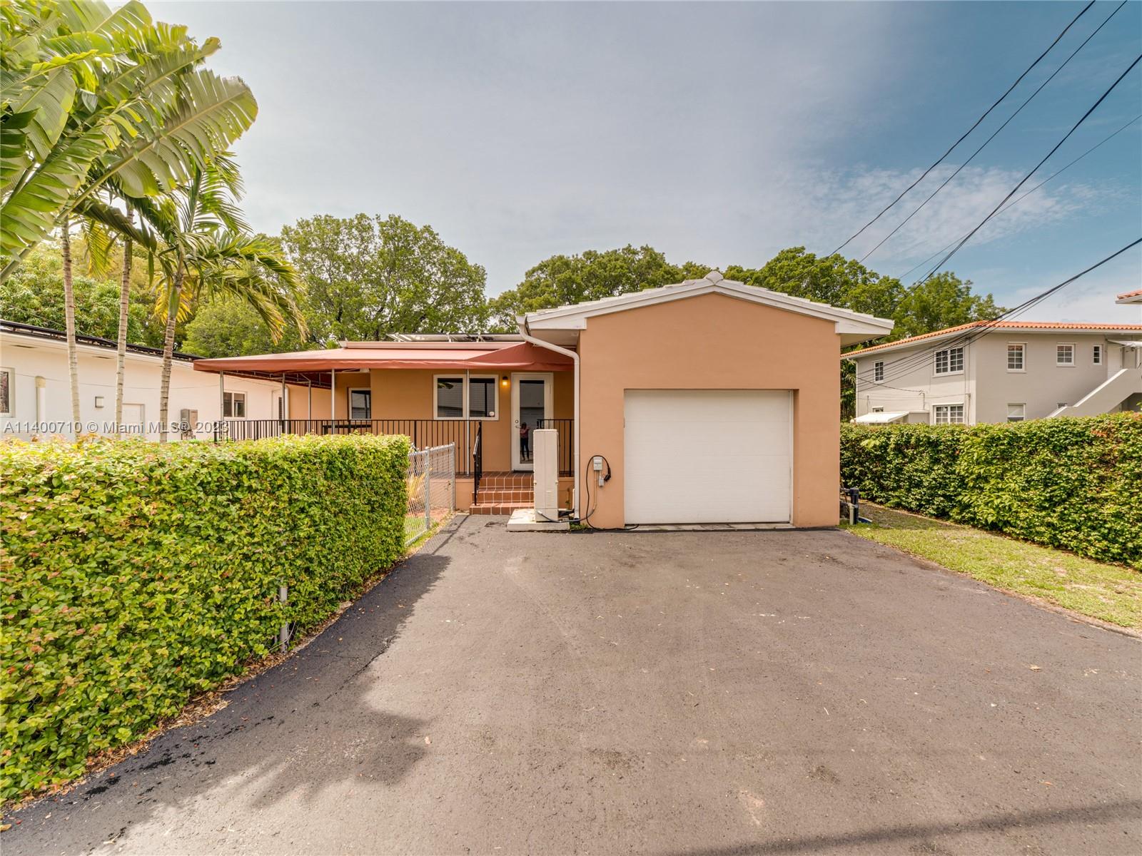 New Listing. Adorable 3 bedroom 2 bath home west of Le Jeune on a tree-lined street within walking distance to the Mile. Located in the Coral Gables Prep school district. Enter the courtyard to the covered porch then into a foyer with the living room. Master bedroom in front. The kitchen opens to the dining room. Two bedrooms and a hall bath beyond. Hardwood floors throughout. Spacious family room with wrap-around porch in the rear and fenced-in yard. Oversized garage. Impact windows and doors. 50 solar panels on the roof provide significant savings on electricity bills. 1,861 adj. sq. ft on a 6,000 ft. lot. The seller would like to close later or lease back through September. Full price or higher expected.