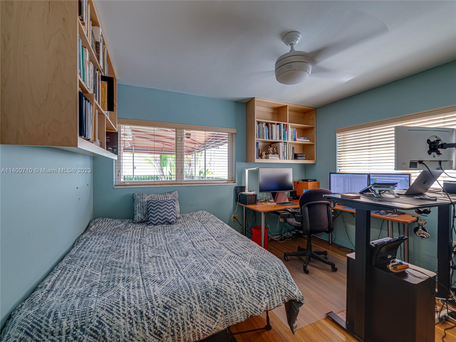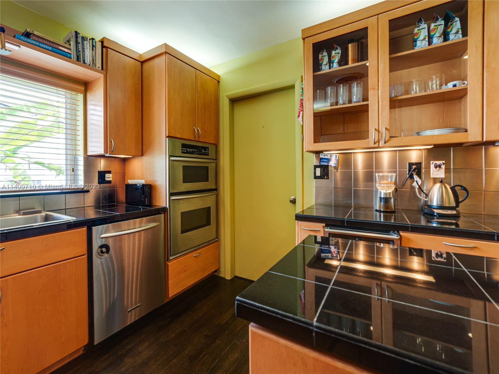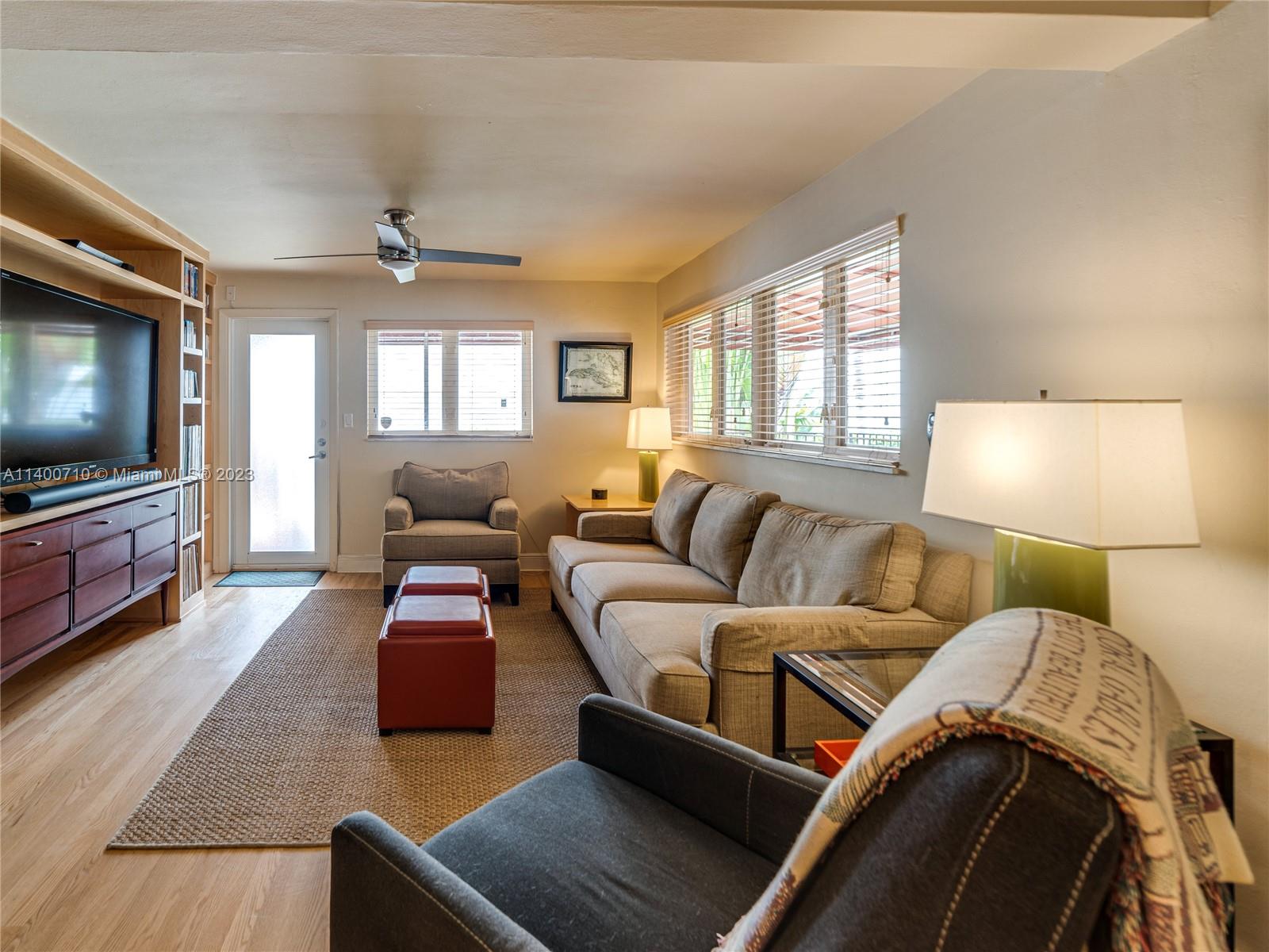 New Listing. Adorable 3 bedroom 2 bath home west of Le Jeune on a tree-lined street within walking distance to the Mile. Located in the Coral Gables Prep school district. Enter the courtyard to the covered porch then into a foyer with the living room. Master bedroom in front. The kitchen opens to the dining room. Two bedrooms and a hall bath beyond. Hardwood floors throughout. Spacious family room with wrap-around porch in the rear and fenced-in yard. Oversized garage. Impact windows and doors. 50 solar panels on the roof provide significant savings on electricity bills. 1,861 adj. sq. ft on a 6,000 ft. lot. The seller would like to close later or lease back through September. Full price or higher expected.