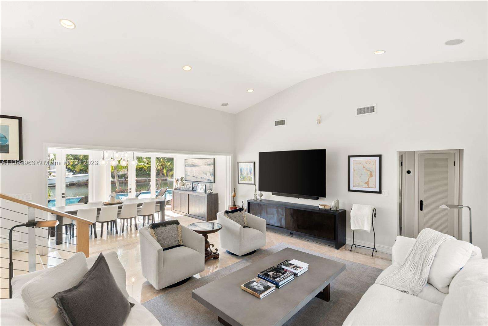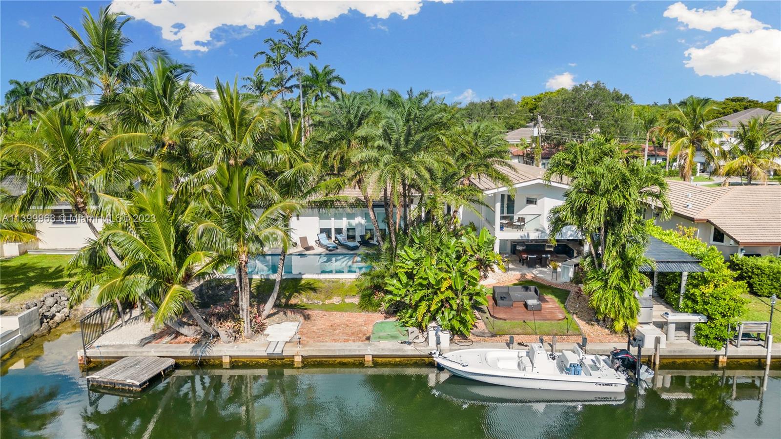 Welcome to paradise! This stunning waterfront home w/Bay access perfectly blends elegance, comfort, & coastal living in the prestigious Gables by The Sea community. The well-designed floor plan features 5 bedrooms, providing ample space for family & guests. An updated kitchen w/modern appliances makes this a culinary enthusiast's dream. The living areas are thoughtfully designed for relaxation & entertainment. One of the highlights of this home is its seamless integration of indoor & outdoor living. Discover a private oasis featuring a sparkling heated pool, outdoor kitchen, & a cabana bath. 100' waterfront w/ convenient one-bridge ocean access. Fully permitted brand new 17,000 lb. Neptune boatlift, Impact windows & 2020 roof. Prime location on double cul de sac w/ 24/7 guard gate.