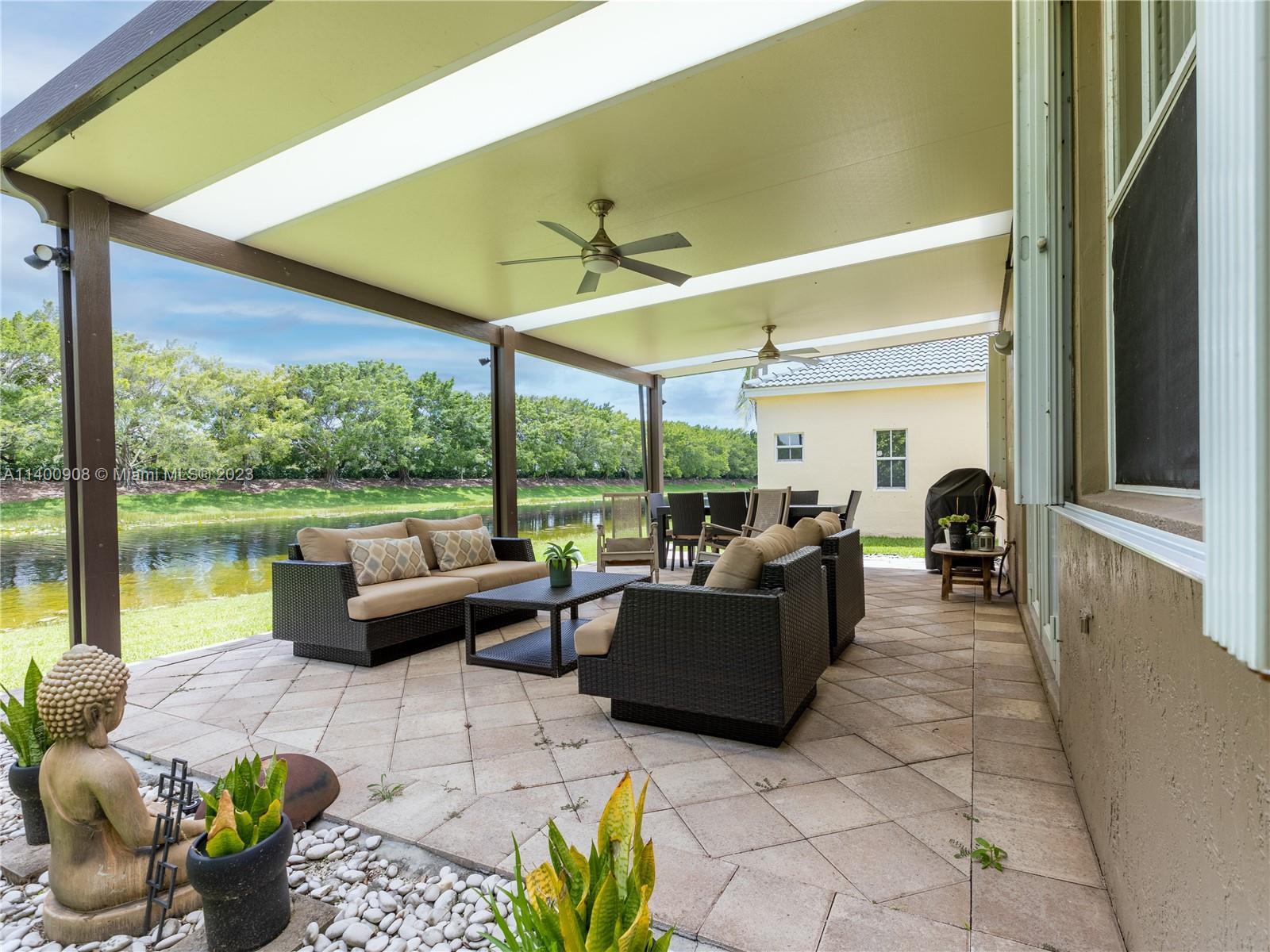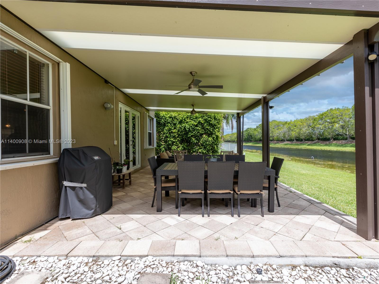 Back on the Market! Beautiful 4-BR + office, 2.5 bathrooms (guest bath and ½ bath renovated), 2-car garage lakefront home in the highly desirable gated community of The Ridges with A-rated schools and convenient access to all highways. Modern kitchen with elegant quartz countertops. Marble Floors in Living Areas. Modern Vinyl Wood Floors in Stairs and All Bedrooms. Stunning lake views with no neighbors in the back provide extra privacy allowing you to enjoy the beauty of the surroundings. Large extended covered patio to relax and entertain. Unique custom storage built-in under the stairs. Accordion shutters offer quick protection against hurricanes and storms. A neutral color scheme creates a versatile backdrop for any decor style and allows you to personalize the space.