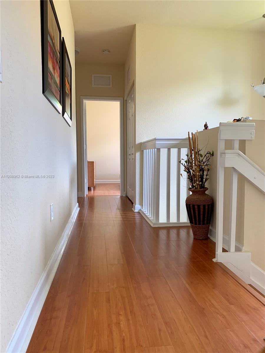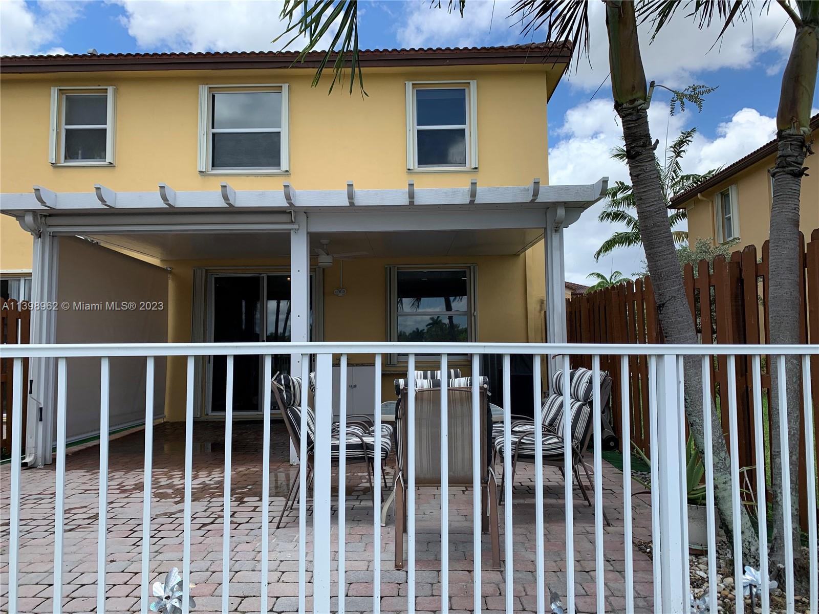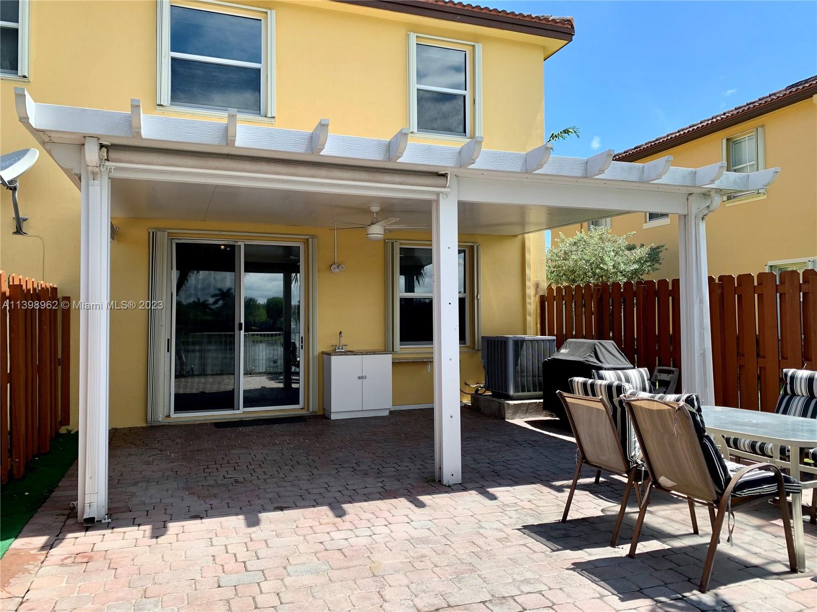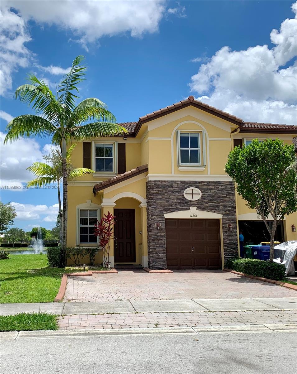 Beautiful Well Maintained CORNER Two-Story LAKE View with 4 Bedrooms and 2/1 Bathrooms. Spacious Paved Patio with Pergola and Screens. Ceramic Tile throughout First Floor and Laminate Floor Upstairs. Kitchen with Wood Cabinets and Granite Counter Tops. Main Bedroom with Walk-In Californian Closets. 1 Car Garage and 2 Driveway Parking. Near the best Park in Doral, The Legacy Park. Property has access to The Islands At Doral Clubhouse offering great amenities such as Tennis Courts, Basketball, Gym, Pool, Kids Playground, Game and Party Room. Near Schools and Main Highways. No Contingency to Appraisal