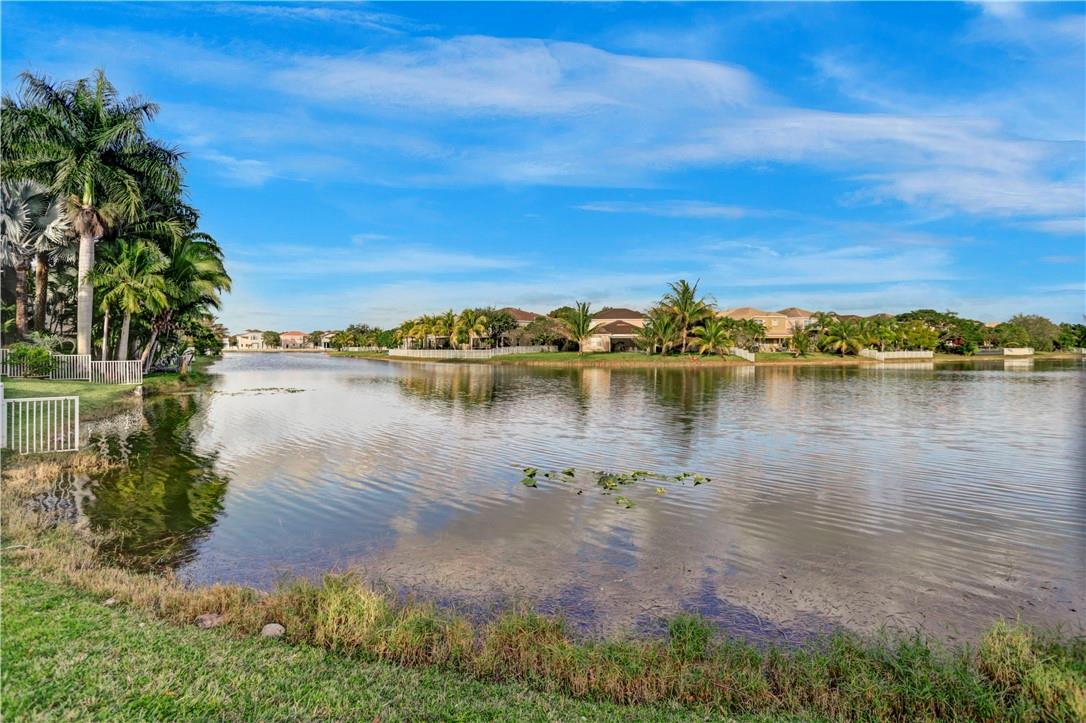 SELLER CONCESSION TO BUY DOWN RATE AVAILABLE! Presenting a meticulously maintained highly coveted 4/3 in Riviera Isles. Wildly wide lake views provide calm and serenity while enjoying delicious fruit trees. Abode adorned with newly installed impact windows/doors and accordion shutters for maximum hurricane protection. Walk on stunning porcelain tile along with awesome oak wood flooring in the bedrooms. Pride of ownership wafts through this space with gently used appliances, granite countertops and solid wood cabinets. Surround sound pipes through the home providing easy entertainment for sweet social gatherings. Subdivision clad with manned gate, roaming security and state of the art resort style club house. Home is secure with cameras covering front and backside for remote monitoring.