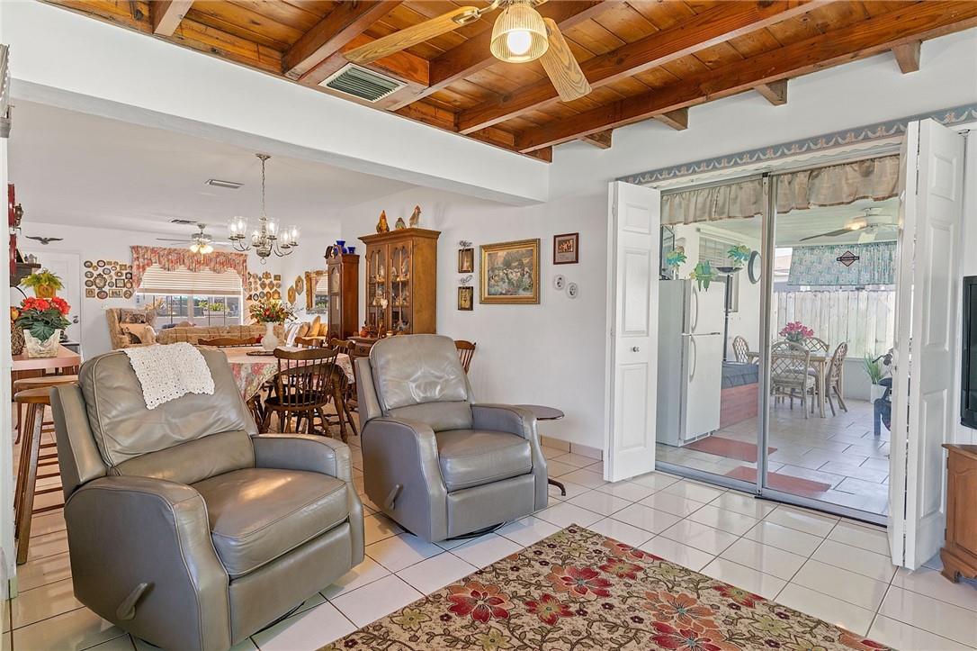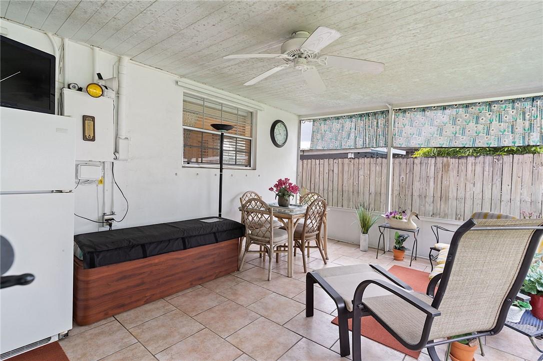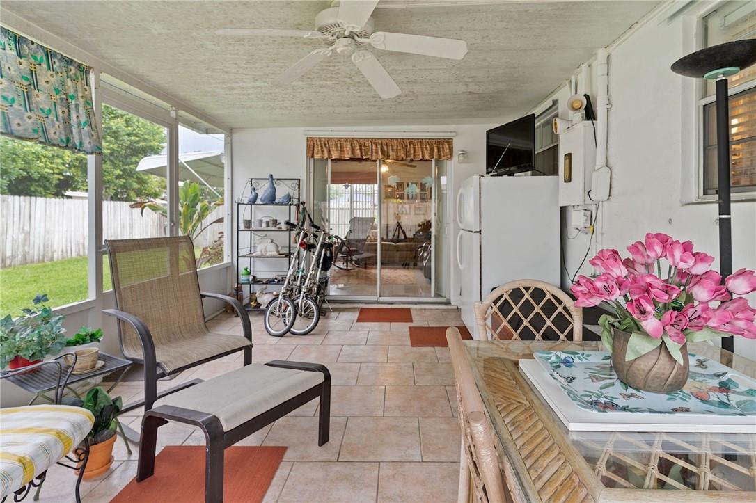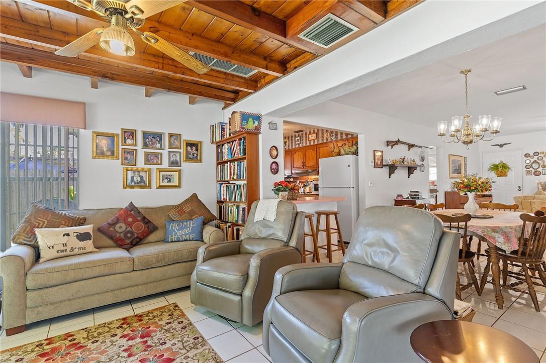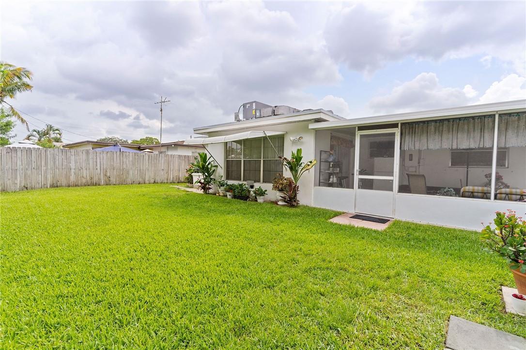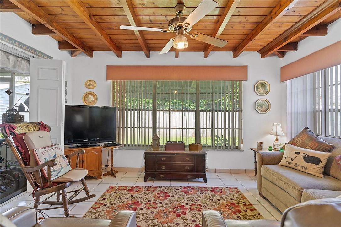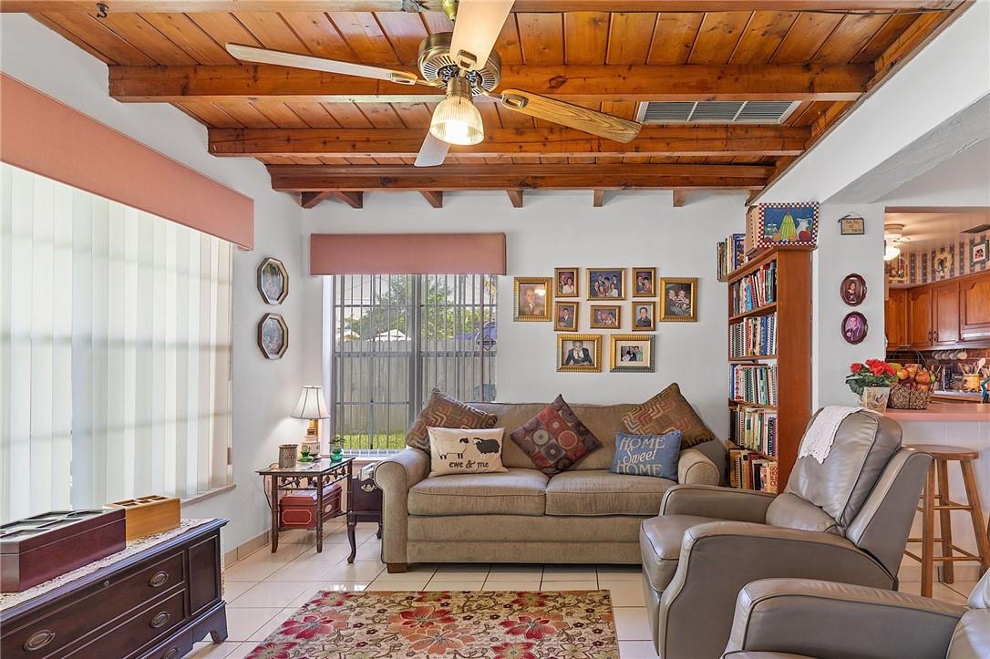 Welcome your buyers to this impeccably maintained home in west Hollywood. Pride of ownership is evident as soon as you pull up to the home. Lush landscaping abounds in both the front and back yard. As you step into the home the pride of ownership is evident. This home boasts of a new roof and new AC. Look up and notice the beautiful custom hardwood ceiling and beams in the family room. This home has tile floors throughout the living area and wood floors in the primary suite. Both bathrooms have been recently remodeled. Nice sized laundry room with a newer washer & dryer, and a screened back patio are both attractive bonuses to this lovely home. The backyard is fenced for your pets as well. This home is priced to sell and will not last. Hurry and bring your buyers before it is too late.