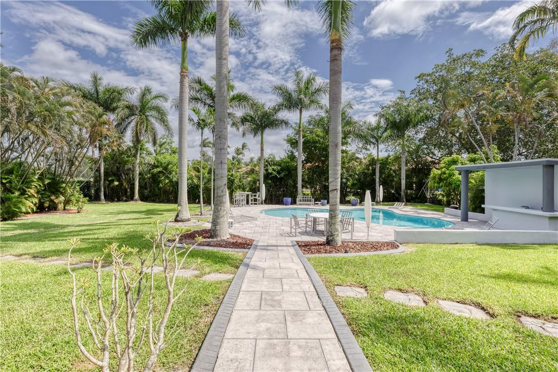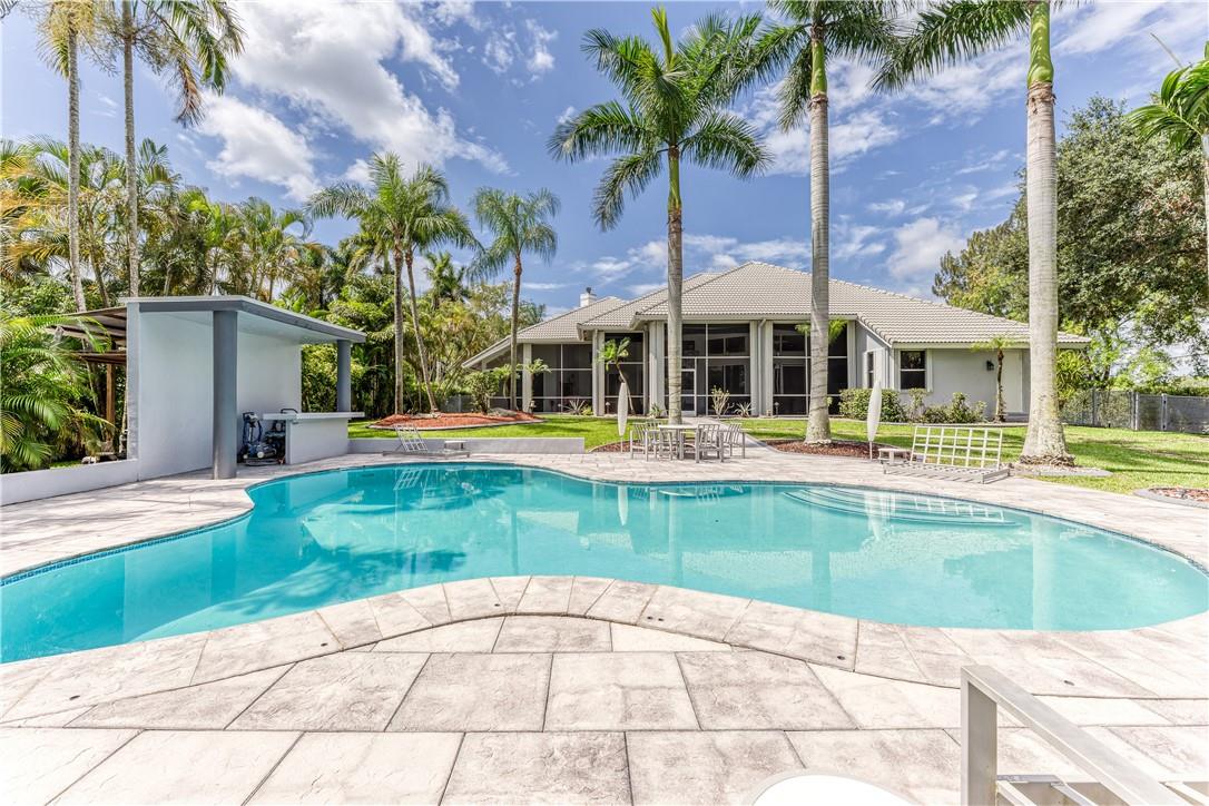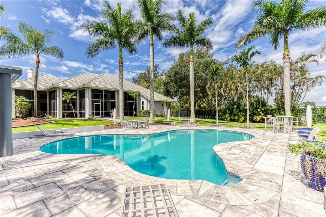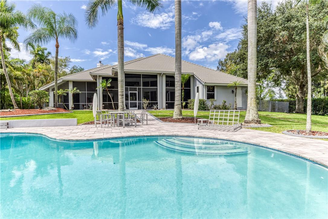 Welcome to Serenity.. Nestled on a Cul De Sac in the prestigious GATED community of THE HAMLET, this spacious split plan 6 Bedrooms and 5.5 Bathrooms home sits on over .80 Acre lot with a beautifully resurfaced pool and landscaped fenced backyard. The alluring MODERN interior boasts tall volume ceilings , tons of natural light, open layout kitchen with 6 burner Viking gas stove, large family room, formal dining area, sitting room and a fun wine/bar area. The huge screened patio screams entertainment with dining area, TV and wrap-around lounging spots. Currently the 3 Car Garage is the ultimate Man Cave , however, still functional as a garage. Community has Basketball Court, Tennis and soon Pickleball . All information is believed to be accurate but not warranted.