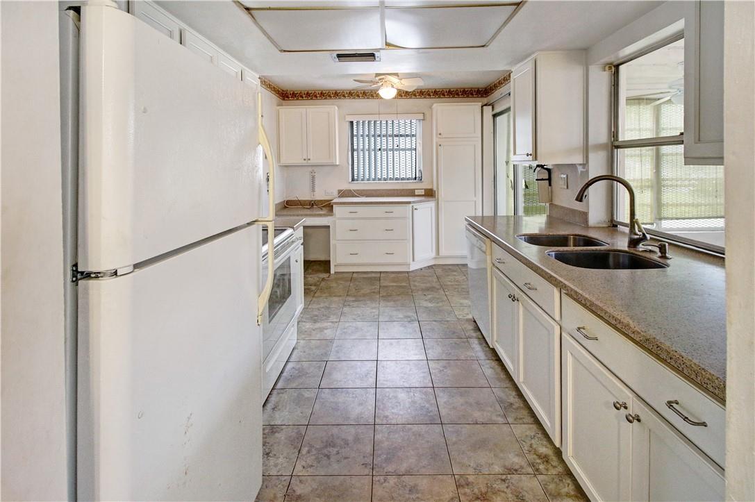 Sold As-Is & owned by the original family, this 1,200sqft+ 2/2 home in the 55+ Leisureville Community is ready for your personal touch. The living/dining areas feature an open concept, an updated kitchen, mild updates to the handicap accessible bathrooms, & walk-in closets for each bedroom. There's also an extended 1-car garage with laundry, working-sink, NEW WATER HEATER (installed 6/21/23), Central A/C, and enclosed patio with A/C wall-unit. The tile/flat roof were re-roofed in 2011, the kitchen was updated in 2015, Central A/C was replaced in 2017. LAND LEASE IS PAID OFF IN FULL! Leisureville Pompano Beach is a Private Golf Community. The HOA offers 2 pools, scheduled shuttlebuses, two clubhouses, a free 9-hole Golf Course (Par 3) to all residents, game room, small library and more.