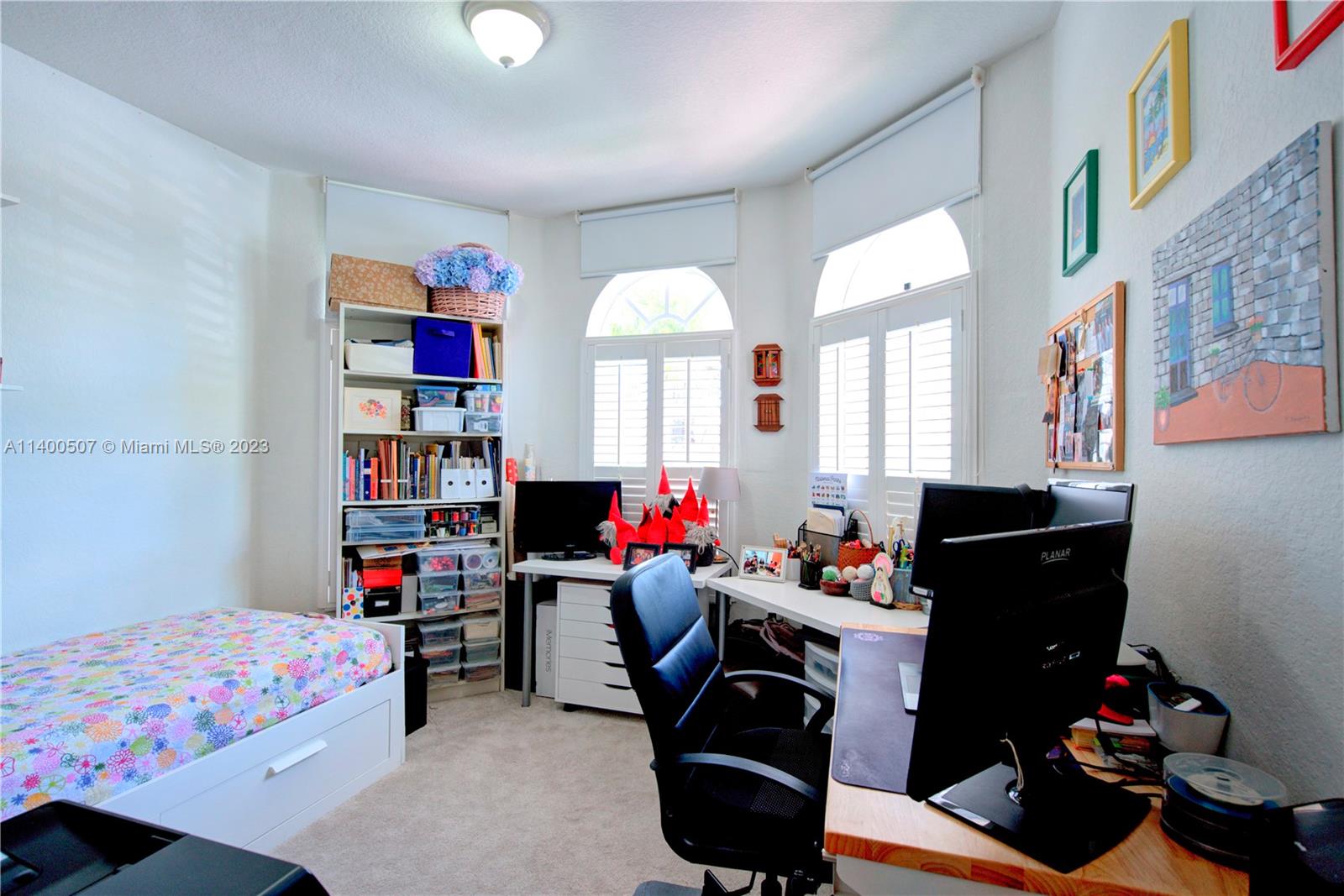 Experience luxury living at this fully updated Genovese Model 4-bedroom, 3-bathroom single-family home in the sought-after Islands at Doral. This home offers abundant natural light and tasteful upgrades on of airy and spacious floor plan. Spacious Bedrooms with great closet space and stunning and romantic white wood shutters, tiled entrance takes you to two rooms that share a bathroom divided by pocket doors. Stainless steel appliances and wood floors compliment the cozy and charming interior. Sip your favorite drink on the mango and avocado tree-covered patio and marvel at the quiet well-maintained community. Enjoy other features like the double garage plus two car spaces in the driveway and laundry room. The perks of living here include a community pool, exercise room, and playground.