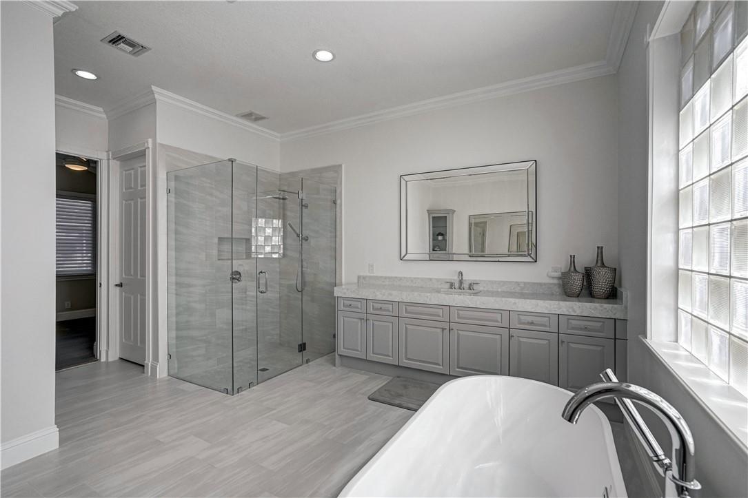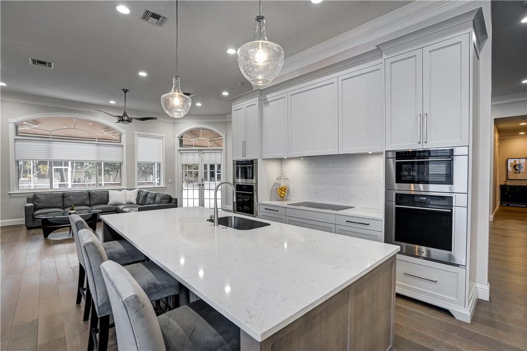 Beautiful newly renovated 7 bedroom, 6 bath home with large attached guest house on lushly landscaped builder acre lot in an upscale gated community. This meticulously maintained home has a gourmet kitchen with custom cabinetry, Cambria countertops and a huge island with two Miele dishwashers. Appliances include a Sub-Zero refrigerator and freezer, a Wolf appliance package which has two ovens, a steam oven, an induction cooktop and a microwave. There is a separate bar area with a Wolf built-in coffee system, Sub-Zero clear ice maker and Sub-Zero wine cooler and an enormous 115 square foot walk in pantry. The main house features 5 bedrooms and 4 full baths. The large 2 bedroom, 2 bath guest house is 1,584 square feet and features a full kitchen with Sub-Zero and Wolf appliances.