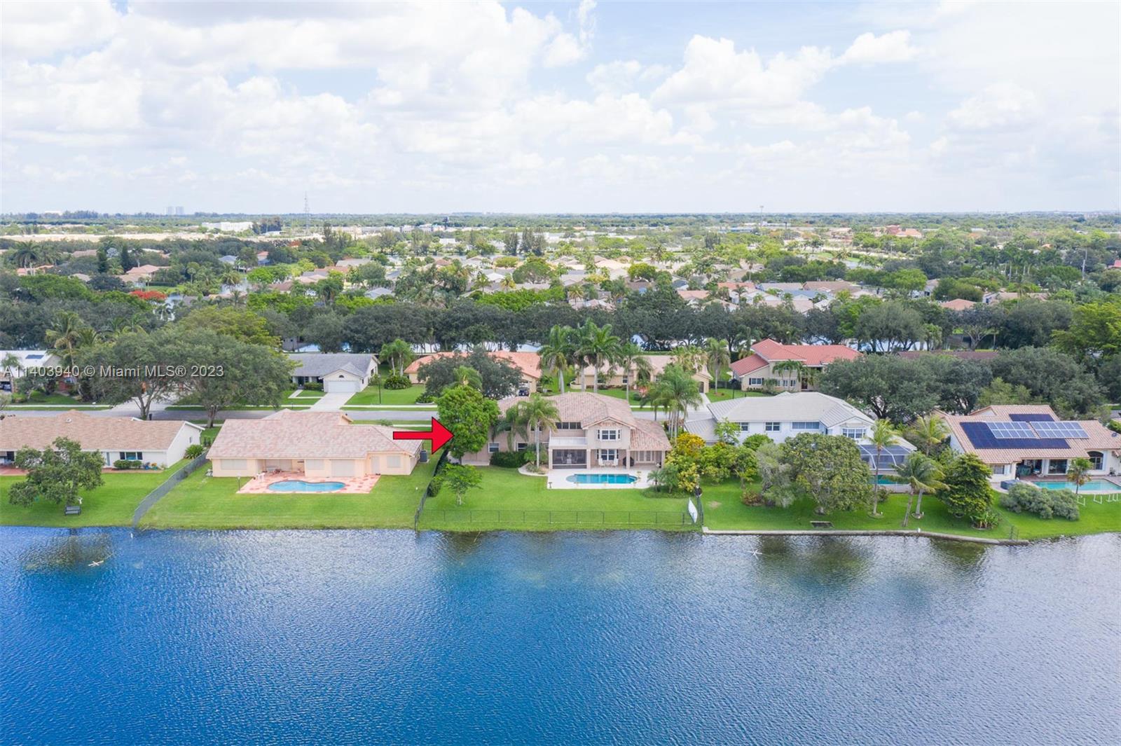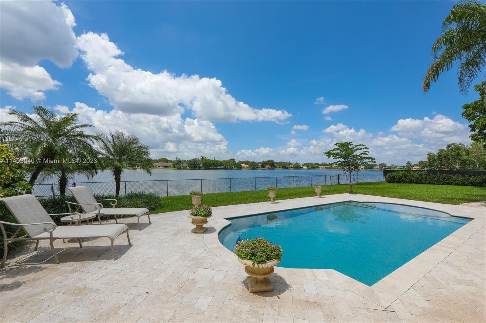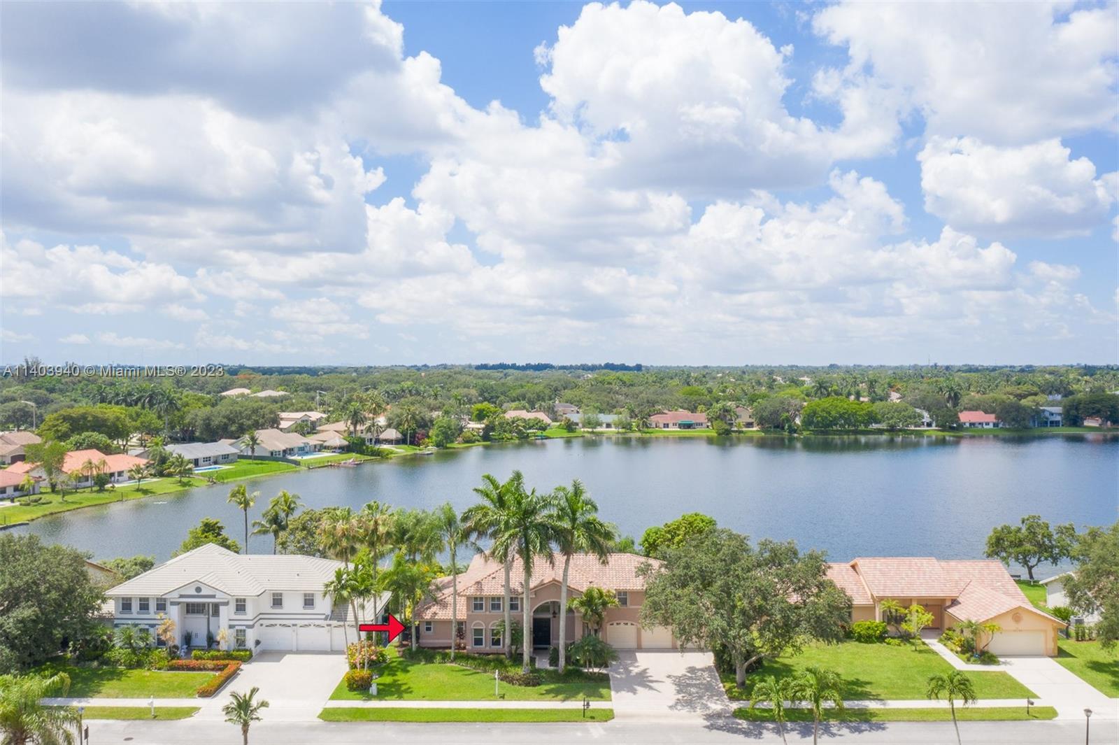 A RARE OPPORTUNITY TO OWN THE LARGEST MODEL IN HIGHLY DESIRABLE RIDGEVIEW LAKE ESTATES. 5 BED 3.5 BATHS BREATHTAKING PANORAMIC WATER VIEWS FROM EVERY ROOM. HEATED SALT POOL SURROUNDED BY ELEGANT TRAVERTINE MARBLE DECKING IS THE ULTIMATE BACKYARD OASIS. ENORMOUS PRIMARY SUITE, DUAL WALK IN CLOSETS & PRIVATE BALCONY OVERLOOKING MAGNIFICENT SUNSETS ON ONE OF THE LARGEST LAKES IN DAVIE. FULLY FENCED, PRIVACY HEDGES, TONS OF YARD SPACE WITH LAKE ACCESS. 3-WAY BEDROOM SPLIT, ONE BEDROOM ON MAIN LEVEL PERFECT GUEST QUARTERS, MOTHER IN LAW SUITE OR HOME OFFICE PLUS FULL BATH & POWDER ROOM. VAULTED CEILINGS, CABANA BATHROOM, GORGEOUS REMODELED KITCHEN. CLOSETS GALORE. ACCORDION HURRICANE SHUTTERS, 2014 ROOF, 2 NEW AC'S, GARAGE CAN ACCOMMODATE BOAT, A-RATED DAVIE SCHOOLS! COMPLETE CBS CONSTRUCTION.