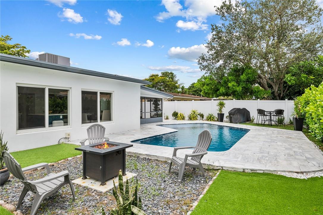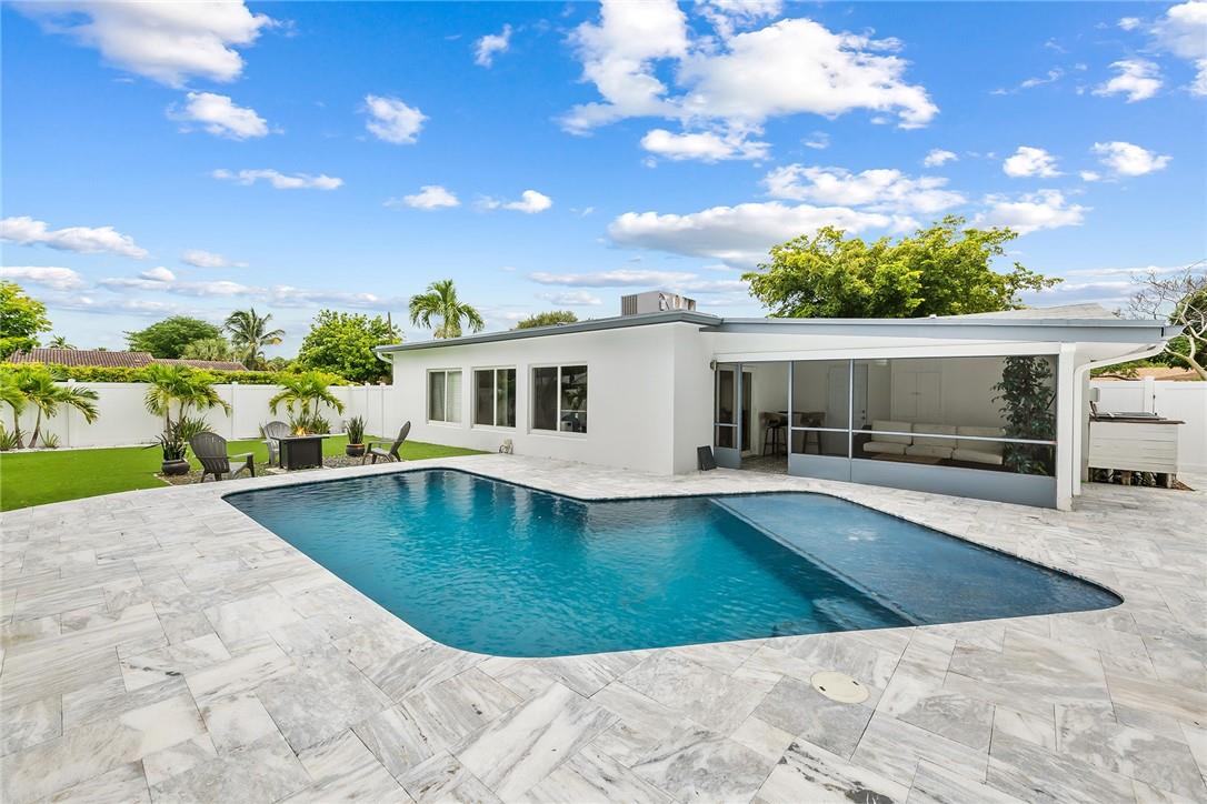 Welcome to your completely renovated, move in ready east Pompano Beach 4 bedroom home! Completely turn-key. Everything from the roof + impact windows, to the interiors, the back yard and the AC, Tankless Water Heater + Electrical have been DONE. The backyard is a dream with newly installed artificial grass for zero maintenance, new no-slip marble pool deck and refinished oversized pool. Screened in Patio overlooking pool. Modern/Transitional interiors are perfect for any taste. Corner Lot, 5 minutes to the beach, 15 min to downtown Fort Lauderdale and to Boca. Generates $350-450$/n on vacation rental websites with 80% occupancy