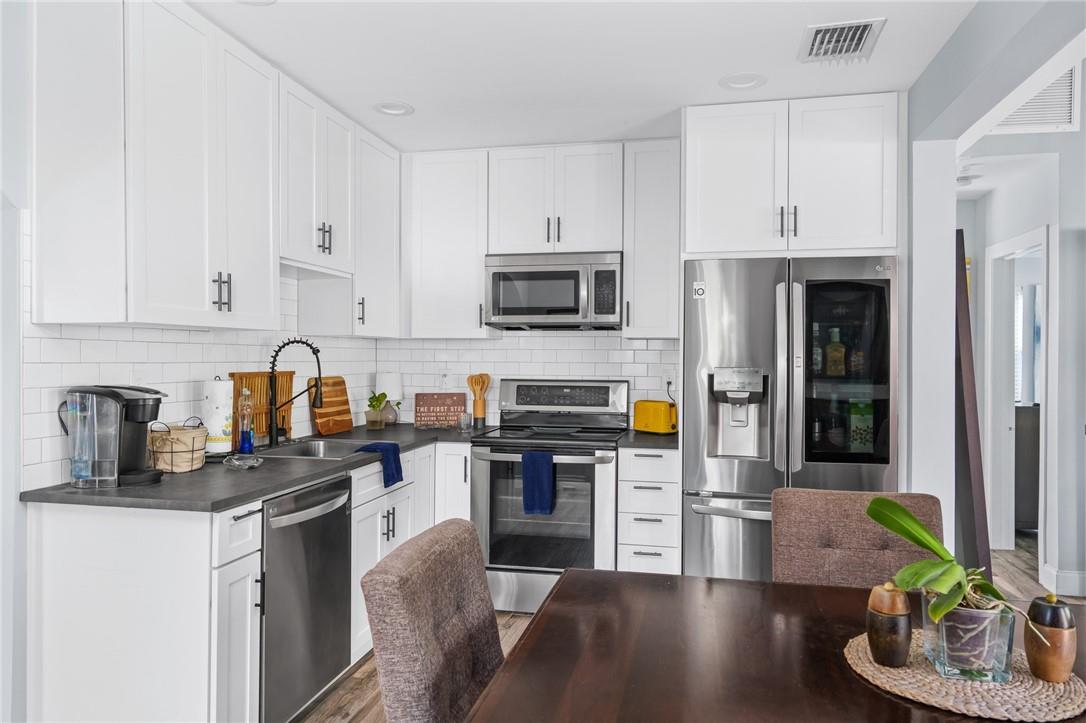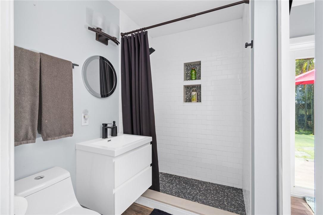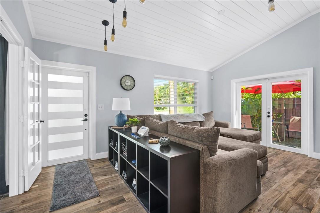 Charming & central corner lot 2bed/1.5 bath home in East Fort Lauderdale just moments from Fort Lauderdale High, Wilton Drive & minutes to the downtown Fort Lauderdale Financial district & Las Olas! This home features open exposed ceilings in the living area with dramatic height & an open concept kitchen & dining area. The updated kitchen features contemporary white cabinetry, subway tile backsplash & newer premium SS appliances. Bath features a spacious shower with subway tile. BONUS room currently being used as a guest suite and can double as a separate office, gym, theater room & more! impact doors & windows! Lots of open patio areas for entertaining, screened in patio for the winter months, outdoor shower & large fenced in yard for pets to enjoy!