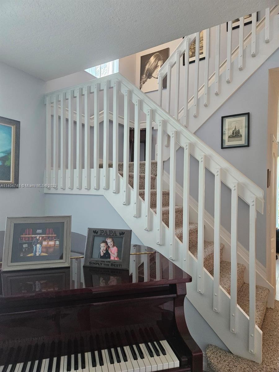Conveniently located in the gated community of Sandcastles at Doral, this 3 bedroom, 2.5 bathrooms, garage home is situated to the rear of the community overlooking a peaceful lake. Great location- close to schools and shopping. Paved pathway for walking, and bike riding, from the community to school, 1 park. 1 dog park. Newly remodeled the entire first floor in 2021. Bright End Unit with side windows. Concrete construction on both floors including second-floor slab ceiling fans in two bedrooms and family room."Rolladen" accordion-type storm shutters. 3M security/sun film on all windows except the textured powder room. The new Kitchen includes stainless steel "Samsung" appliances- side by side.