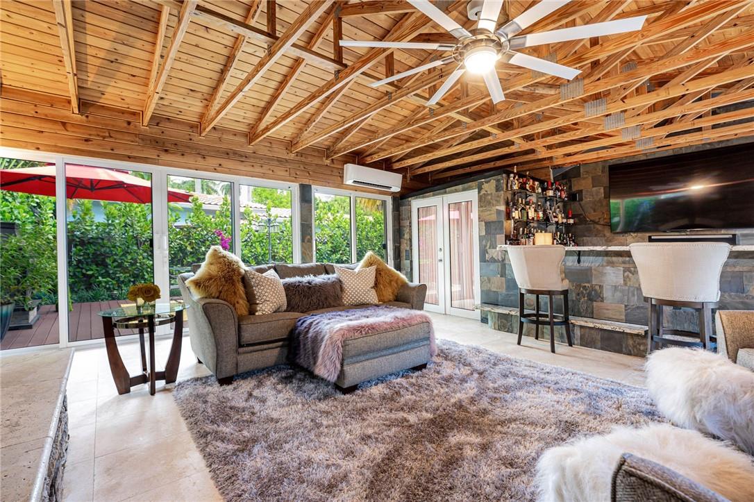 Very private completely remodeled move in ready home located in the beautiful Tarpon River neighborhood. This immaculate home is centrally located for short bike, boat, golf cart, or car ride to all the things in downtown Fort Lauderdale, the historic Riverfront and Las Olas. Perfect for entertaining inside and out. Hurricane impact windows & doors throughout with a 2016 roof. Huge Florida room for entertaining with a wood burning pizza oven, fireplace and bar. The entire property is surrounded by privay hedges, outdoor fireplace and grill, large shed, generator hook up and too many other custom features to list. All of the furniture can be included in the sale. A must see property.