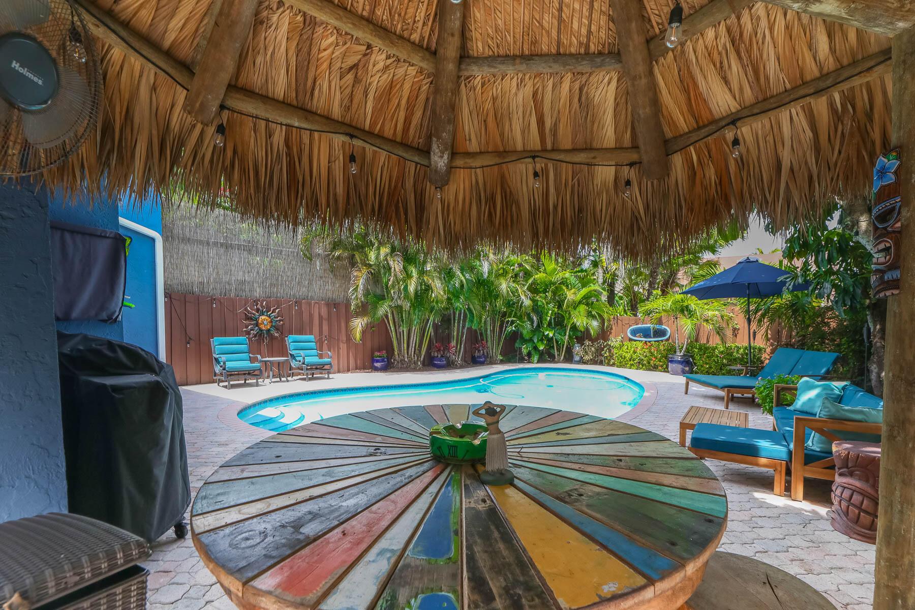 This 2bd/2ba townhome is on the original developer lot, offering exclusivity & privacy, boasting a brand-new roof, new paint, a spacious parking area with newly installed brick pavers & an insulated bamboo woodgrain ceiling. Step outside into the backyard oasis & discover a gorgeous tiki hut & sparkling heated pool, perfect for hosting a summer barbecue or simply unwinding after a long day in solitude. No HOA or rental restrictions, Within walking distance to Las Olas blvd, Ft Lauderdale beach & downtown. Just a short 10-minute drive to Fort Lauderdale Airport, 2 minutes to Brightline. This is truly a unique opportunity to enter the prestigious Victoria Park neighborhood at a relatively low price point, without sacrificing privacy, outdoor living space or features like a private pool.