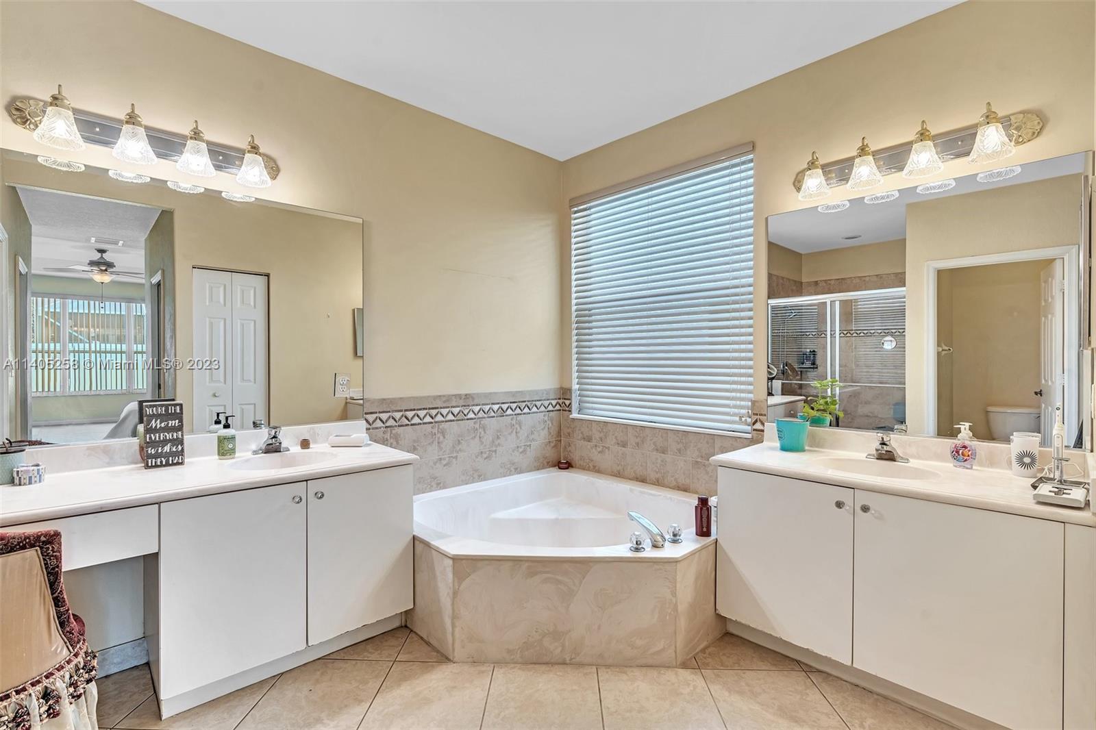 ONE STORY, spacious, freshly painted ready to move in Home. This 5/3 house in the beautiful, gated community of Silver Shores with 14’ Ceiling Foyer Entry and 12’ Ceiling throughout, 3 Car Garage, large Bedrooms, Upgraded Baths. Porcelain Tiles & lots of Natural Light throughout the entire home. Large Master Suite with Tray Ceiling, 2 Walk-in Closets, Spa like Bath w/ Dual Sink Vanities, Roman Tub & Shower. Kitchen w/ Tall White Cabinets, Two Pantries, Centered Island facing the Family Room with a separate Breakfast Area overlooking the Garden. Resort-style amenities include 24-hr Security, Fitness Center, Tennis Court, Playground, Pool. Minutes away from Shopping, Restaurants, Hospitals, Schools, Major Highways, and Beaches.