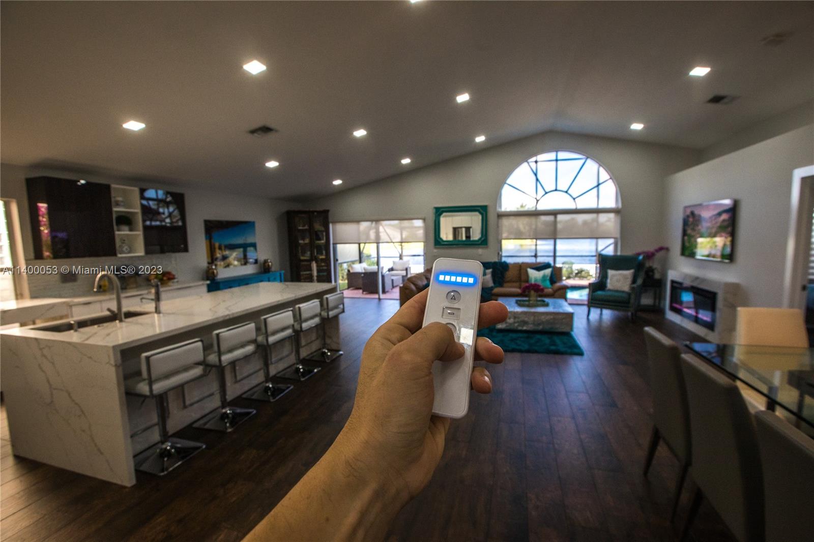 WELCOME TO PARADISE! FULLY UPGRADED Over $150k+! LAKE POOL HOME. BRAND NEW AC! Beautiful sunrises! Relaxed, bright, clean home with SPECTACULAR VIEWS. OPEN CONCEPT design. Italian designer kitchen, waterfall QUARTZ countertops & upscale appliances. Porcelain floors with wood texture, 60+ smart lights. Electric Fireplace. Spa-like jacuzzi tub & full-size shower. Custom closets. European zebra blinds & blackout shades. Family room motorized blinds. Smart thermostat. 3 rooms + 4th enclosed garage studio space under AC (can be a room). External smart storage space. Custom landscape. Private parks, biking trails, walkways, TOP-rated schools. IDEAL LOCATION. Close to top hospitals, shopping, restaurants & more. Homeowner warranty plan included. HURRY! You won't find any other gem like this one.