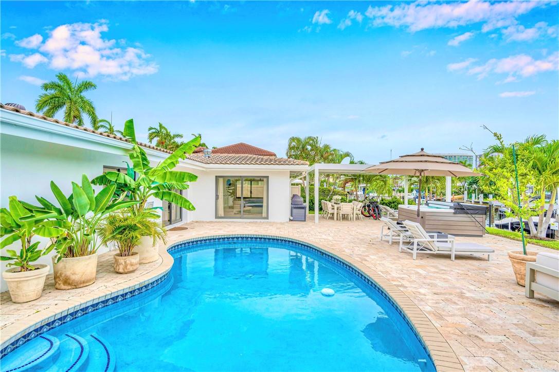 Introducing an exquisite waterfront residence in Pompano Beach's prestigious Harbor Villages. This impeccably remodeled 3-bed, 3-bath property boasts unparalleled elegance. Marvel at the flawless marble flooring, the sleek Quartz countertops, and throughout impact windows that bathe each room in natural light. Step into the backyard oasis adorned with beautiful pavers and the recently installed pergola that adds a touch of charm and provides the perfect setting for entertaining with family and friends. Featuring 80 FT of water frontage, a brand-new dock, sea wall, and boat lift. Newer A/C system, stainless steel appliances, treated Picote coating on the pipes, this home offers perfection in every aspect. Minutes to restaurants, shops, entertainment, golfing, fitness centers and the beach.
