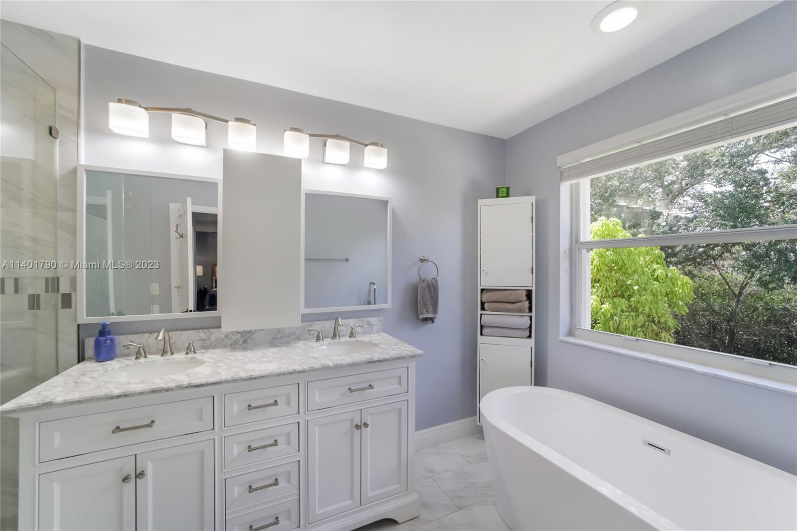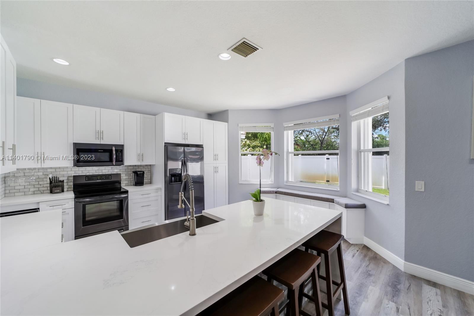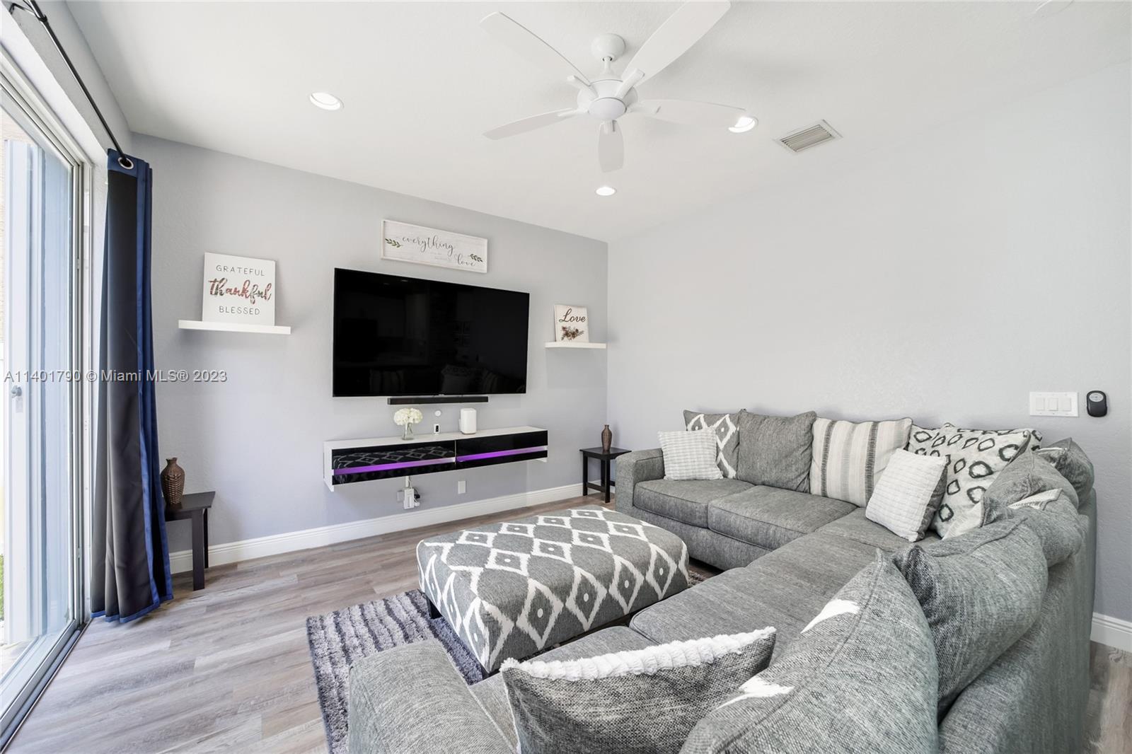 This extraordinarily beautiful two-story home located in the desirable gated community of Silver Shores is nestled in the heart of Miramar. The 3 bedroom and 2.5 bath residence mesmerizes with gorgeous Mediterranean architecture, an openly flowing floor plan, plenty of natural light, beautiful wood floors, and a spacious living room. Entertainment friendly, the upgraded open concept gourmet kitchen features stainless-steel appliances, quartz counters, and a farmhouse sink. All bedrooms are generously sized with dedicated custom built closets, while the primary bedroom dazzles with a spa-inspired en suite boasting a soaking tub, dual sinks, and a separate shower. Other features: Two car garage, laundry area in garage, fenced-in backyard with patio, and solar panels to power the entire home.