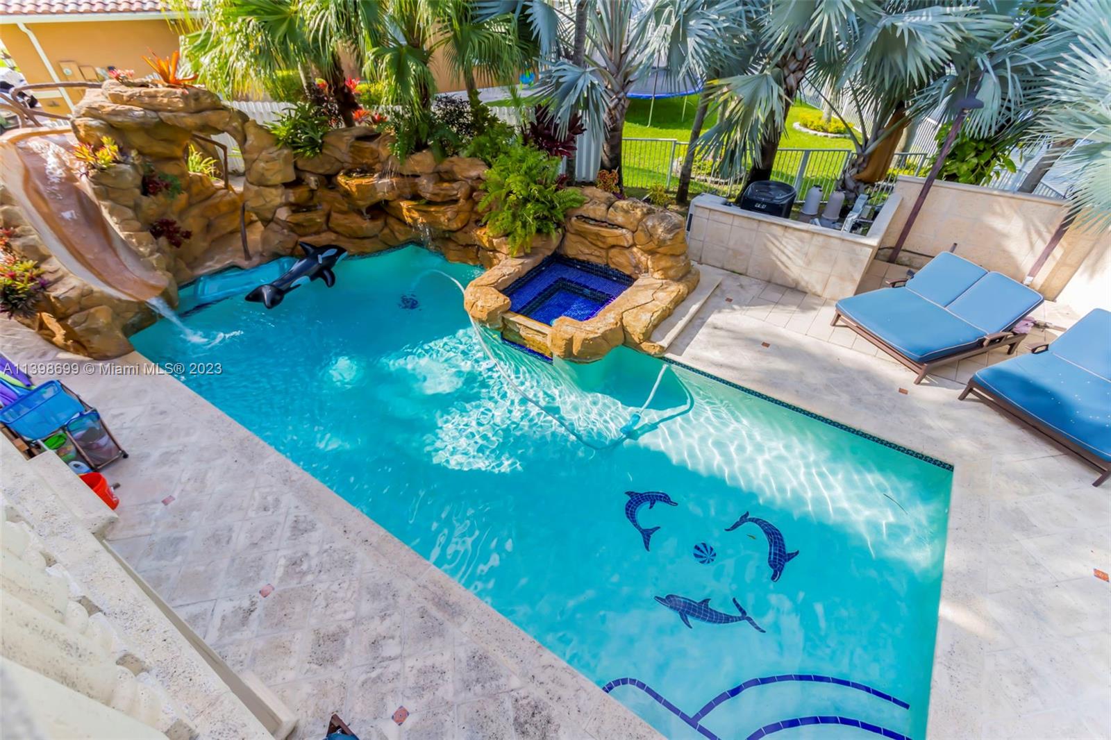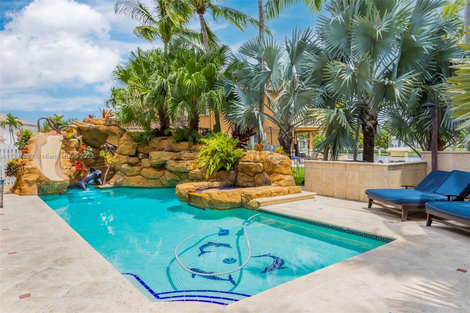 MAGNIFICENT 5 BEDROOM/4.5 BATH HOME located in manned gated community of Windsor Palms combines luxury & entertainment, providing you with the ultimate resort-like experience right at home! ALL NEW IMPACT WINDOWS 2023! FULL HOME GENERATOR! FIRST FLOOR BEDROOM WITH ENSUITE. This home offers a backyard oasis with fully automated gorgeous sparkling pool & spa with slide. Custom outdoor commercial Kitchen & Bar, a culinary enthusiast's dream, with full bath. Inside the Open and airy foyer with volume ceiling. Oversized Chef's Kitchen w/large island & Jenn Aire appliances. Upstairs the large Primary bedroom with ensuite has an expansive covered balcony overlooking the backyard, 3 more Bedrooms and Full Bath. All upstairs bedrooms have custom closet built-ins.