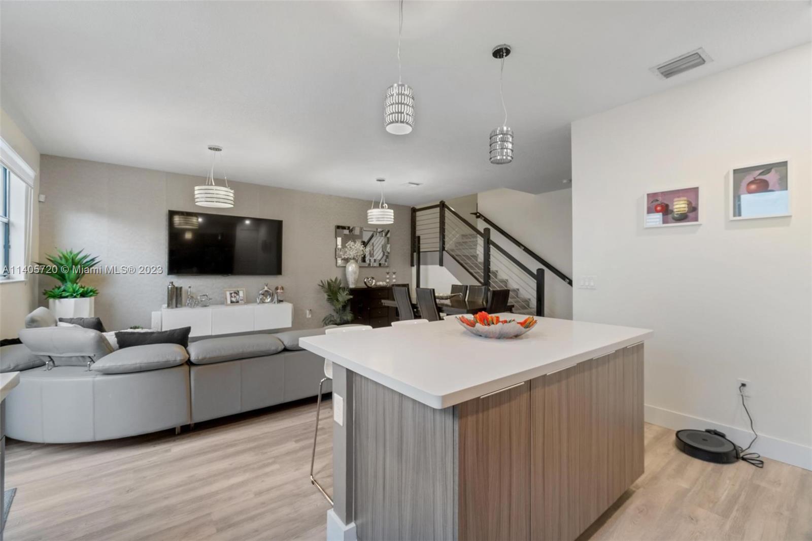 The single-family home located in Grand Bay South is a spacious and elegant residence offering four bedrooms and three and a half bathrooms. The interior design features a blend of contemporary and traditional elements making it perfect for hosting gatherings or spending quality time with family and friends. Large windows allow an abundance of natural light and the kitchen boast high-end appliances, stylish cabinetry, and ample counter space. Outside, the outdoor space offers opportunities for relaxation, outdoor dining, or hosting outdoor gatherings.