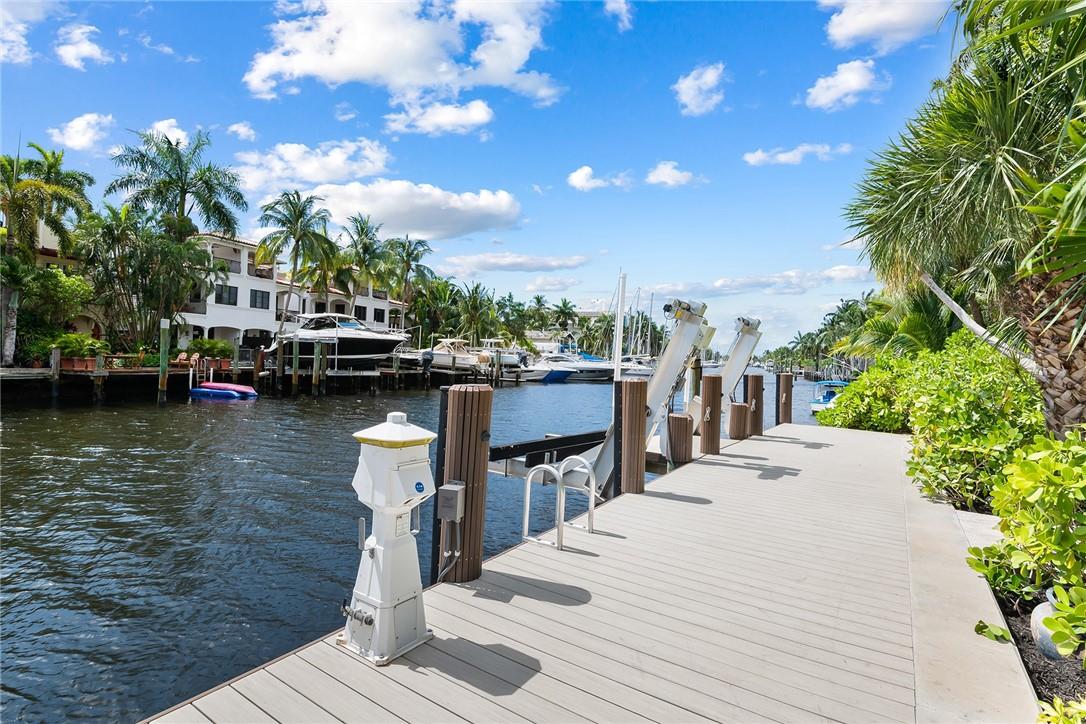 Welcome to your waterfront paradise in the desirable Victoria Park neighborhood! Imagine a lush, private property with two gated entrances situated on a quiet cul-de-sac. Picture views of the canal from your backyard oasis featuring an expansive covered area for dining and travertine pavers surrounding the saltwater pool. Have peace of mind with a newly raised 75' seawall and 50' Aztec dock with state-of-the-art 20,000 boat lift. With no fixed bridges and deep canal access, you can enjoy carefree boating any time. Inside you'll find an open living room with updated lighting, a wet bar, and a contemporary staircase leading up to the primary suite balcony overlooking this tranquil outdoor space. 16kw whole home generator powered by natural gas. Minutes to the beaches & Las Olas Blvd.