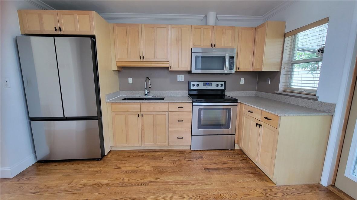 Beautiful 3 bed 2 bath. The kitchen has wood cabinets, a Quartz countertop, and new stainless steel appliances. Hardwood flooring, AC 2018, Sprinkler system, alarm. The backyard is a tropical oasis with a mango tree that produces delicious 2lbs mangoes, a Huge shed perfect for storing or contractor, and a fountain. Walking distance to the school.