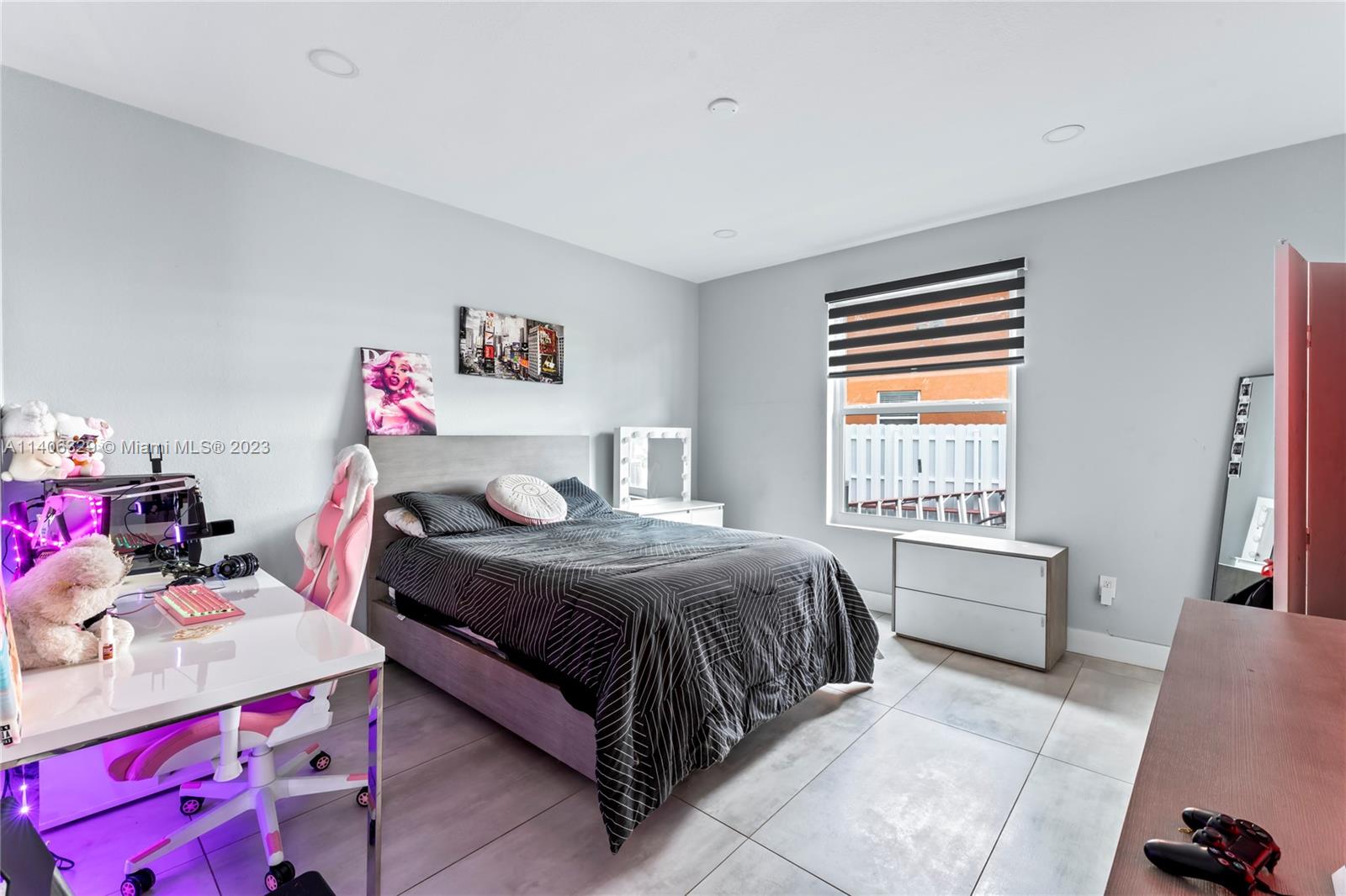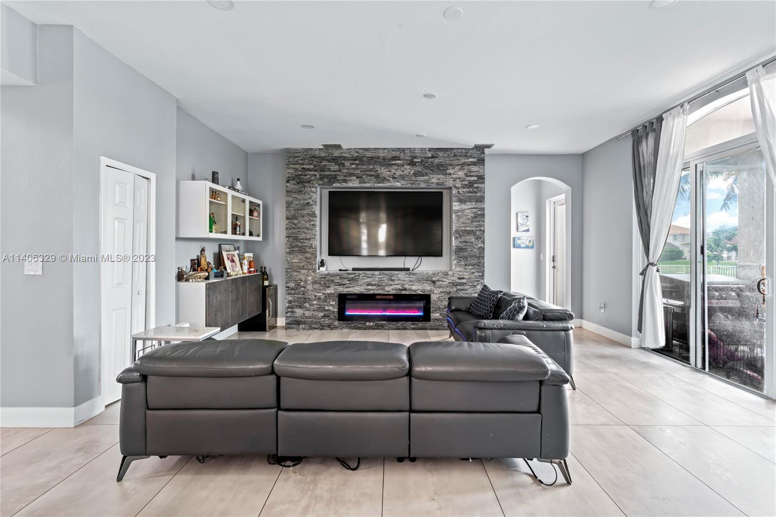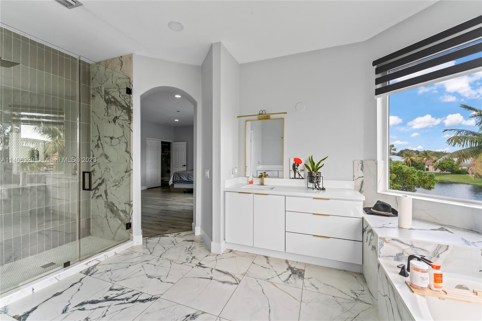 A 5 bedroom 3 bathroom, lake front property flooding with natural light throughout, high vaulted ceilings, an open space concept with a huge kitchen island all made with golden finishes, ALL WINDOWS HURRICANE IMPACT AND DOORS. Throughout bathroom has porcelain tiles with a marble finish, an amazing view from the master bedroom balcony as well as the master tub. 5th bedroom has been converted in to a dream closet with the option to convert back into a bedroom. It can be used as a nursery as well. A custom built wall with stone finishes and electrical fireplace you don't want to miss!