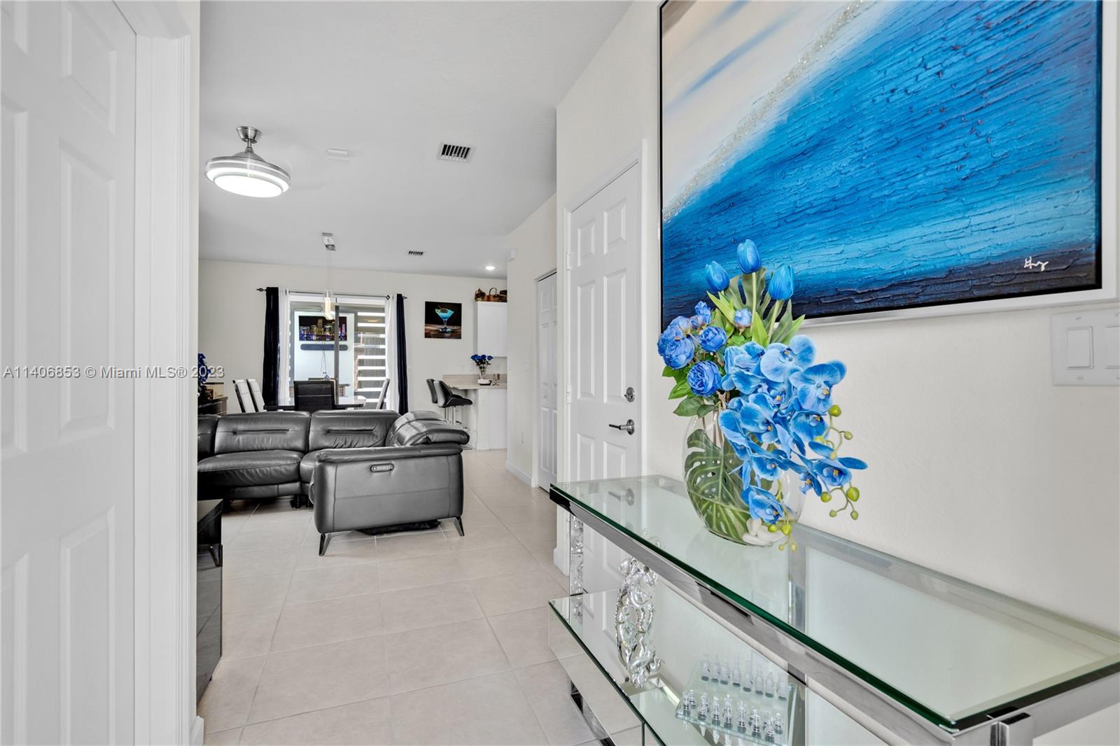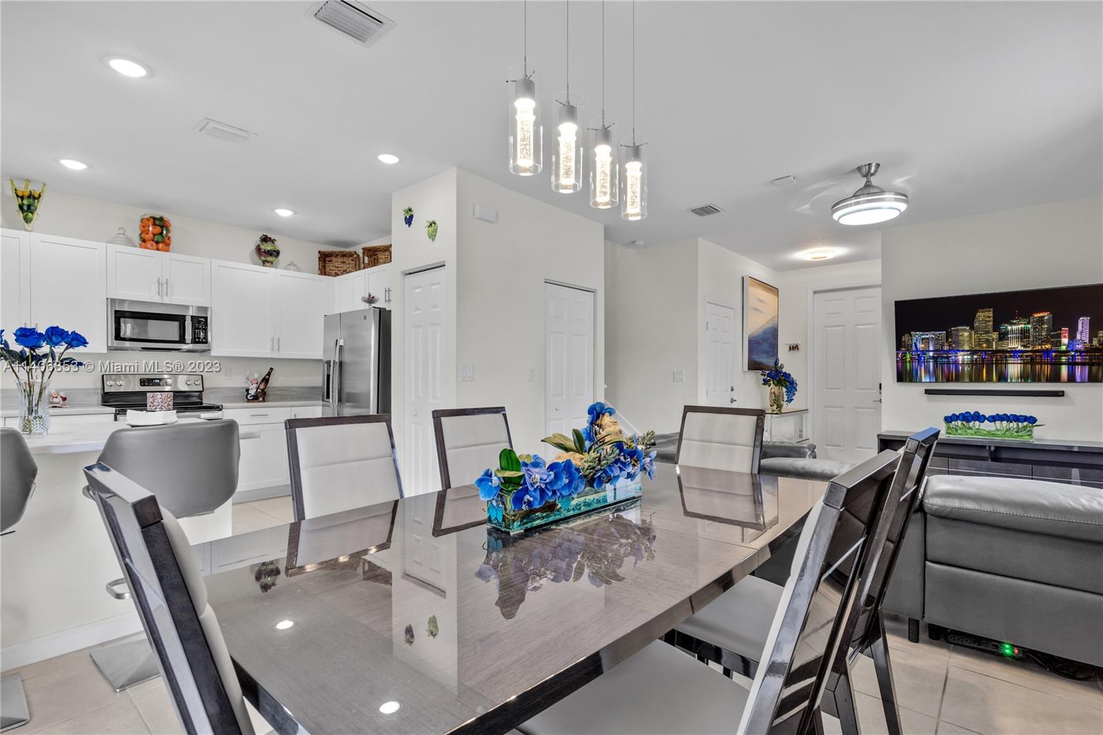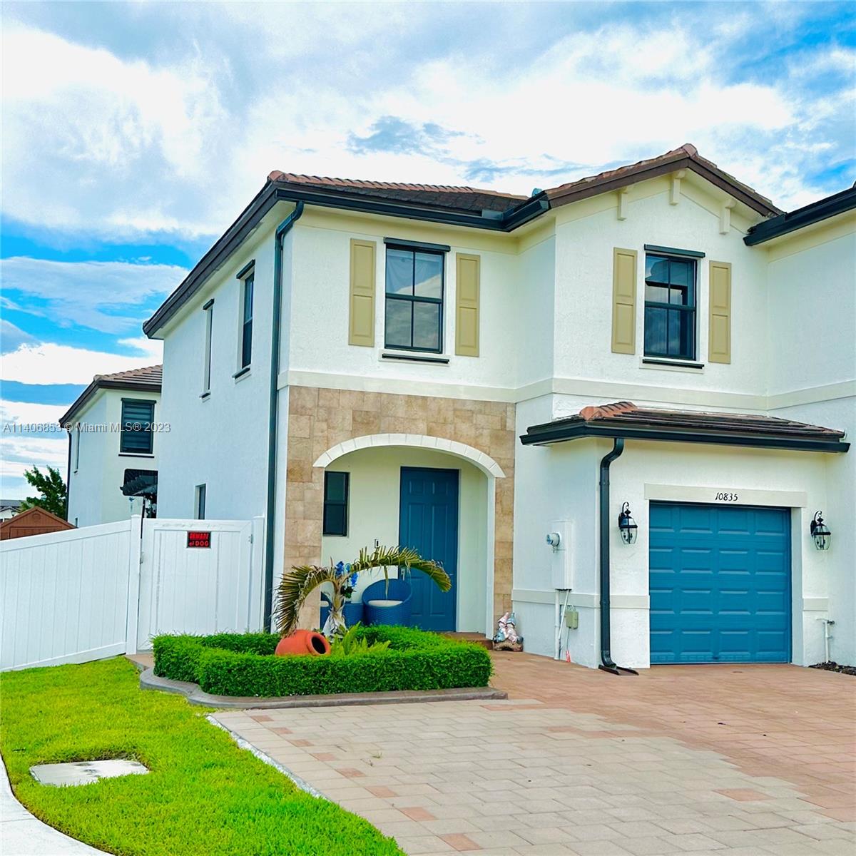 Welcome to this stunning Corner Home located in the vibrant city of Hialeah Gardens designed to cater to families at any stage of life. Step inside and be greeted by a seamlessly flowing first floor that combines an open dining room, modern kitchen, comfortable family room. The sliding glass doors open up to a delightful patio adorned with a modern aluminum Pergola set up for entertaining guests. On the second floor, you'll find three well-appointed bedrooms, including a luxurious suite with a coffered ceiling. Enjoy the peace of mind provided by this exclusive Luxury Community of Aquabella: Two resort style clubhouses,24/7 security, ample parking for visitor, children’s and pet parks and more. Take a dip in the pool, work out at the gym, or let your children have a blast on the slides.