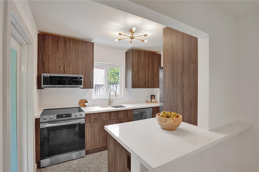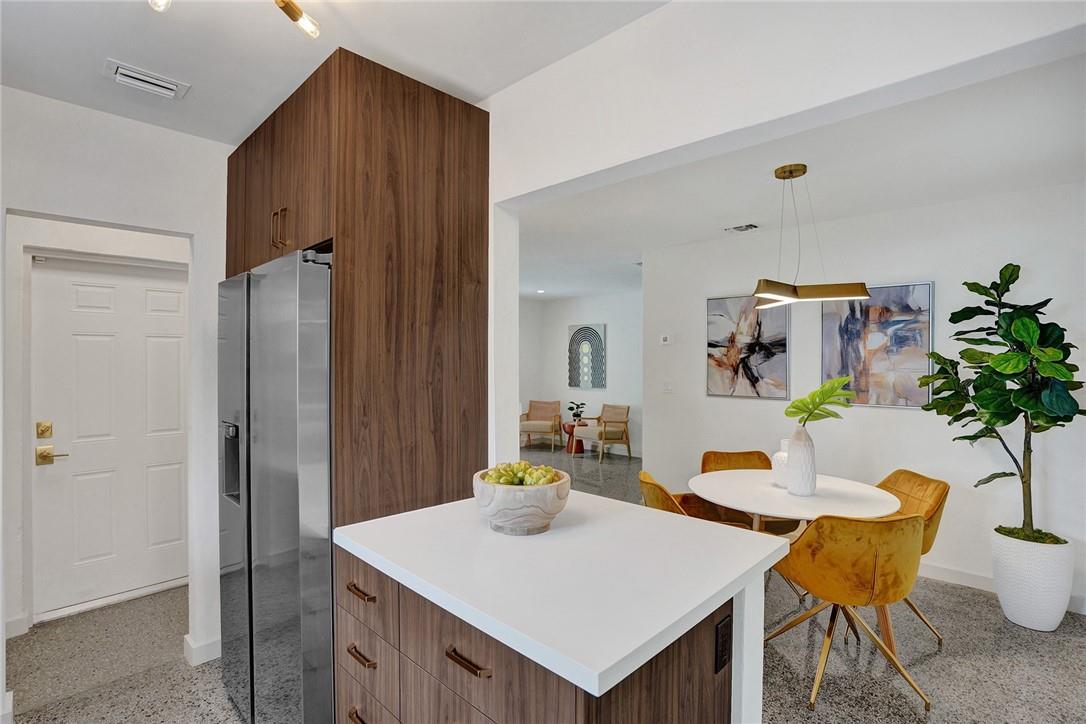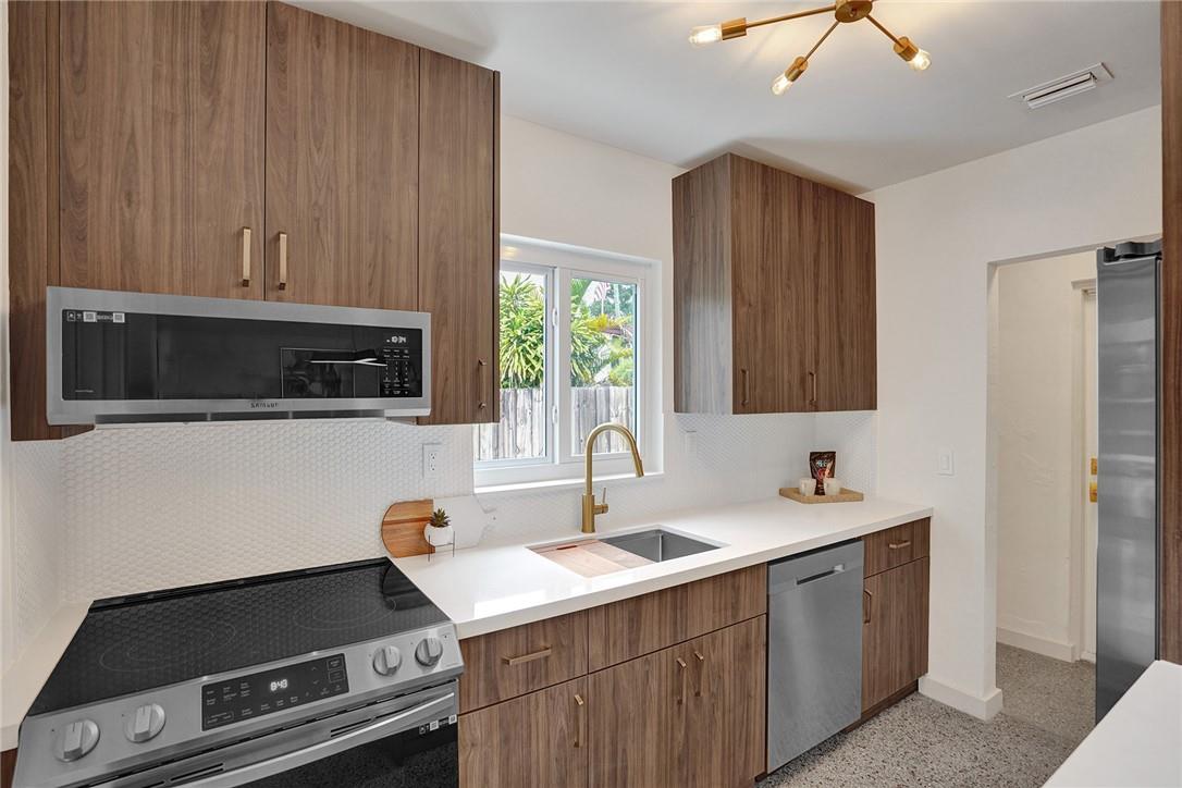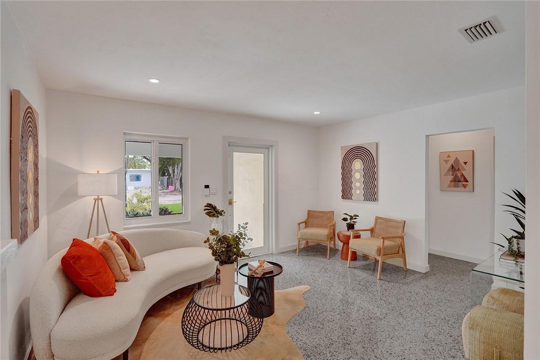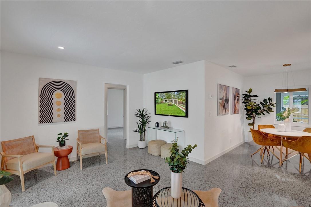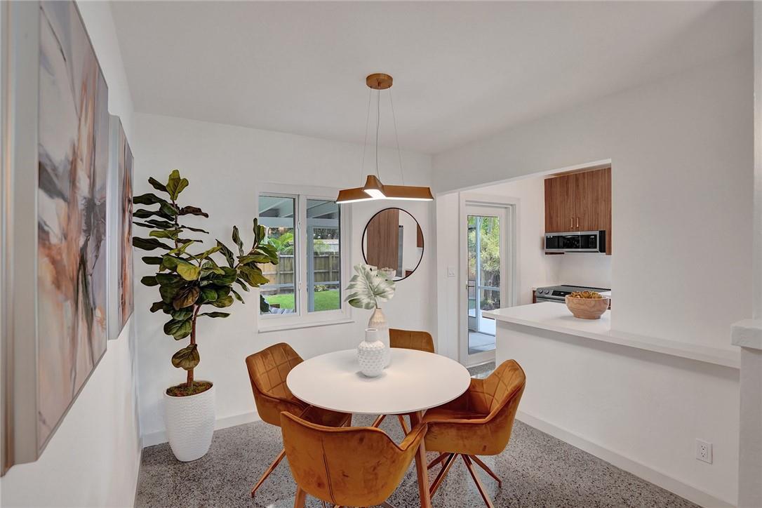 Completely remodeled Mid Century Home in Shady Banks. Perfectly polished Terrazzo Floors Throughout. All New: Roof, Impact Windows & Doors, Kitchen & Bath. Designer Lighting. Professionally painted inside and out. Gorgeous custom kitchen and bath. Nothing left to do but move in and enjoy. Fully fenced and private yard. Large screened in back porch plus a welcoming front porch. Covered Carport parking. Plenty of room for a pool, addition, boat parking. Or enjoy this stunning home as is, providing a tranquil retreat, & minutes to downtown Las Olas, the Beach & Transportation. 2 Parks with Tennis, Volleyball, Walking Paths & a Nature Preserve on the New River. With one way in/out, 2 parks and surrounded by the New River, come see why this is THE hidden gem neighborhood in East Ft Lauderdale.