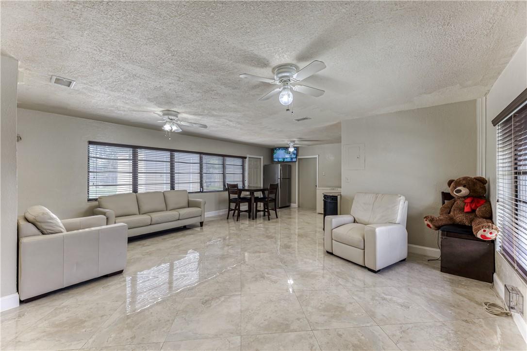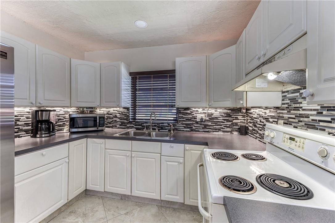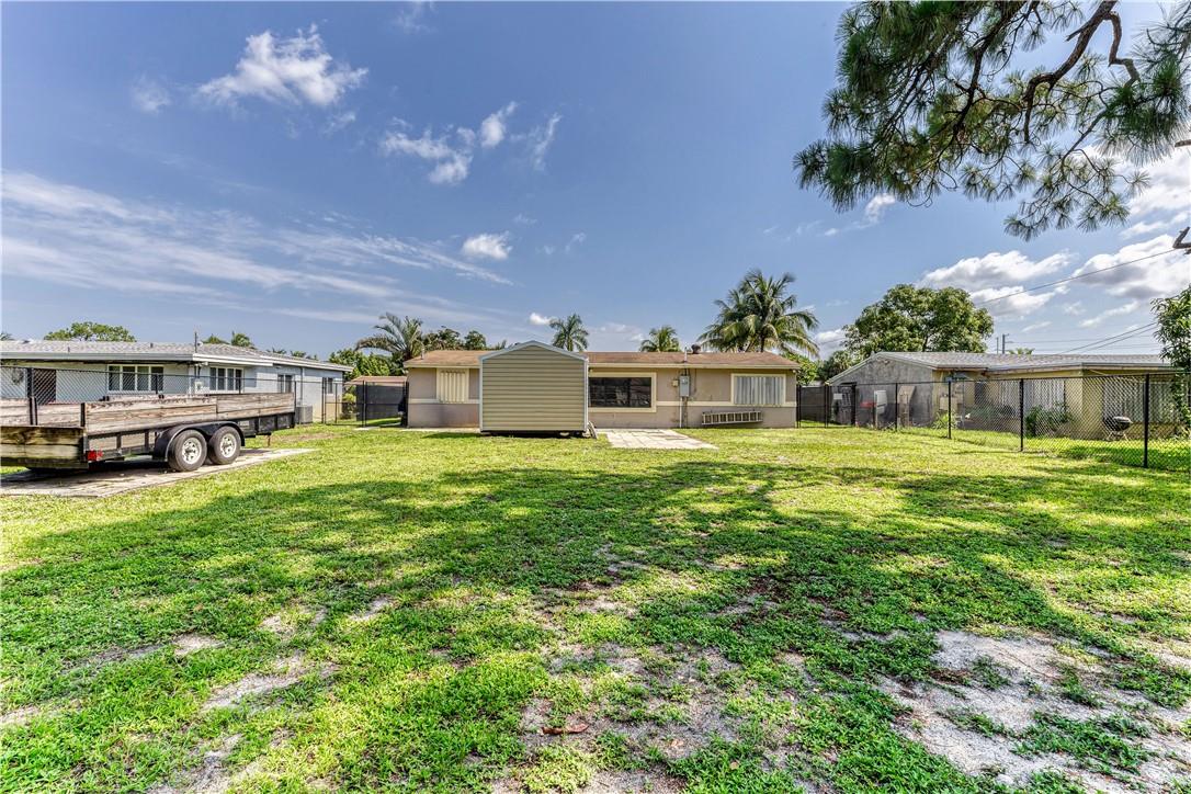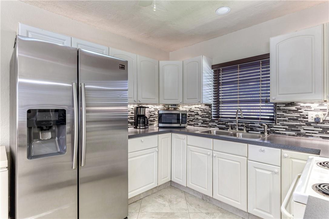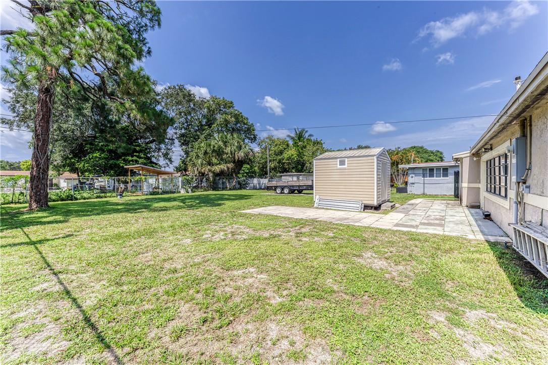 Open concept design, plenty of windows with natural lighting, neutral colors throughout, allow a welcoming space to make your own. This well taken care of home offers a modern kitchen with White Cabinetry a glass tile backsplash, Stainless Steel Refrigerator, and plenty of counter space. The main area has perfectly installed high gloss Porcelain Tile. The yard is huge & fully fenced with plenty of room for Boats, Trailers, Toys and Pets! Also a sturdy free standing Shed hurricane strapped to the ground. Attached one car garage has a laundry area in the back with a stackable front load washer and dryer. Security Cameras and Exterior Lighting surround the house. A lot of pride & hard work has gone into making this house a home. Come take a look! freezer & 2nd refrig do not stay.