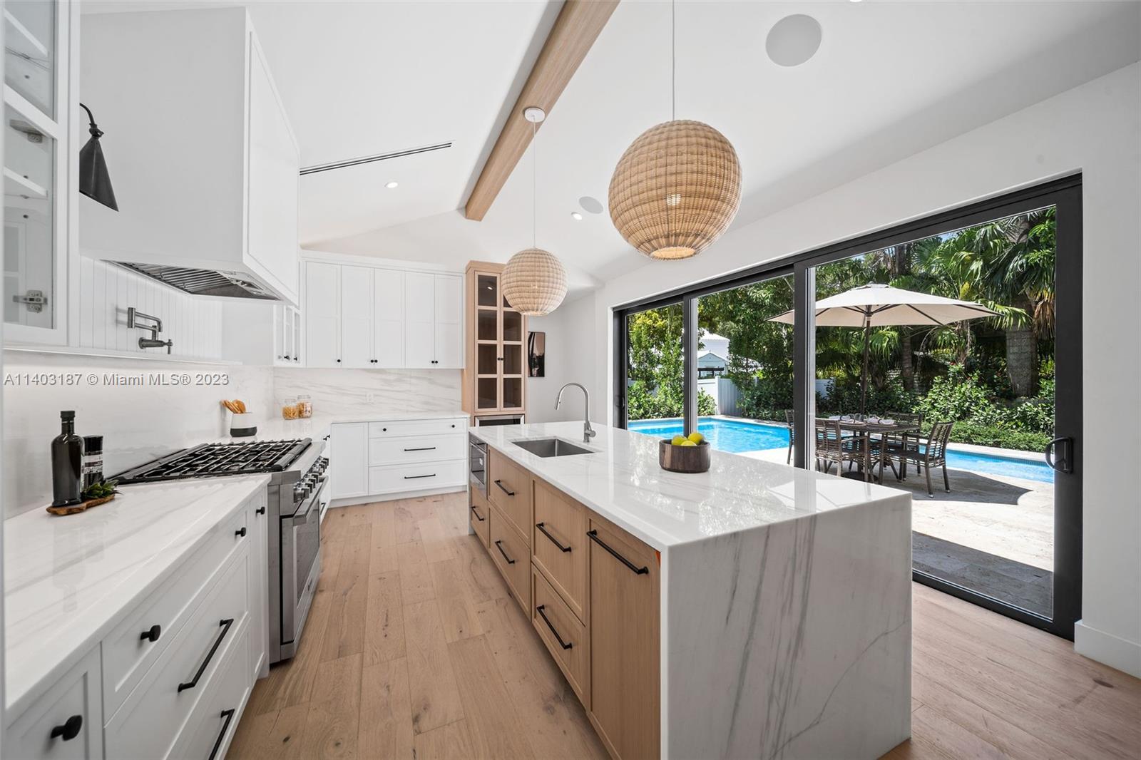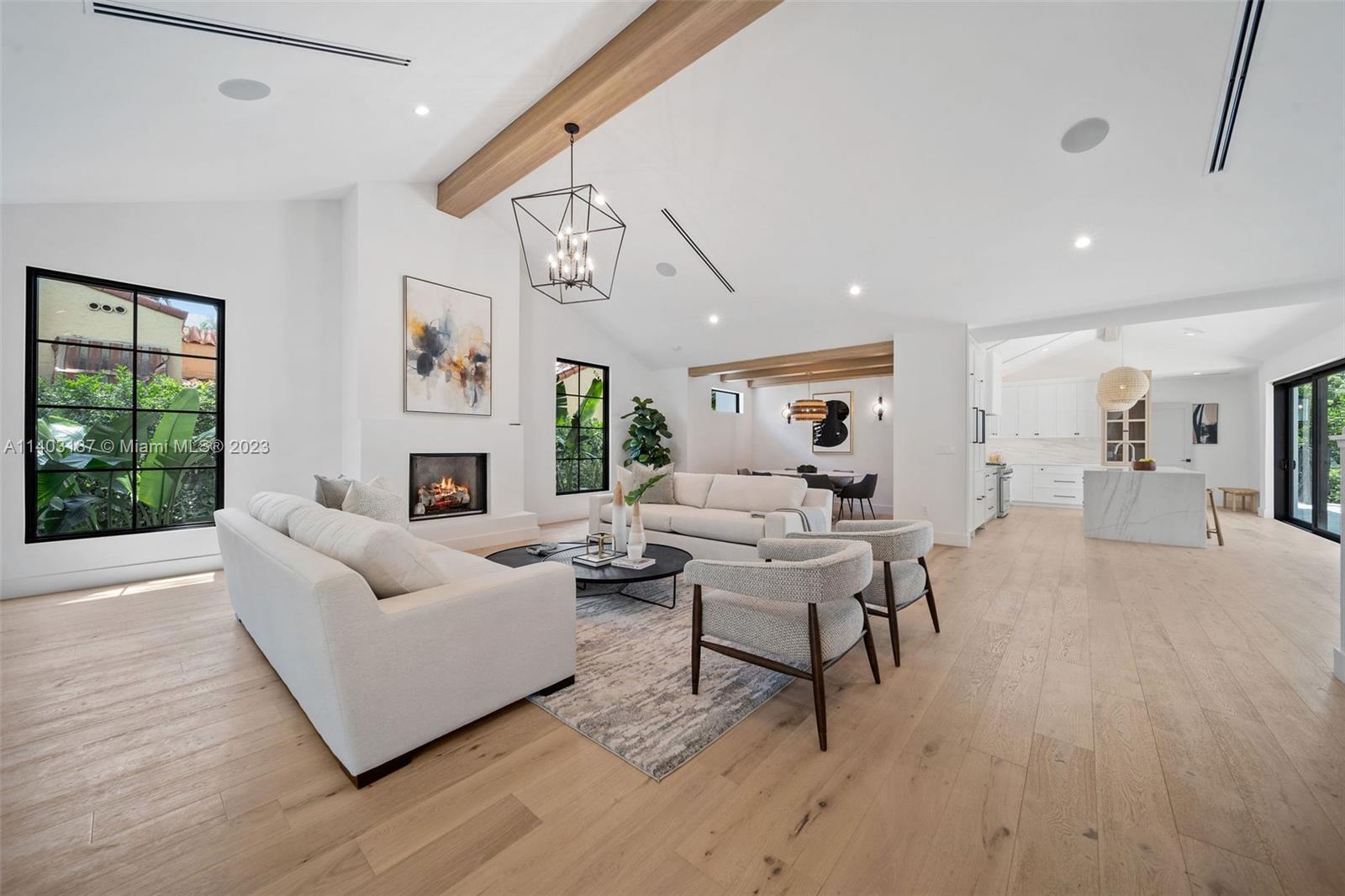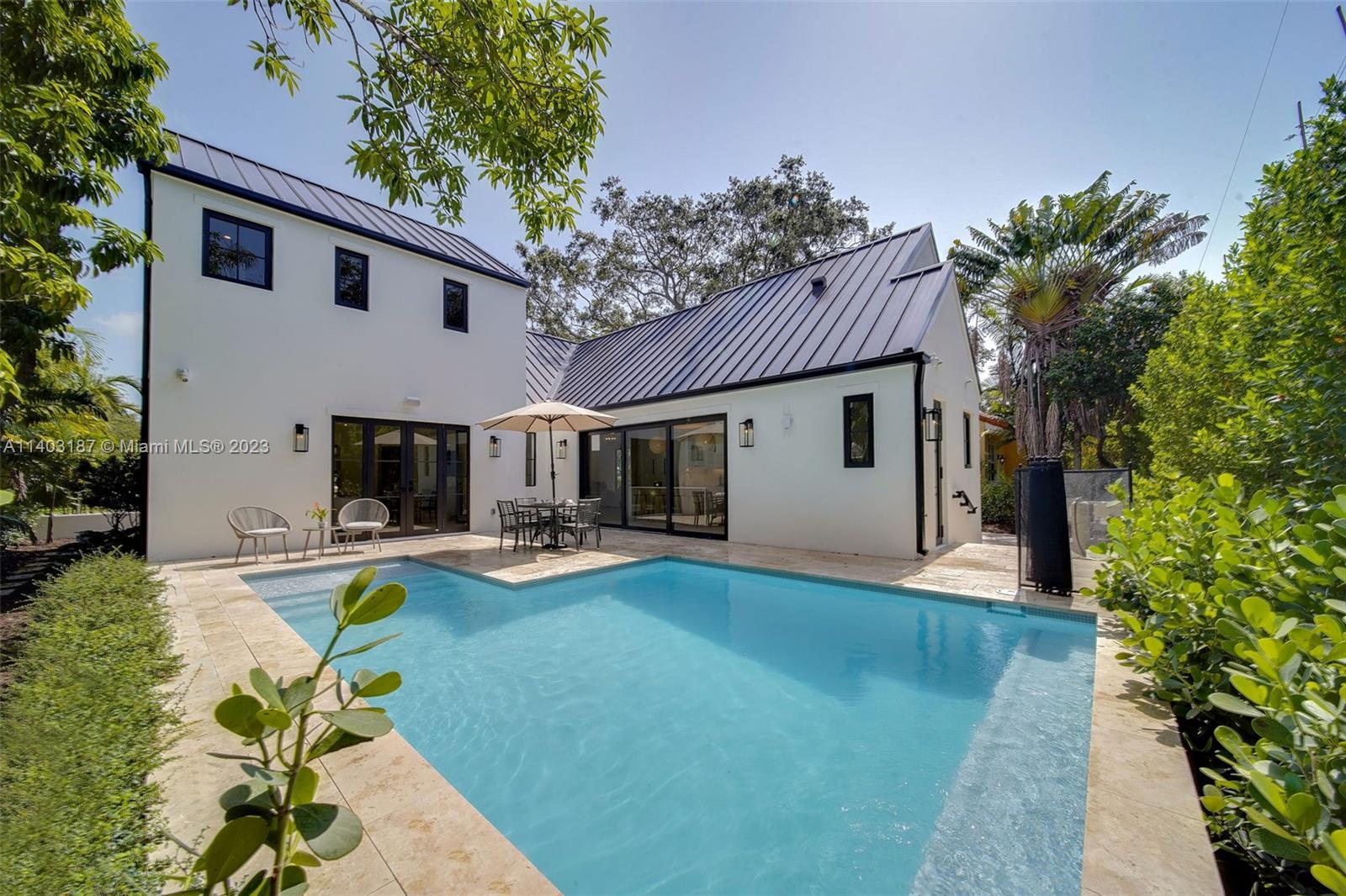 Welcome to "The Oak's Peak"! A timeless new construction that offers unparalleled elegance, luxury, & warm modern design. Standing seam roof, stone detail, & lush landscape, deliver distinct & sophisticated curb appeal. Formal entryway w/ soaring beam ceiling & large format windows bring in tons of light & views of lush greenery. Stylish formal dining perfect for hosting elegant gatherings or intimate family dinners. Gourmet kitchen outfitted w/ stainless appliances, gas-cooking, custom cabinetry, & marble island. Primary suite w/ soaking tub, marble walk-in shower & private exit to pool deck. Backyard includes cabana bath, rear driveway w/ one-car garage. Additional features include ventless gas fireplace, smarthome technology, security cameras, custom ironwork, den/office, laundry room.