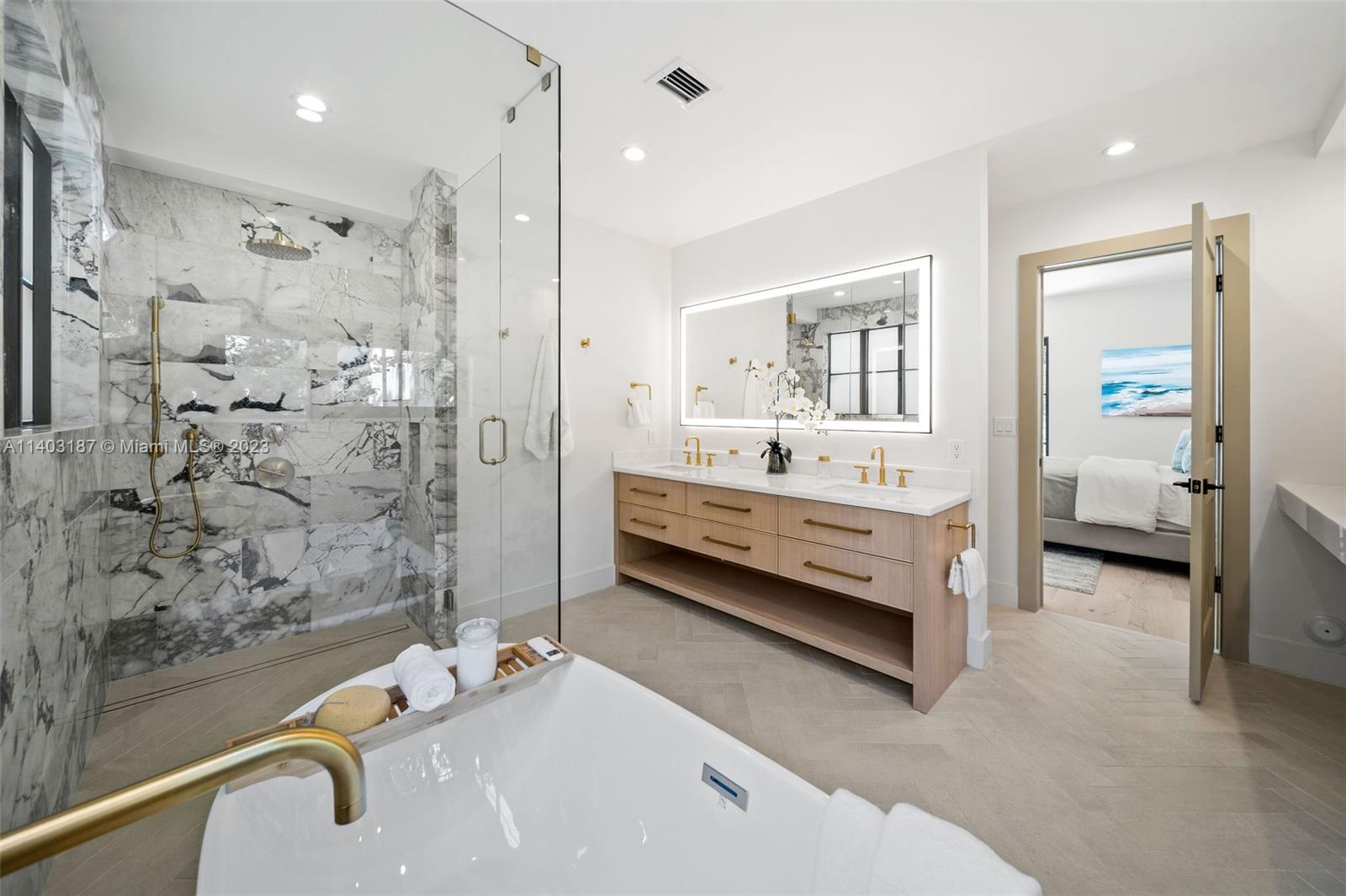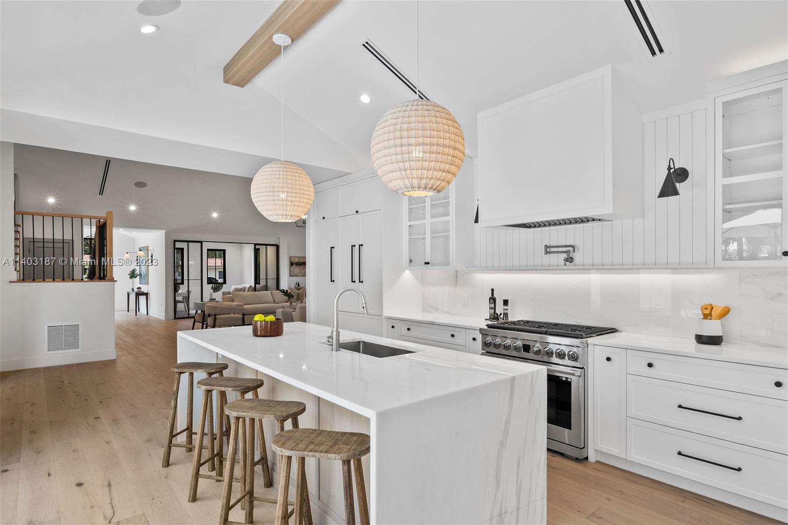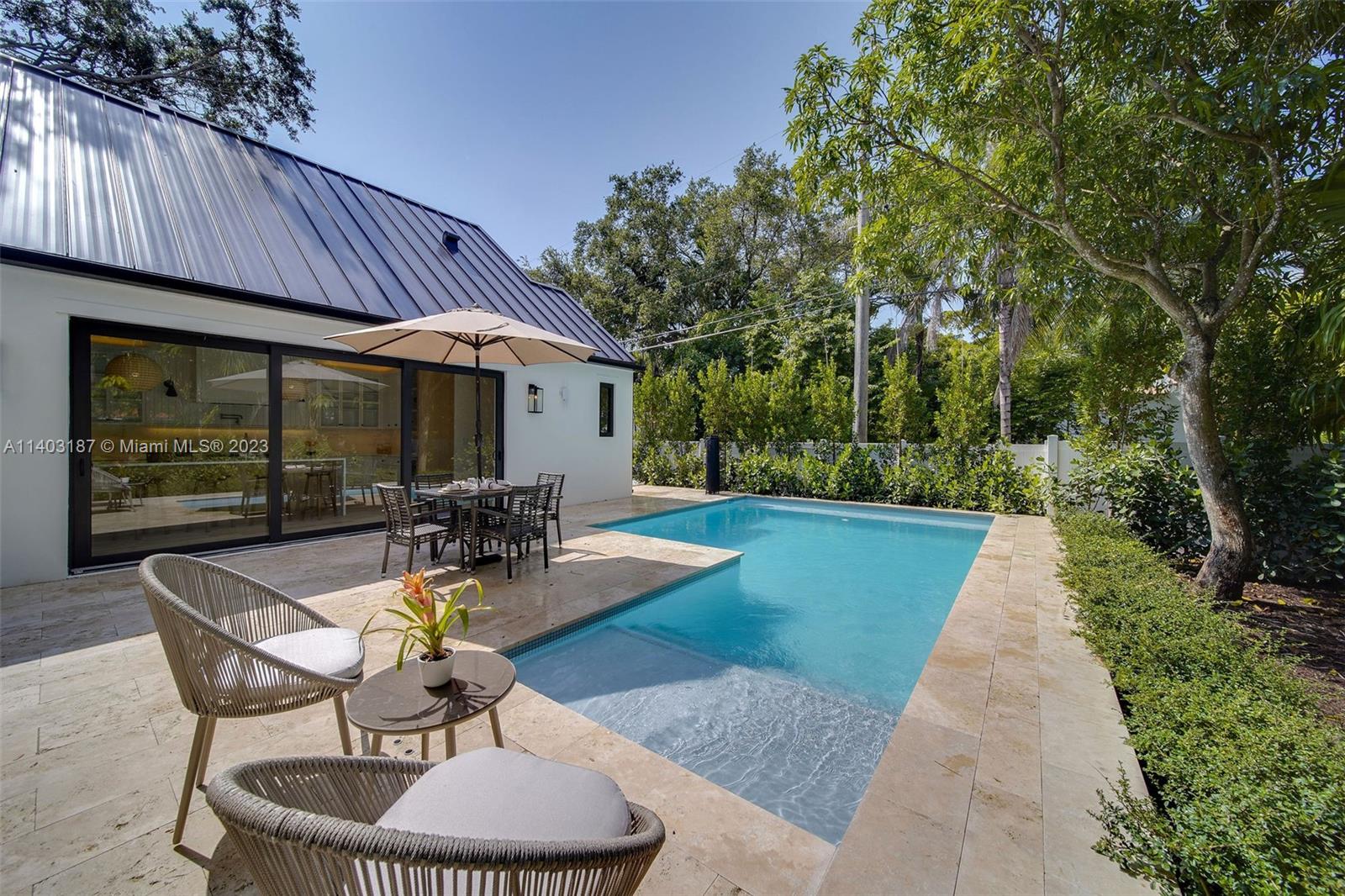 Welcome to "The Oak's Peak"! A timeless new construction that offers unparalleled elegance, luxury, & warm modern design. Standing seam roof, stone detail, & lush landscape, deliver distinct & sophisticated curb appeal. Formal entryway w/ soaring beam ceiling & large format windows bring in tons of light & views of lush greenery. Stylish formal dining perfect for hosting elegant gatherings or intimate family dinners. Gourmet kitchen outfitted w/ stainless appliances, gas-cooking, custom cabinetry, & marble island. Primary suite w/ soaking tub, marble walk-in shower & private exit to pool deck. Backyard includes cabana bath, rear driveway w/ one-car garage. Additional features include ventless gas fireplace, smarthome technology, security cameras, custom ironwork, den/office, laundry room.
