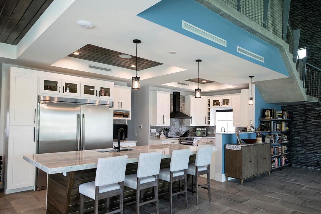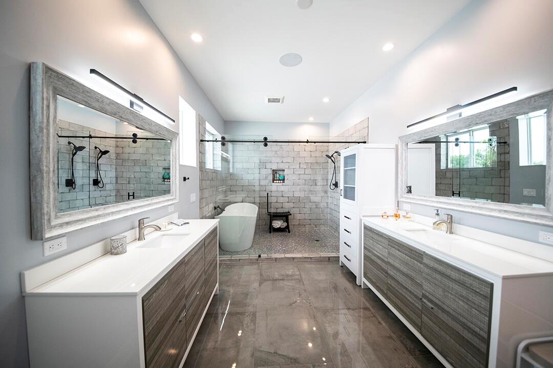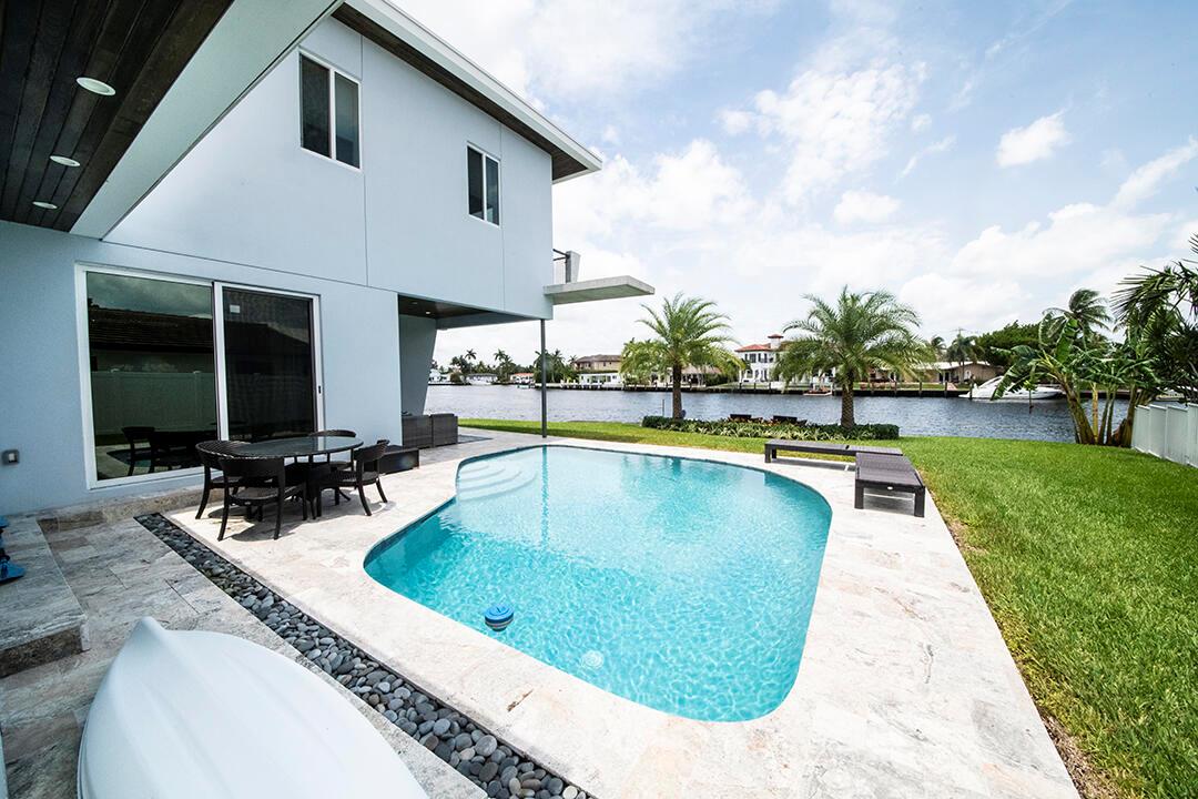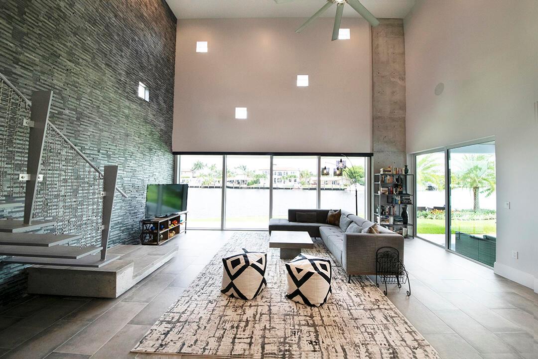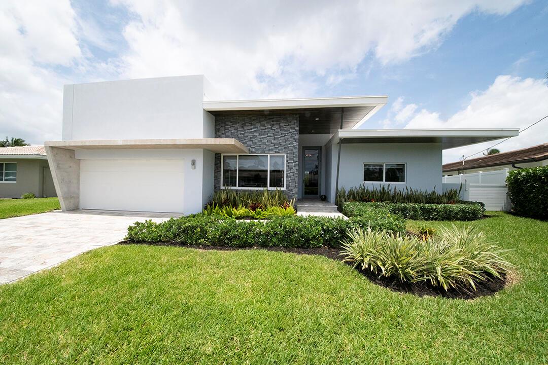 Spectacular, new construction, modern home situated on an oversized lot on an expansive waterway leading to intracoastal. Designed & built by the homeowner (structural engineer/architect), you won't find a more structurally sound home in the area! This home boasts stunning & unique architectural features throughout including 2 story stacked-stone great room wall, custom wood ceiling inlays both inside & out, and a floating staircase with custom railing leading to your private upstairs oasis. The master retreat is spacious offering floor to ceiling sliders opening to your private balcony, his/hers walk-in custom closets, a sumptuous master bathroom including private water closet, his/hers vanities, & an oversized double shower with soaking tub,