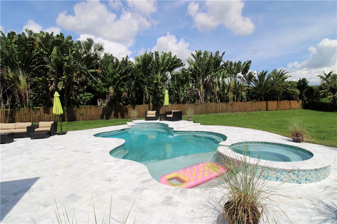 Welcome to your beautiful meticulously cared for ranch home on nearly an acre of land with no HOA. The 4/3 bed-bath count is divided between the main house and guest house. The main house (3beds/2baths) has upgrades and beautiful amenities throughout. The expansive yard in front and back is perfect for children and pets and provides privacy as well. Pool was recently finished just a few years ago. The guest house at the rear of the property is a modern upgraded 1/1 home with full kitchen and washer/dryer-perfect for in-laws, extended stay visitors, family, or as an income property. Don't miss out on the opportunity to make this beautiful home yours. All measurements/property data are believed to be accurate but should be verified by interested parties.