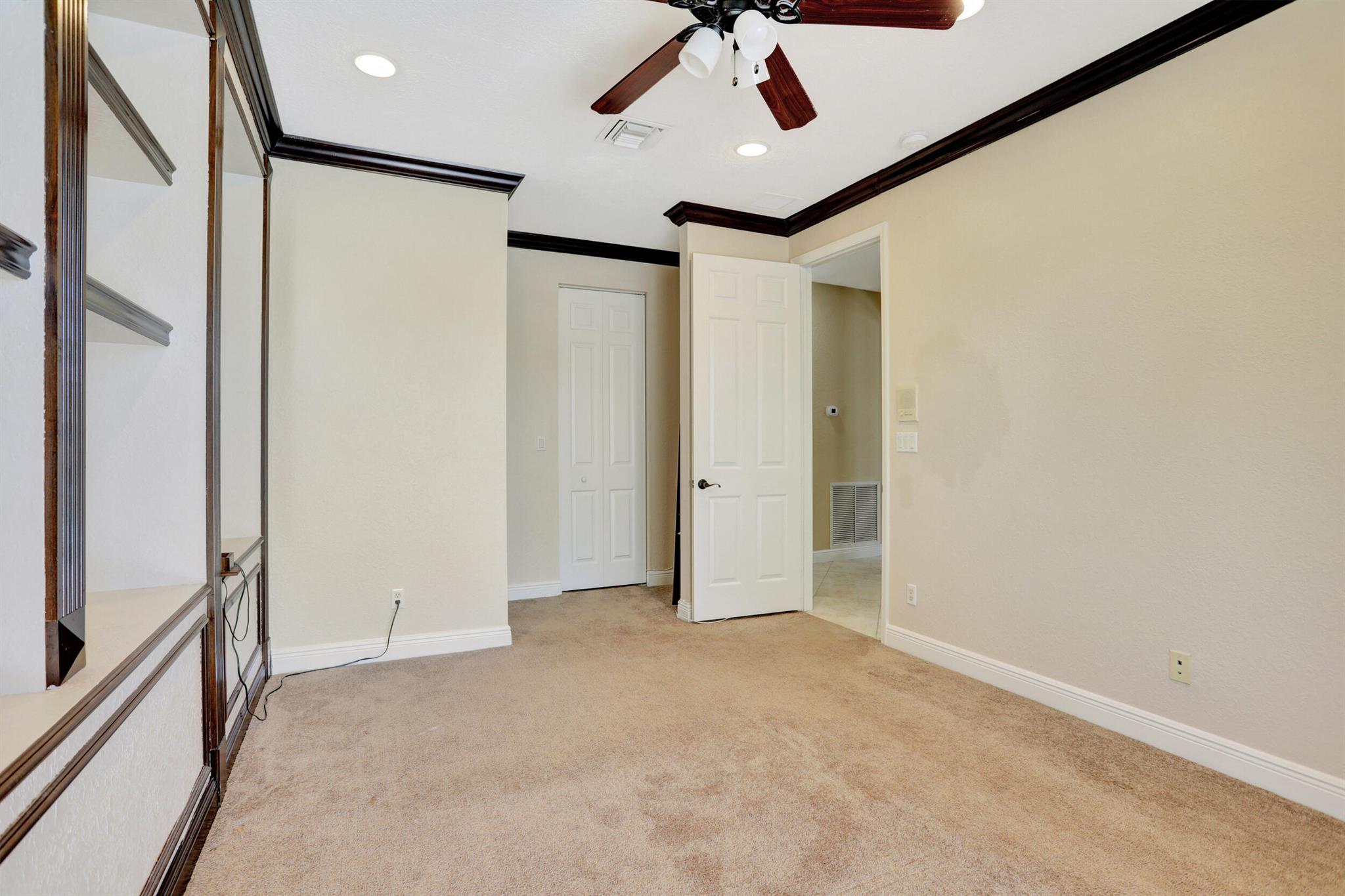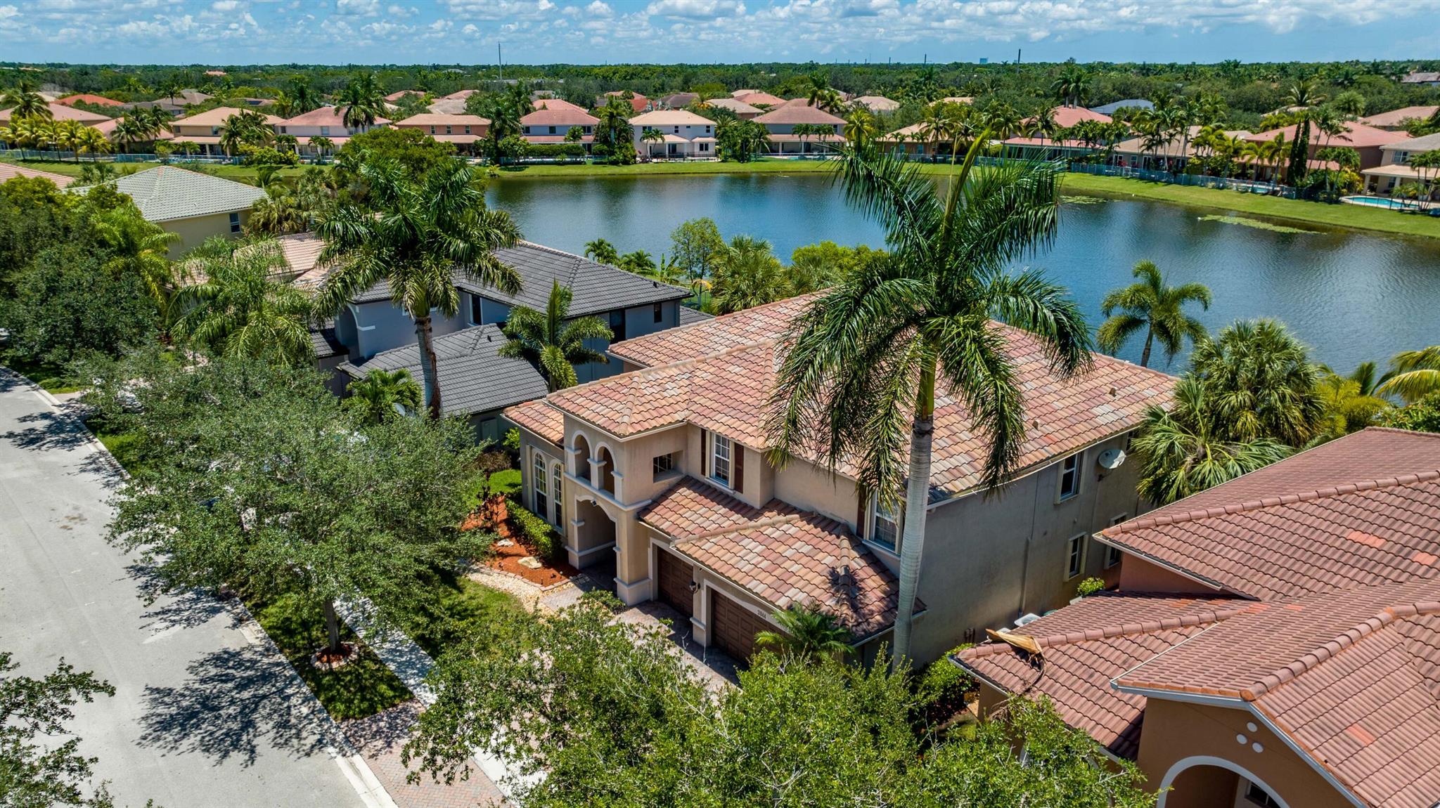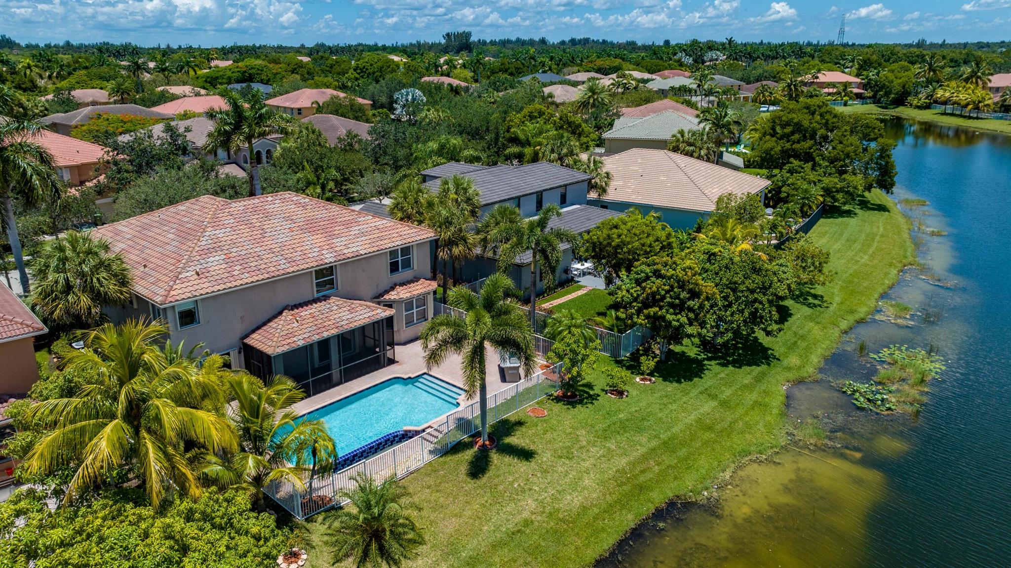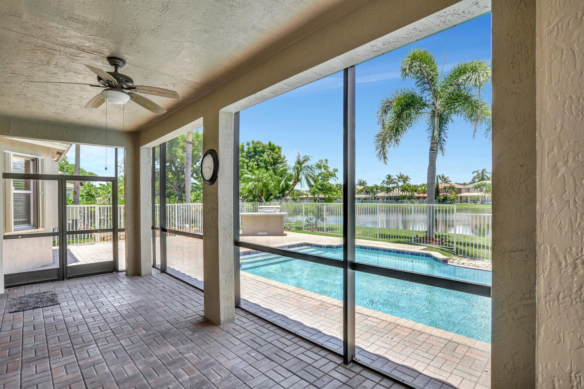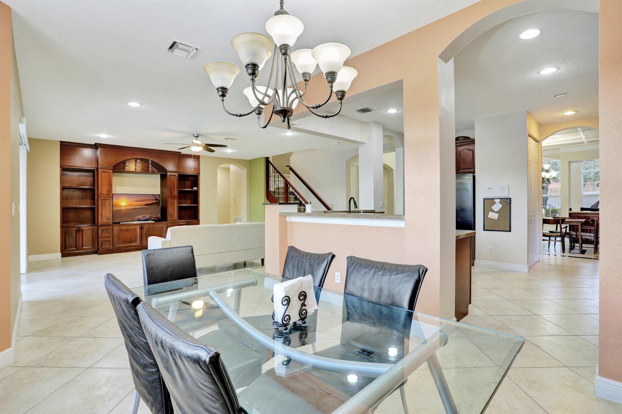 Take this opportunity on this amazing property when you enter you will find the open feeling layout along with the voluminous ceilings and porcelain tile throughout. The renovated kitchen w all new black stainless appliances opens to the breakfast and family area with built in large window bench that over looks the patio and lake. Family room with built in shelves, formal dining room & living room. Home has 5 BR + Loft w built in office area w/desk and built in bookshelves..The master (on 2nd fl) has a huge sitting area with two walking California style closets, a redone Master bathroom with tub/jacuzzi, There is a BR on first floor w it's on suite full bath, walk in closet and sliding glass door that opens to patio & lake. Upstairs is Jack & Jill type BRs (one w/built in shelves, and a