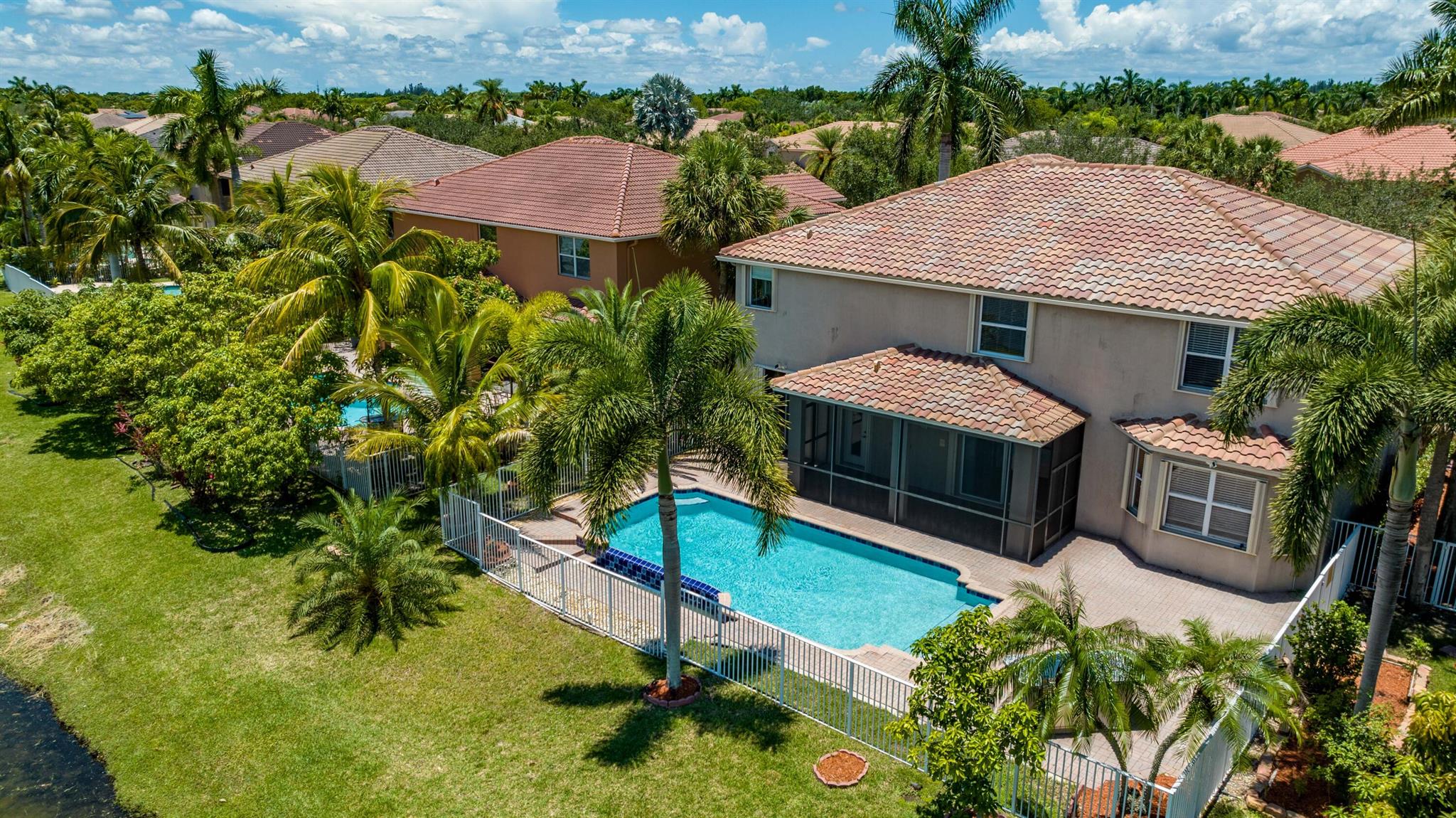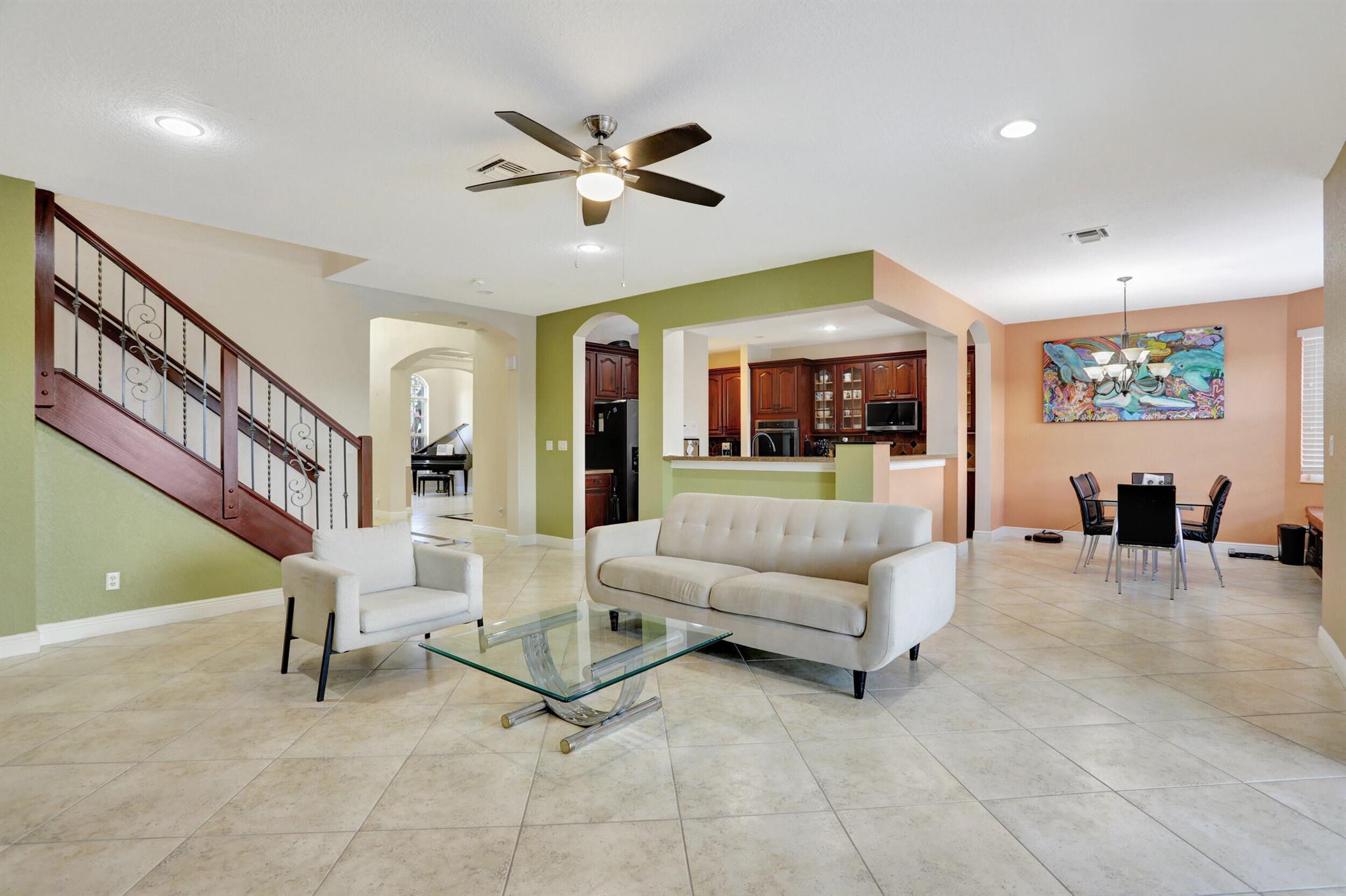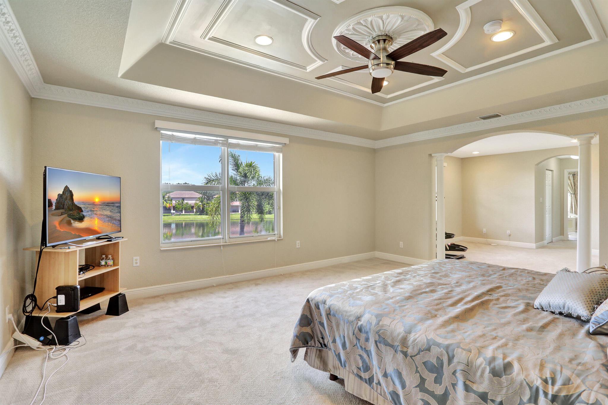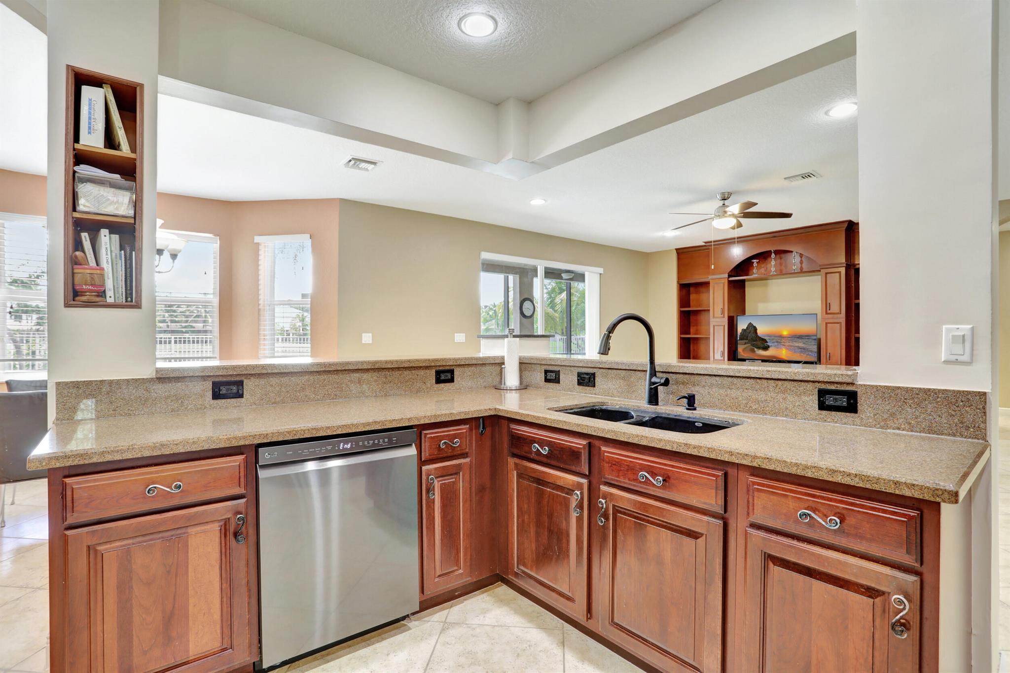 Take this opportunity on this amazing property when you enter you will find the open feeling layout along with the voluminous ceilings and porcelain tile throughout. The renovated kitchen w all new black stainless appliances opens to the breakfast and family area with built in large window bench that over looks the patio and lake. Family room with built in shelves, formal dining room & living room. Home has 5 BR + Loft w built in office area w/desk and built in bookshelves..The master (on 2nd fl) has a huge sitting area with two walking California style closets, a redone Master bathroom with tub/jacuzzi, There is a BR on first floor w it's on suite full bath, walk in closet and sliding glass door that opens to patio & lake. Upstairs is Jack & Jill type BRs (one w/built in shelves, and a