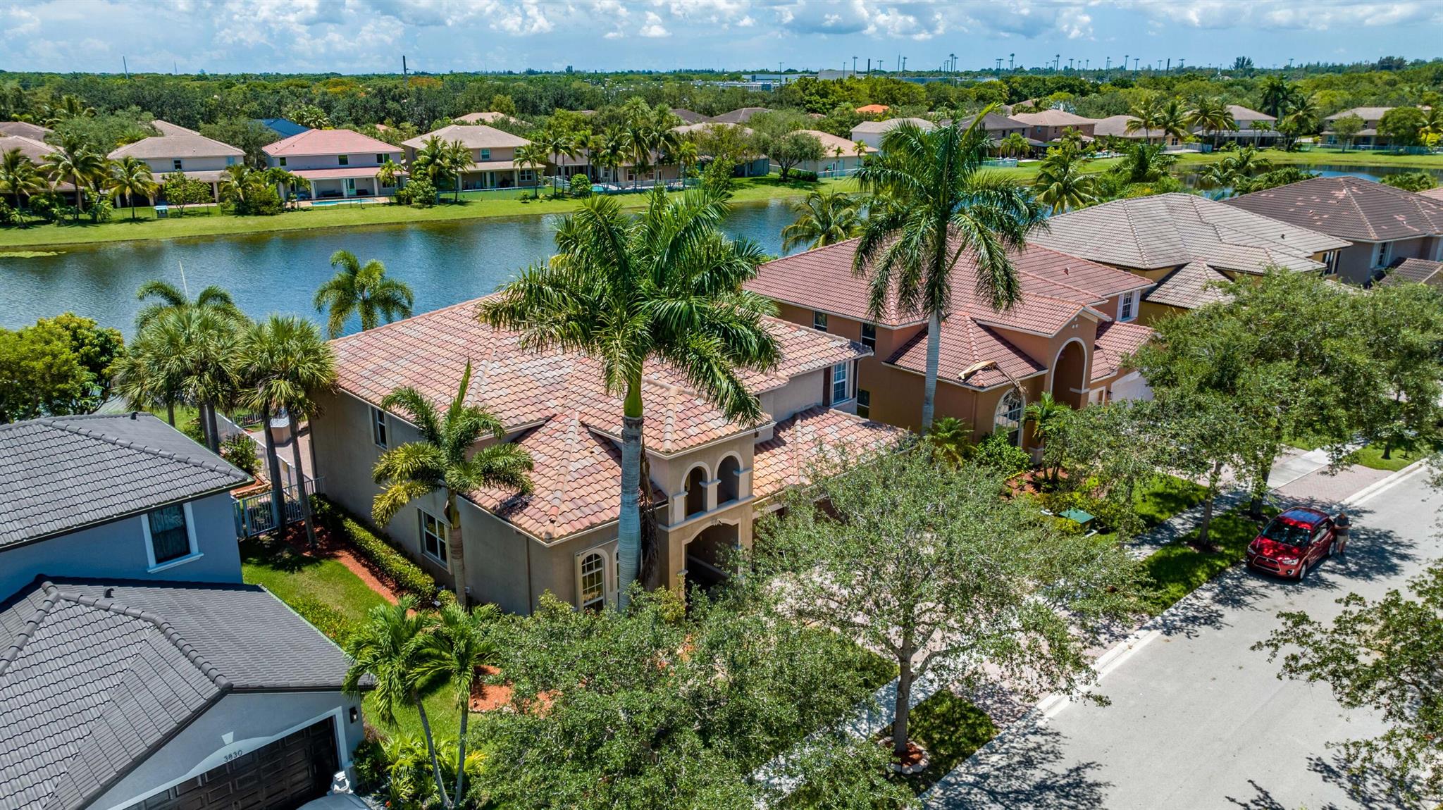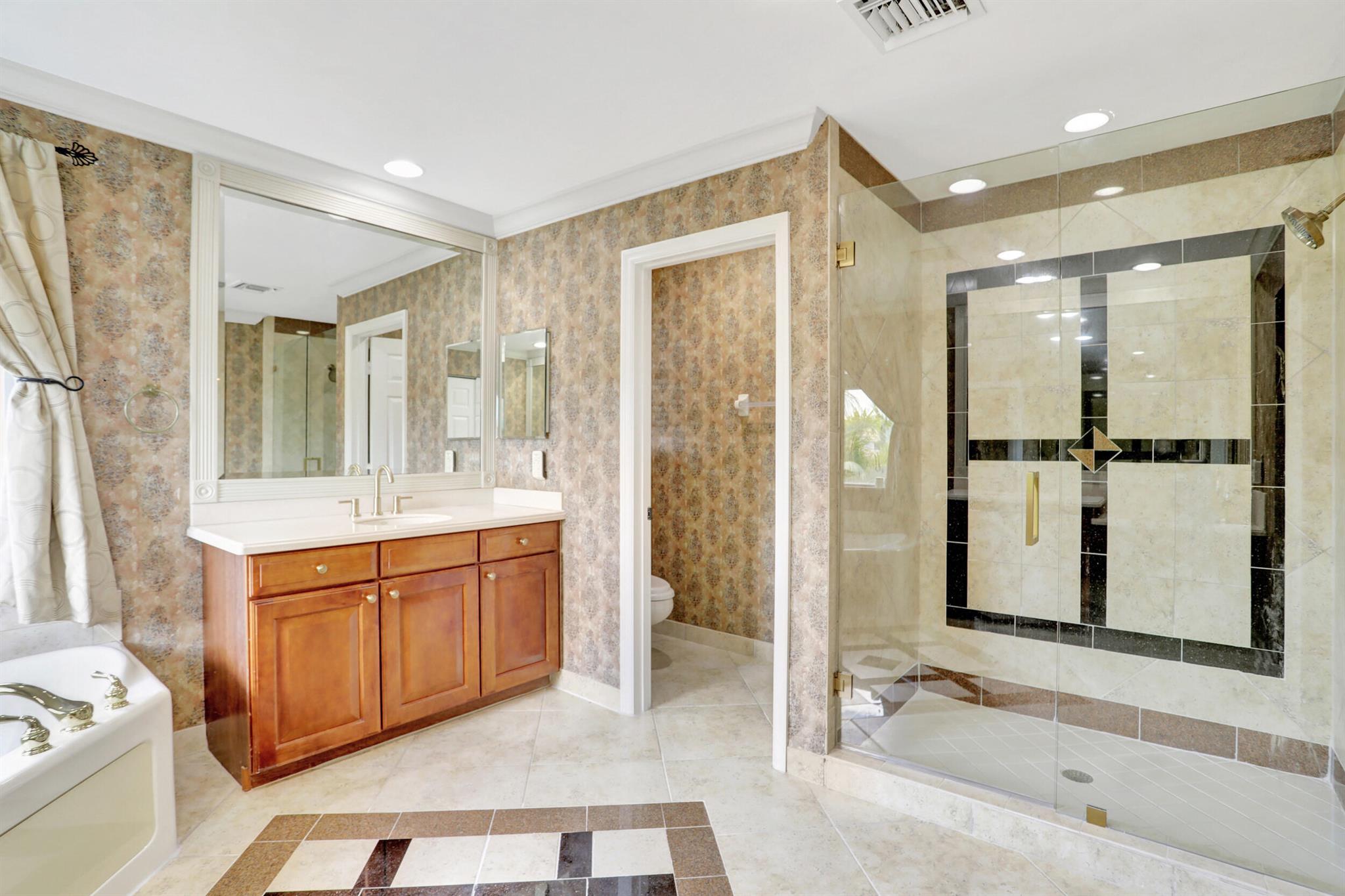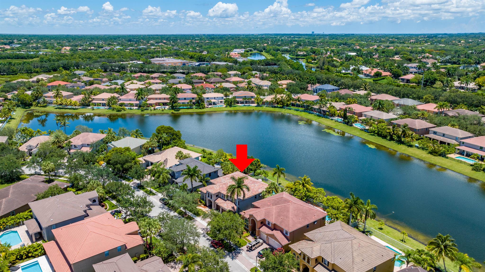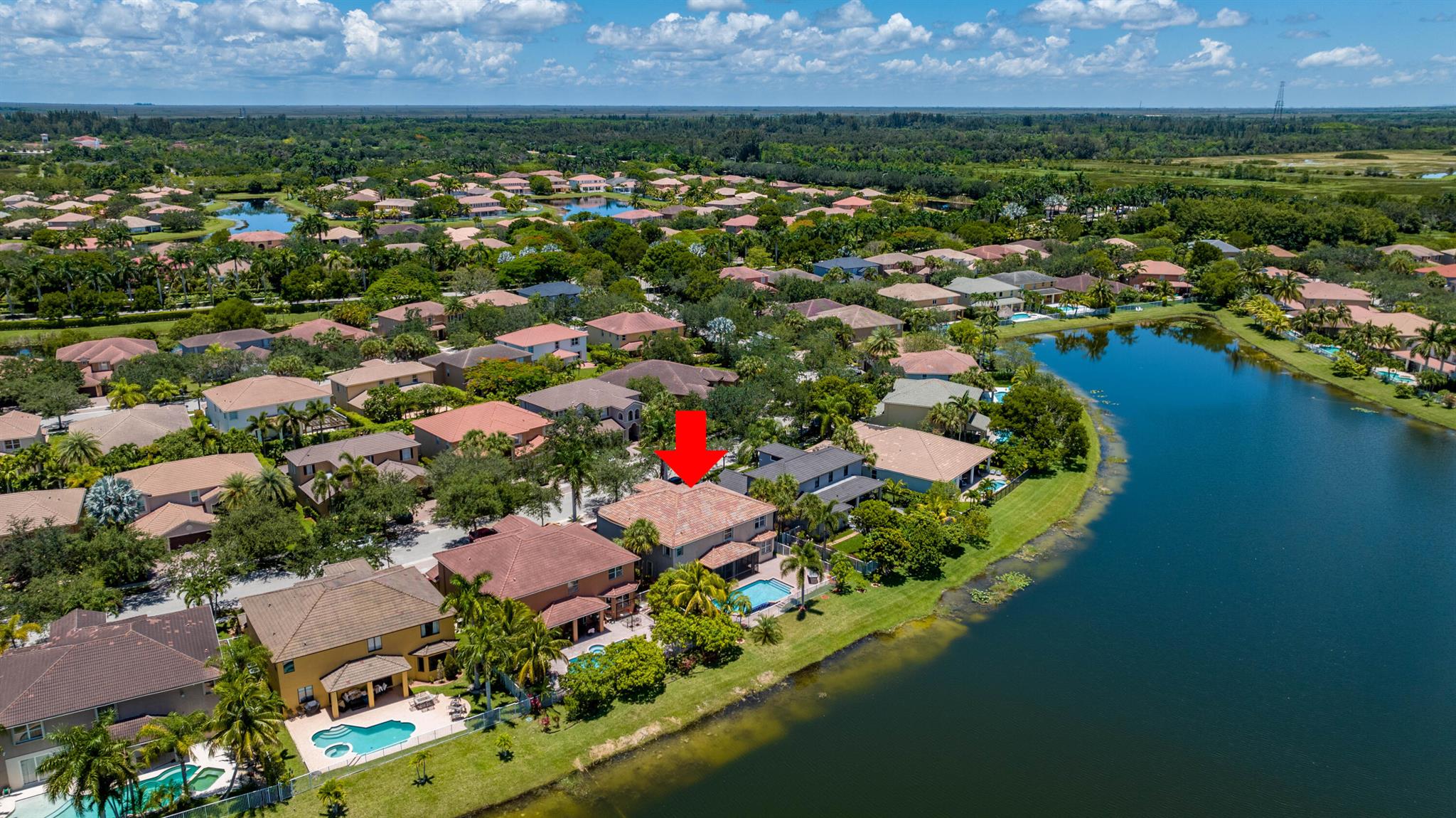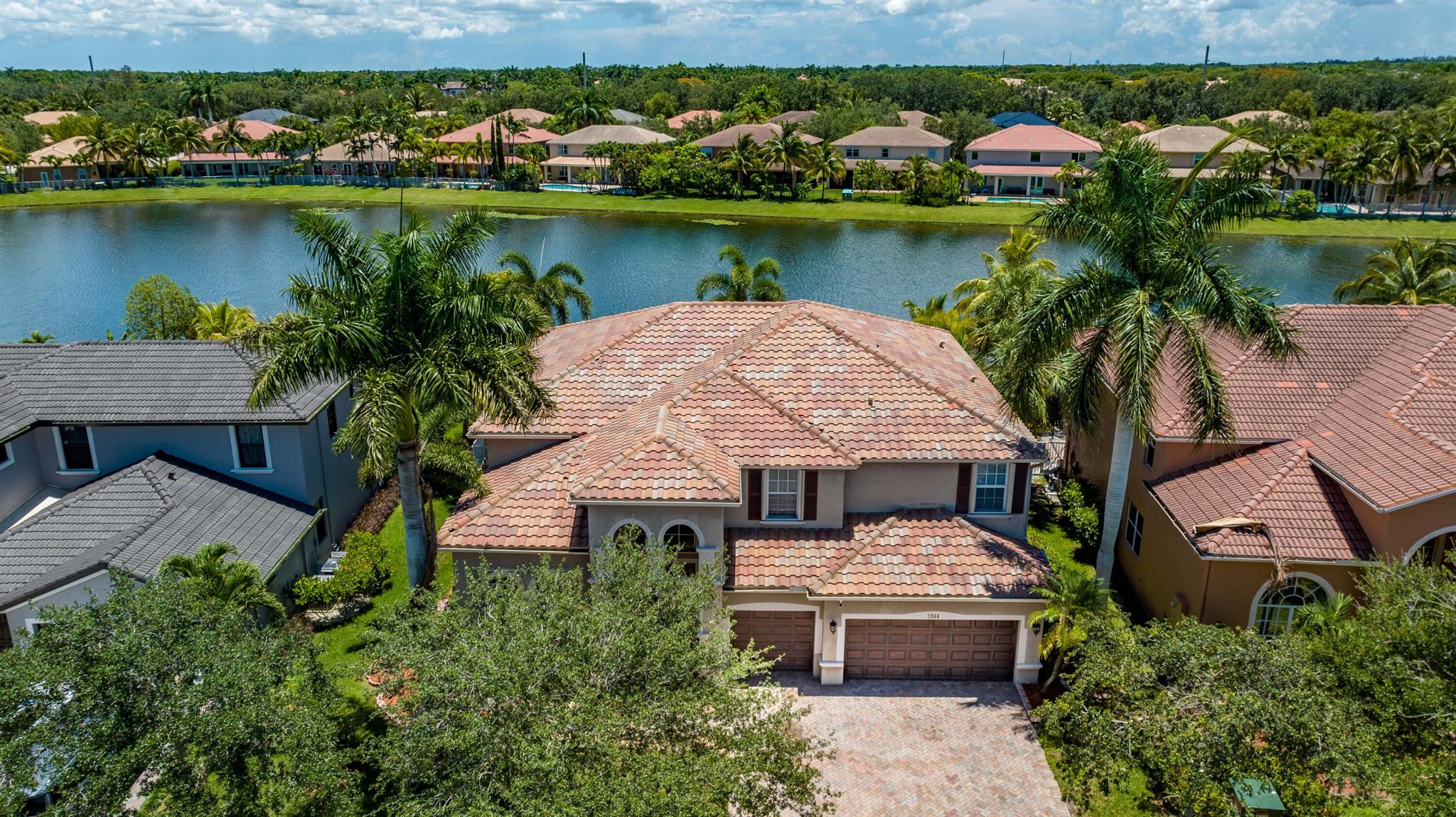 Take this opportunity on this amazing property when you enter you will find the open feeling layout along with the voluminous ceilings and porcelain tile throughout. The renovated kitchen w all new black stainless appliances opens to the breakfast and family area with built in large window bench that over looks the patio and lake. Family room with built in shelves, formal dining room & living room. Home has 5 BR + Loft w built in office area w/desk and built in bookshelves..The master (on 2nd fl) has a huge sitting area with two walking California style closets, a redone Master bathroom with tub/jacuzzi, There is a BR on first floor w it's on suite full bath, walk in closet and sliding glass door that opens to patio & lake. Upstairs is Jack & Jill type BRs (one w/built in shelves, and a