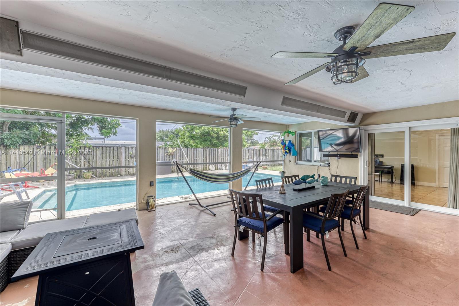 Welcome to Hollywood Hills living at its finest! Prepare to entertain in style as the covered patio, complete with ceiling fans, overlooks the inviting pool area. This gem offers a remodeled kitchen w/ exquisite granite countertops, while the updated bathrooms add a touch of modern elegance, porcelain tile throughout the home, and two driveways. Embrace eco-friendly living with solar panels, enhancing both energy efficiency and cost savings. Stay cool and comfortable with the benefit of two newer air conditioning units. Safety and peace of mind are ensured with hurricane windows, impact doors, and a hurricane-rated garage door. With its prime location, you'll be just moments away from a variety of restaurants, major highways, and the renowned Hard Rock Cafe.
