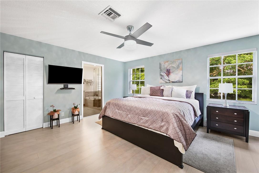 Tastefully upgraded 4 bedroom, 2.5 bathroom home in the gated community of Captiva Cay. No corner has been left untouched - new roof 2016, new AC 2019, impact windows and accordion shutters. Inside you will find freshly painted smooth ceilings and walls, porcelain tile floors downstairs and hardwood flooring upstairs, designer light fixtures, window treatments and hi-hats. One of a kind kitchen is equipped with Viking cooktop and double ovens, LG fridge, dishwasher and wine cooler, open shelving concept creates a modern look while maximizing storage in your pantry. Upstairs Master suite w/2 walk-in-closets, all bathrooms have been renovated. Situated on a pie-shaped lot, you have plenty of room for outdoor entertaining, kids and pets to enjoy, or to build a pool. Gated community, A-schools