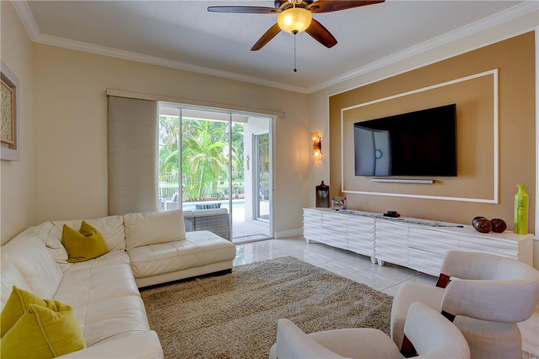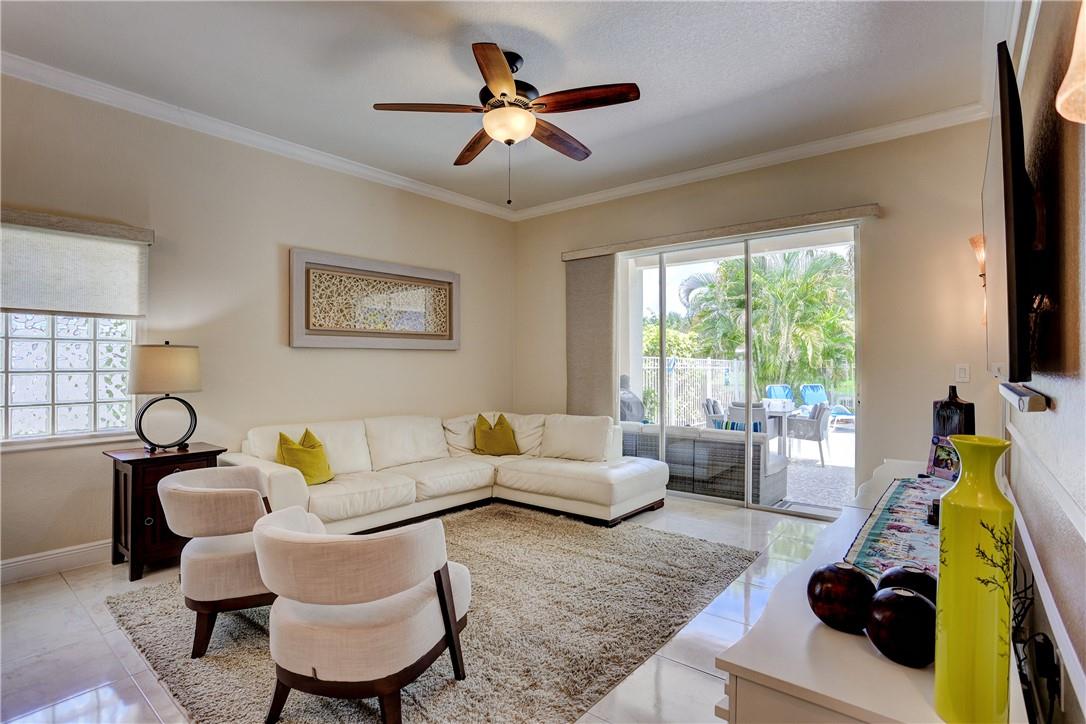 Meticulous modern home with salt water pool and Canal awaits your family. Relax in the backyard with pool overlooking the Fresh Water Canal which gives complete privacy. The landscaping is breath taking. Located in the prestigious community of Emerald Estates featuring 24 hours guarded entrance, fitness center and community pool. This home shows like a model. Enjoy this one story, 3/2 with the 4th bedroom used as a sitting area/office in the master bedroom. The kitchen showcases new stainless-steel appliances and granite; crown molding throughout and beautiful light fixtures. *New Roof 2022, A/C unit 2022, exterior painted 2022. Hurricane shutters and much more!!! Residents enjoy Emerald Estates Park and A+ schools. Some furniture negotiable. Come and see today. This won't last.