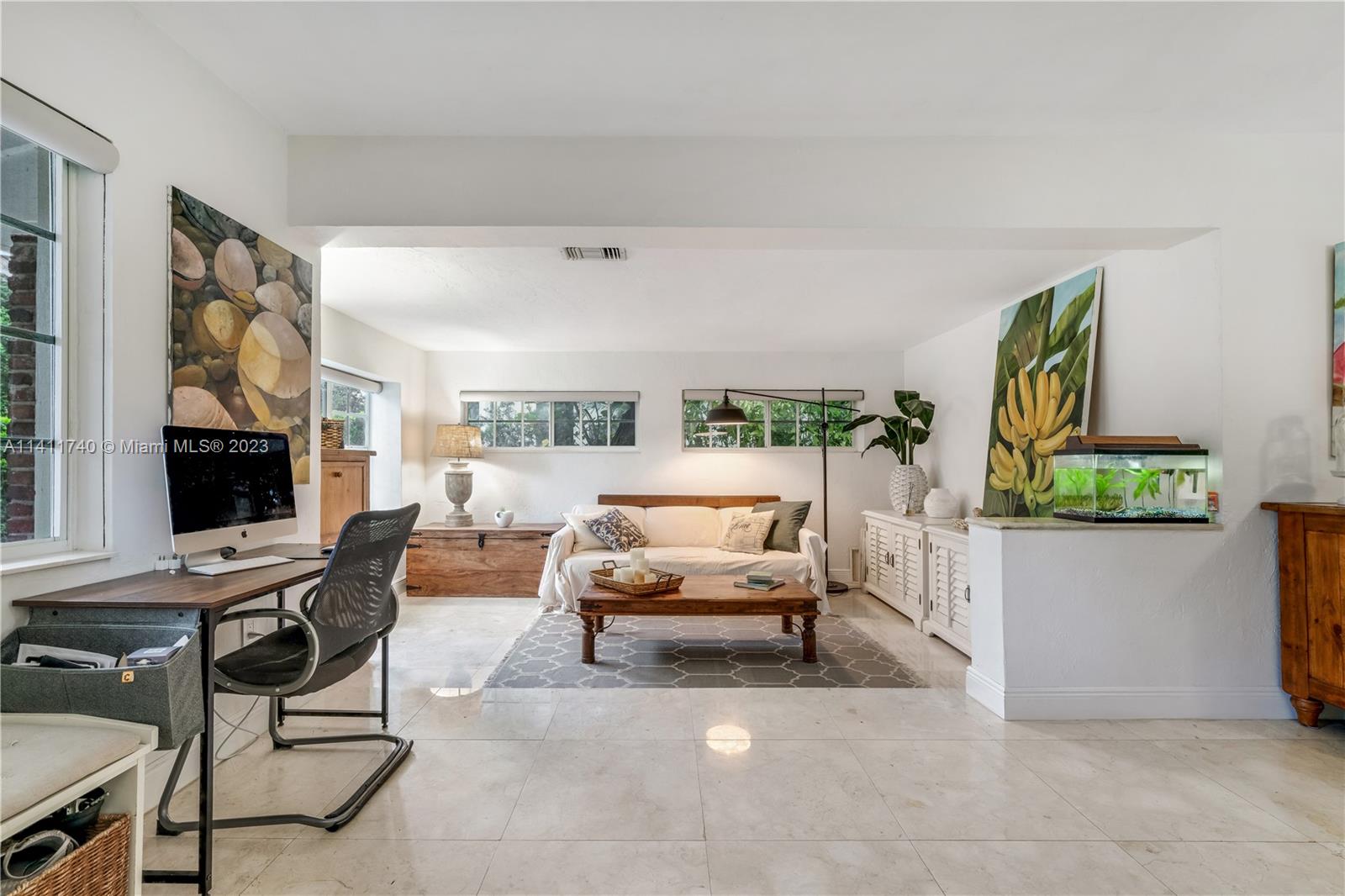 South Coral Gable charm, this ideally situated home is settled west of La Jeune and east of US 1. On a quiet street, this home consists of 3 bedrooms, 2 bathrooms with 1300 sq. feet of living area. A private backyard of 6600 sq. feet with its oversized pool makes this ideal for entertaining close friends and family. The home provides an open plan, and clean lines, with modern attributes. Minutes from Miracle Mile and the central district of Coral Gables, there is easy accessibility to work and entertainment or a minimalize commute to Coconut Grove or Downtown. Whether working remotely or commuting, this home will be suitable to meet any needs. This residence offers you Coral Gables living at its best while providing a quiet, practical, and secure lifestyle.