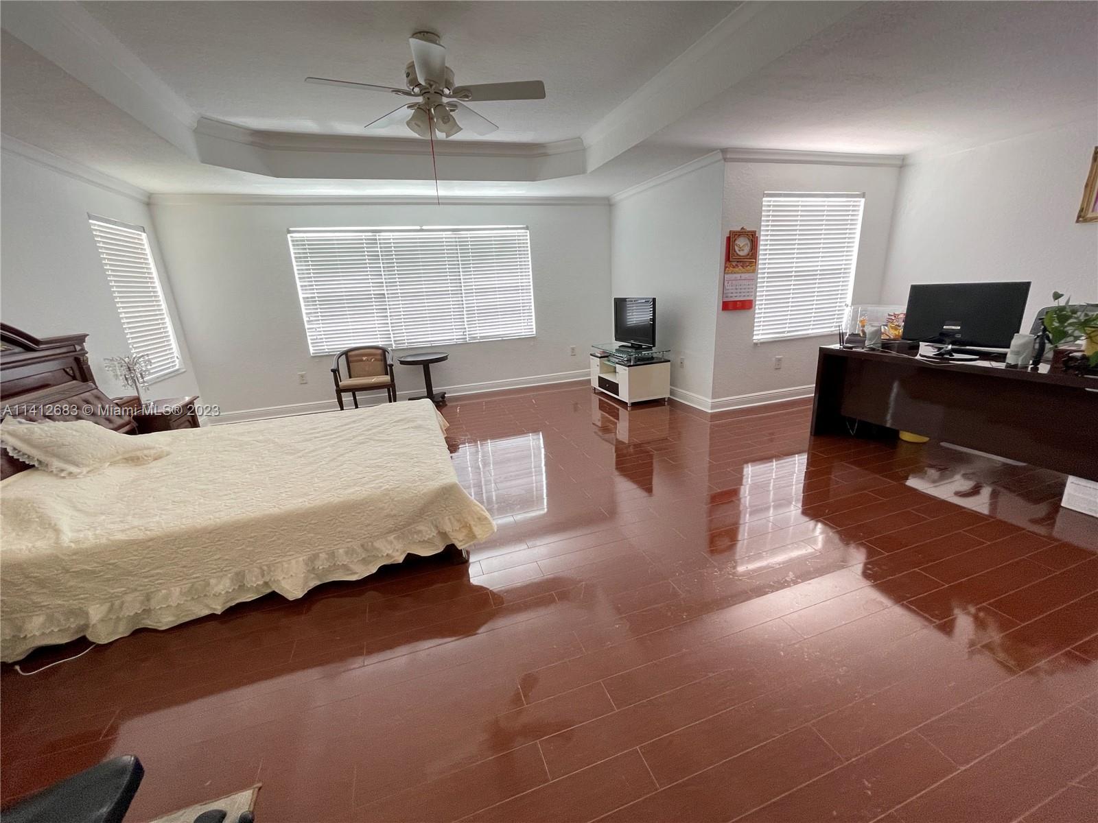 Stunning lake view property in Sunset Falls. 6 Bed rooms 4 bath, 1 bedroom 1 bath downstair. Marble floor on 1st floor, real wood on 2nd floor. Huge master bedroom is over looking a panoramic lake. Great schools, close to shopping and highways. 24 hours security guard gate. Amenities including a resort-style swimming pool & spa, tennis & basketball courts and a clubhouse. 10 mins away to a proposed megamall- American Dream Miami.