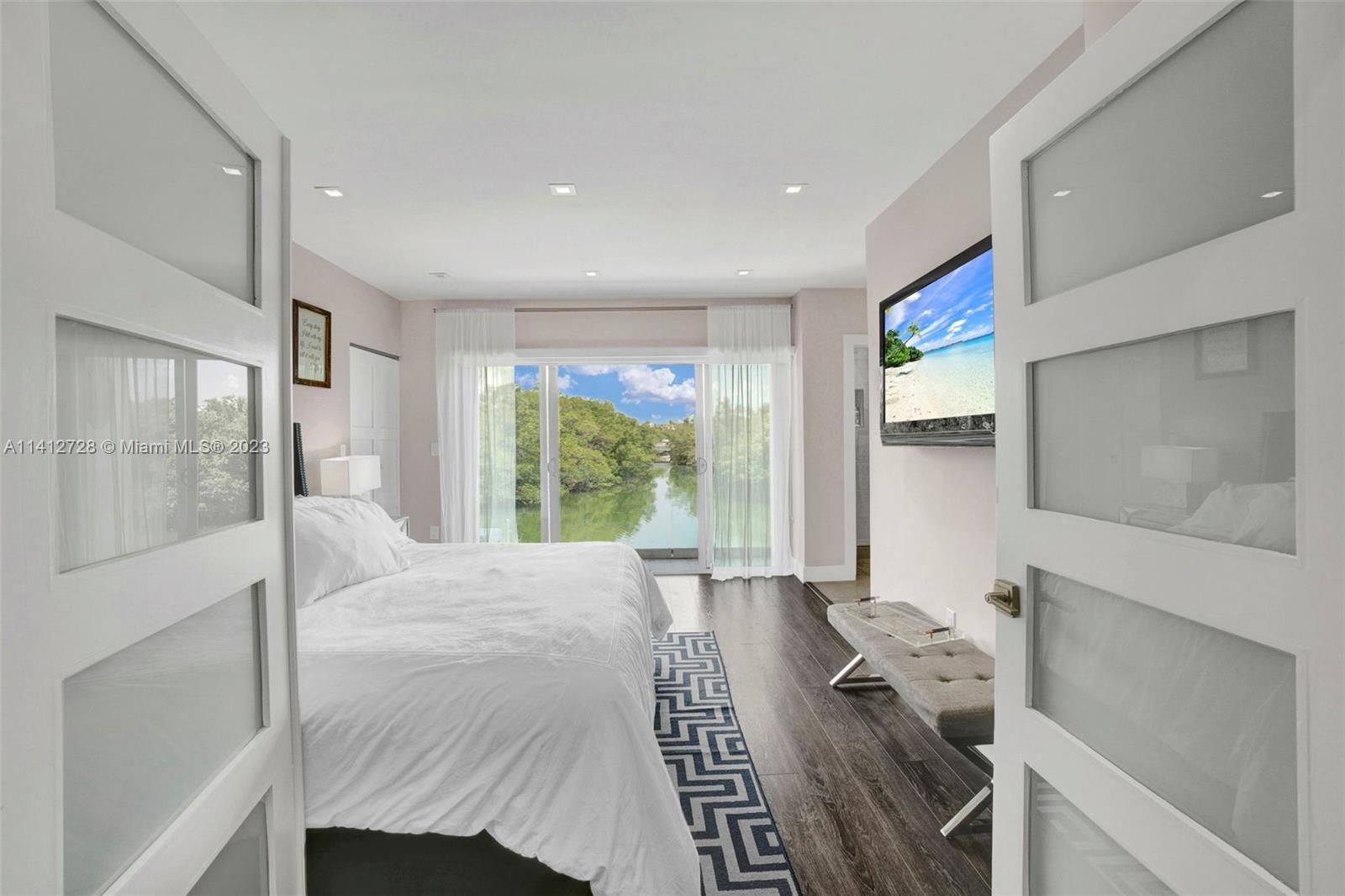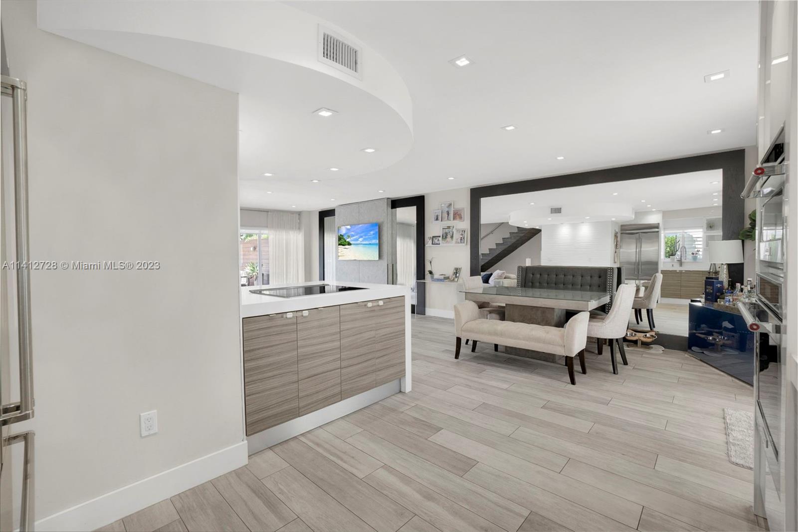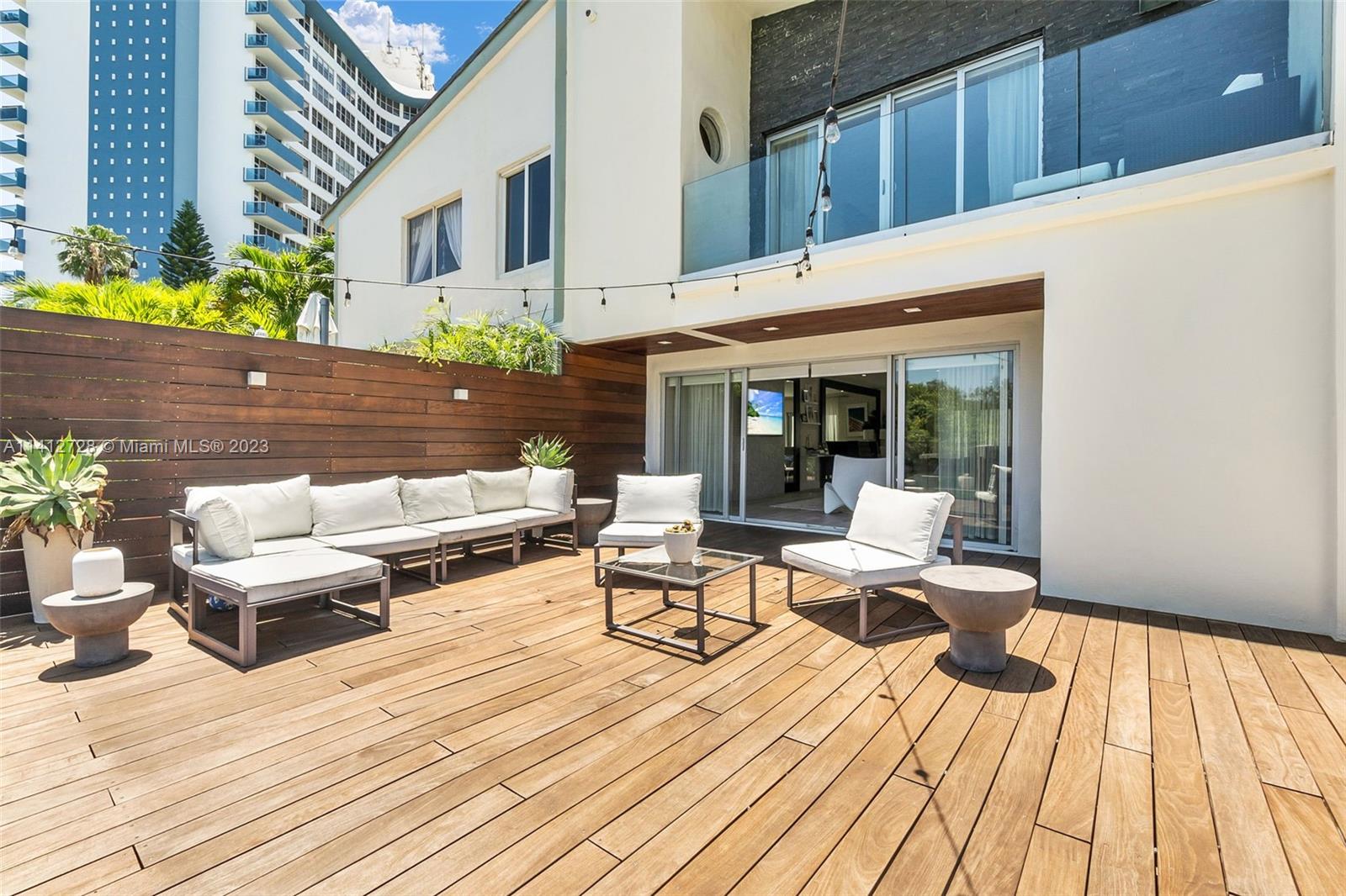 Fall in love with this remarkable 2 story townhouse 2 bedroom plus den 2 1/2 bath, waterfront with a spacious private deck with a 32 ft dock for your boat, with access to the ocean and no fixed bridges, within a five minute walk to the beach. Amazing view from living room to open bay and protected part of the Biscayne Estuary. Open floor plan, updated, master bedroom view to bay and no association