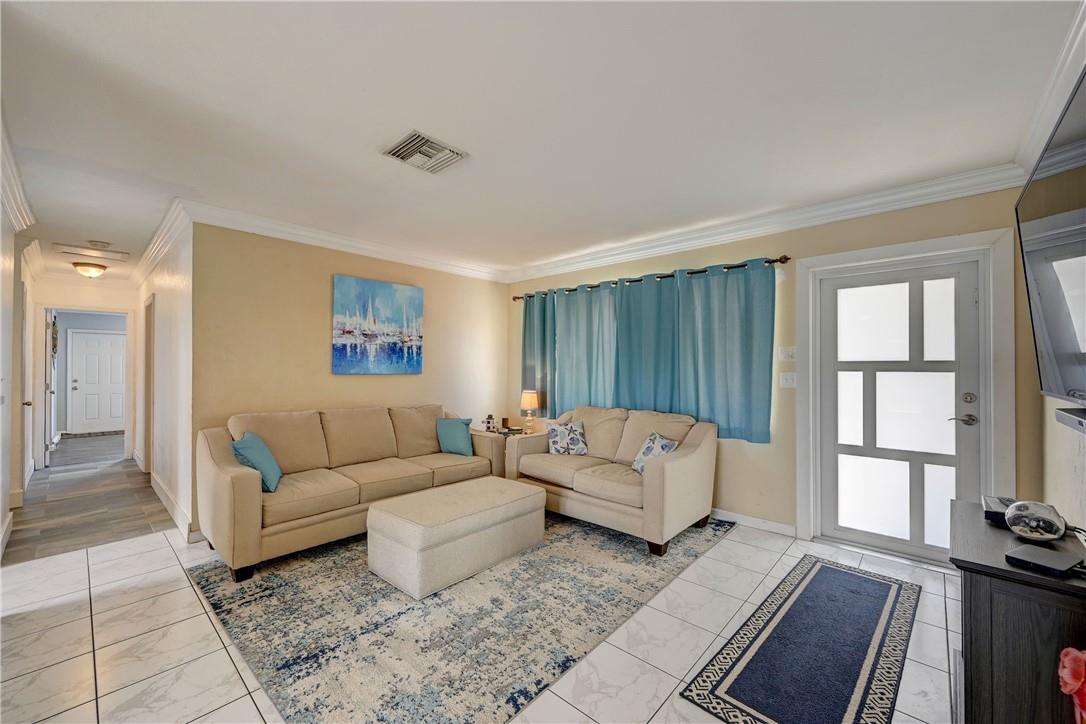 Charming 2 bed/2 bath home w/ pool and bonus room. Recently appraised $483K! This comfortable residence features hurricane impact windows and doors throughout. The interior boasts a delightful enclosed sunroom under AC. This home offers a cozy and inviting atmosphere with a functional layout. You will love the large primary bedroom with its double sink primary en suite bathroom and a walk-in closet with custom built out shelving. Take advantage of the refreshing pool for those hot summer days. Don't miss out on this affordable gem, now priced below appraisal! Sq Ft to be verified by buyer. NOTE: Still taxed as 3/2 - a former owner combined two small bedrooms into the large primary suite. One could easily add AC to the already enclosed carport bonus room to make a 3rd bedroom.