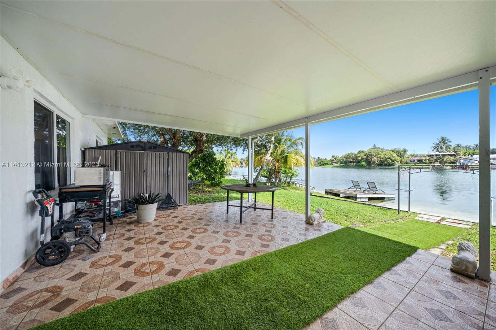 Rare lake view home in a desirable area of Hialeah! This 4 bedroom, 2 bathroom home has a private attached efficiency with its own private entrance, bedroom, bathroom, living room. This is perfect for a mother-in-law suite or as passive income. This home has all brand new 2023 hurricane impact windows, new A/C and new electrical panel were installed in 2022. New 2023 exterior paint and a partial roof replacement was done in 2021. Enjoy your private oasis with your private dock and access to the lake where electrical powered boats are allowed. Relax under the covered back porch with the water views. Park any commercial vehicle or your boat in the front circular driveway as there is no HOA! Nested in an enjoyable neighborhood and centrally located, come see this home today!