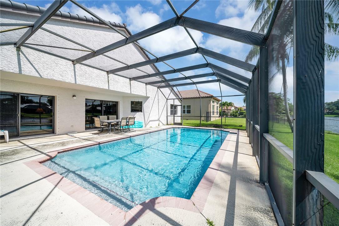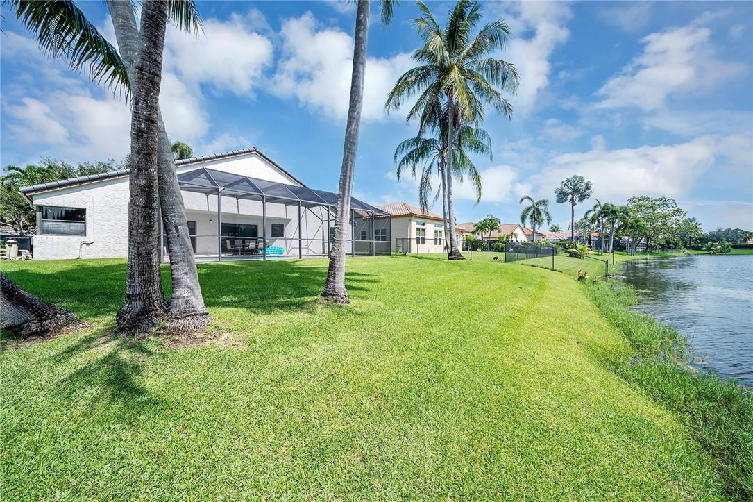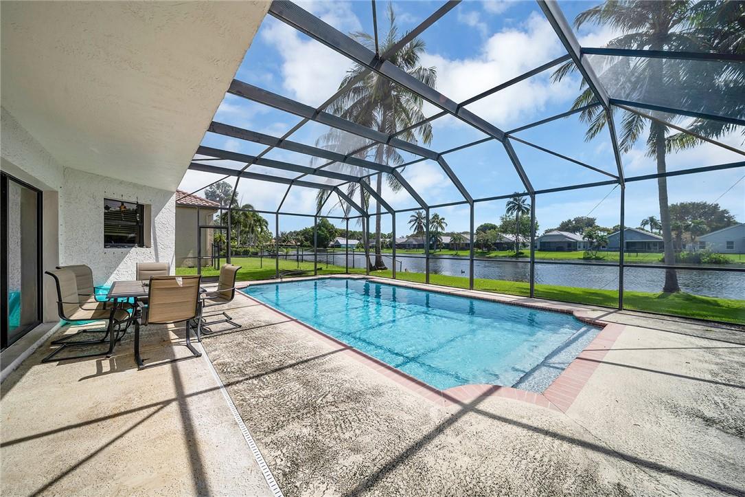 This comfortable home is located in the wonderful neighborhood of North Orchard. Only one entrance this quaint circular street is known as kid & pet friendly, hidden from traffic. This home is situated on a huge rarely available, preferred east facing waterfront lot, capturing prevailing SE breezes. This Custom Designed Home features a Bright & Open Concept, a perfect decorator ready floorplan. The Chef's Kitchen features Plenty of Counter Space & Breakfast Bar, opens to a Vaulted Great Room. Formal Dining Room flows thru the Living Room. Master Suite boasts an impressive layout & Vaulted Ceilings, spacious walk-in closet. The roomy Master Bath offers a Separate Shower & relaxing Garden Tub. Sparkling Pool, new pool heater, new screened patio, a Peaceful Lakeside setting**New roof '21**