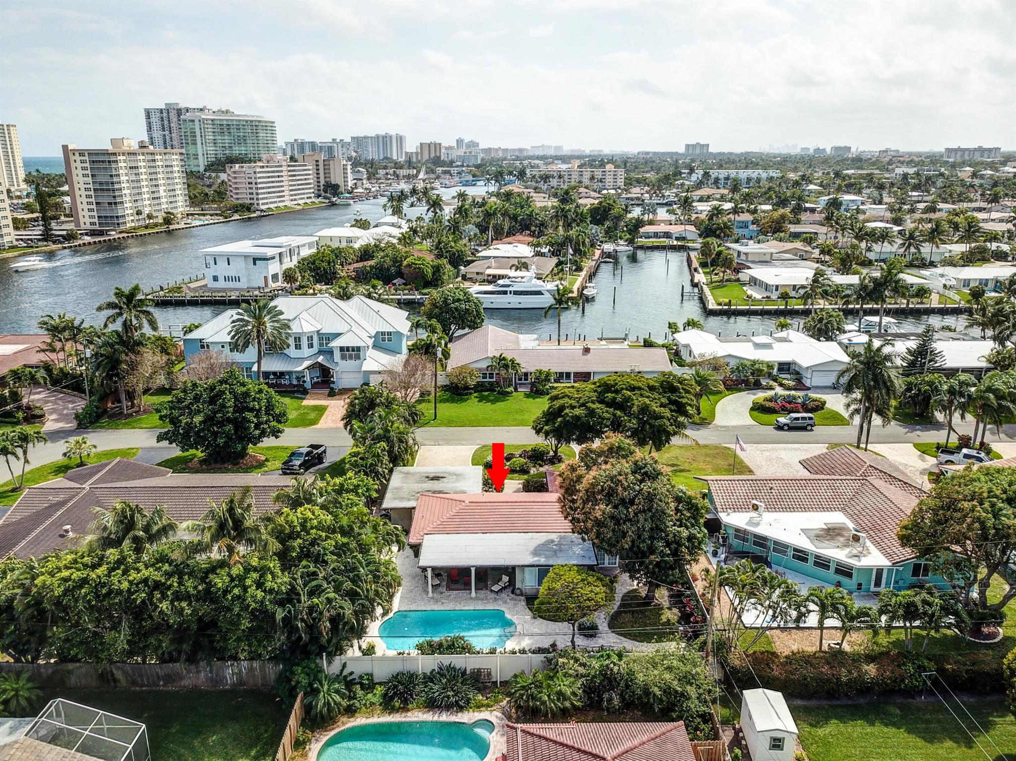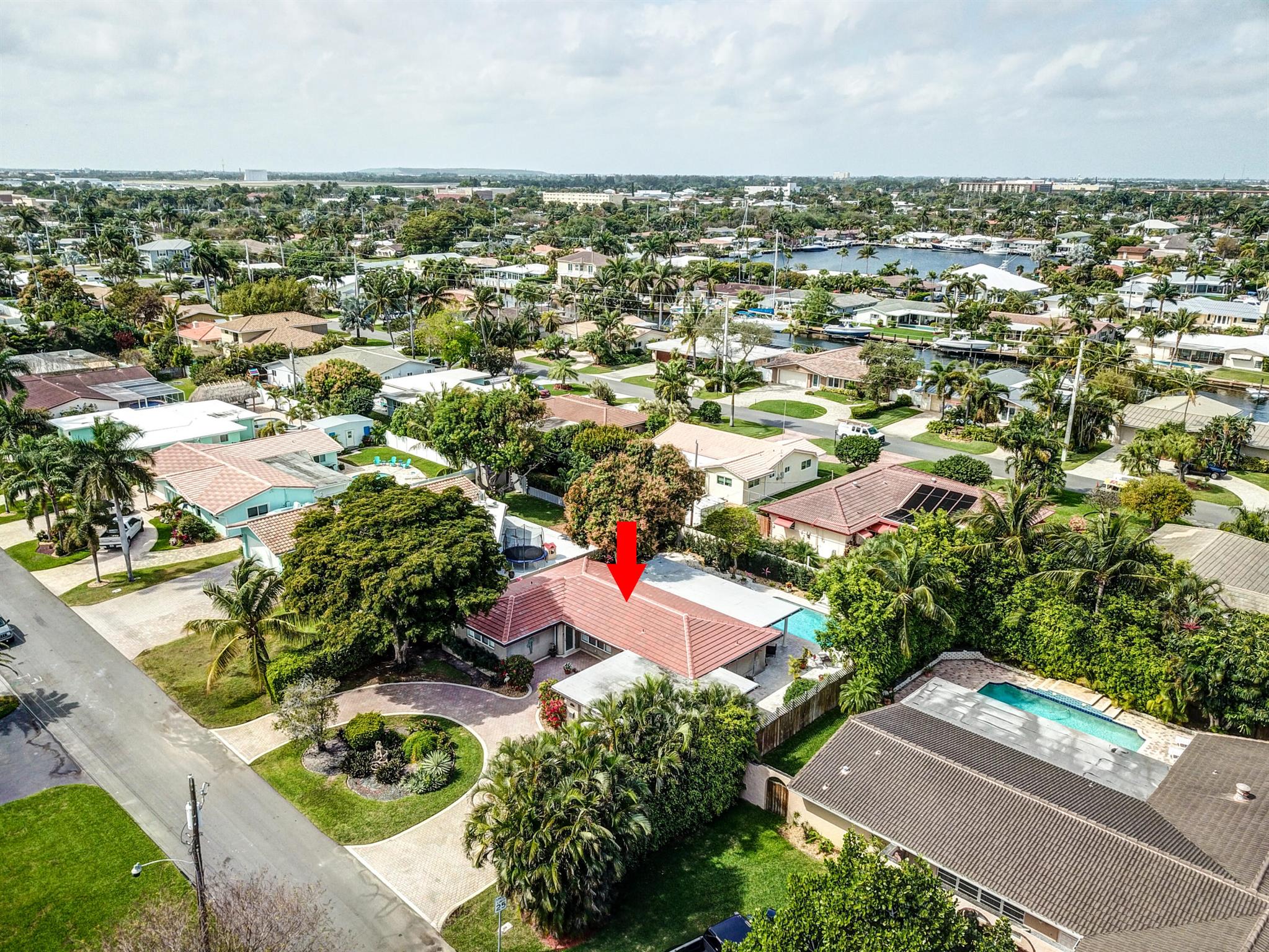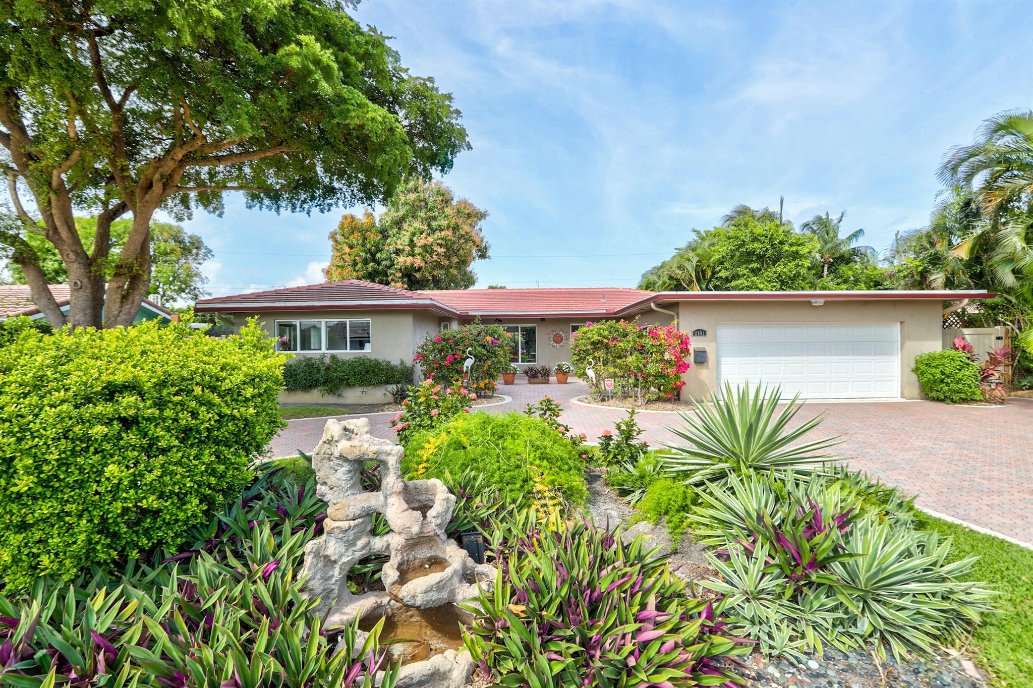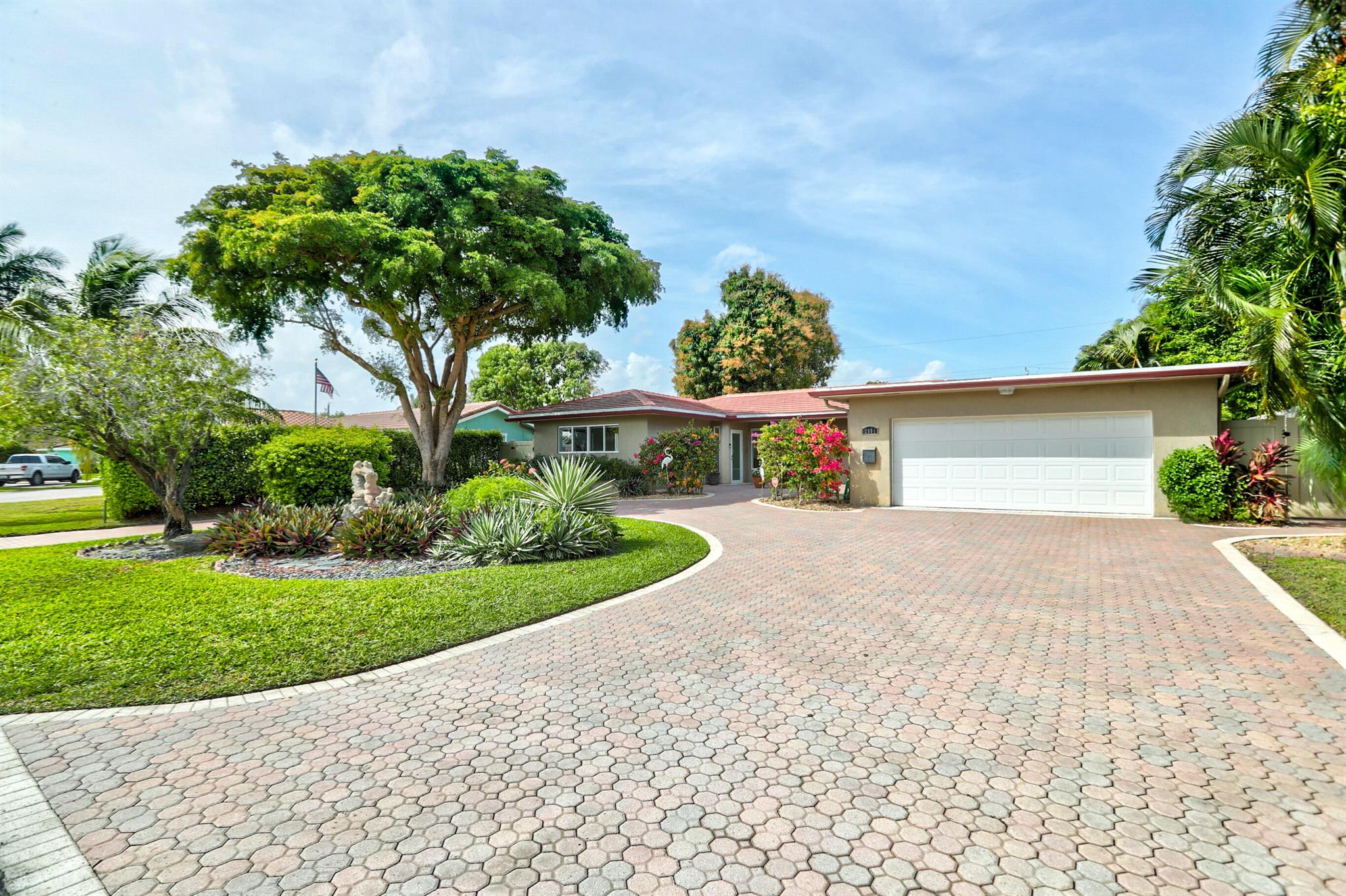 Tastefully renovated 2 bedroom, 2 bath + bonus room with private heated, salt water swimming pool. Everything you expect and need when you're heading to Sunny South Florida! This spacious and ideally located single family home is less than a stones throw from the intracoastal and local beaches and is situated on a large and welcoming lot with sweeping circular driveway and luscious greenery. Open family room, kitchen and dining area with an abundance of charm. Fully air-conditioned with attached 2 car garage, covered porches, modern kitchen and much more. Washer/dryer inside off of kitchen. Photos were taken prior to leasing to tenant in 2021. Impact glass and newer roof (2018).