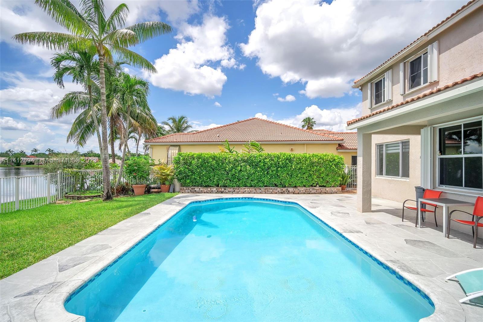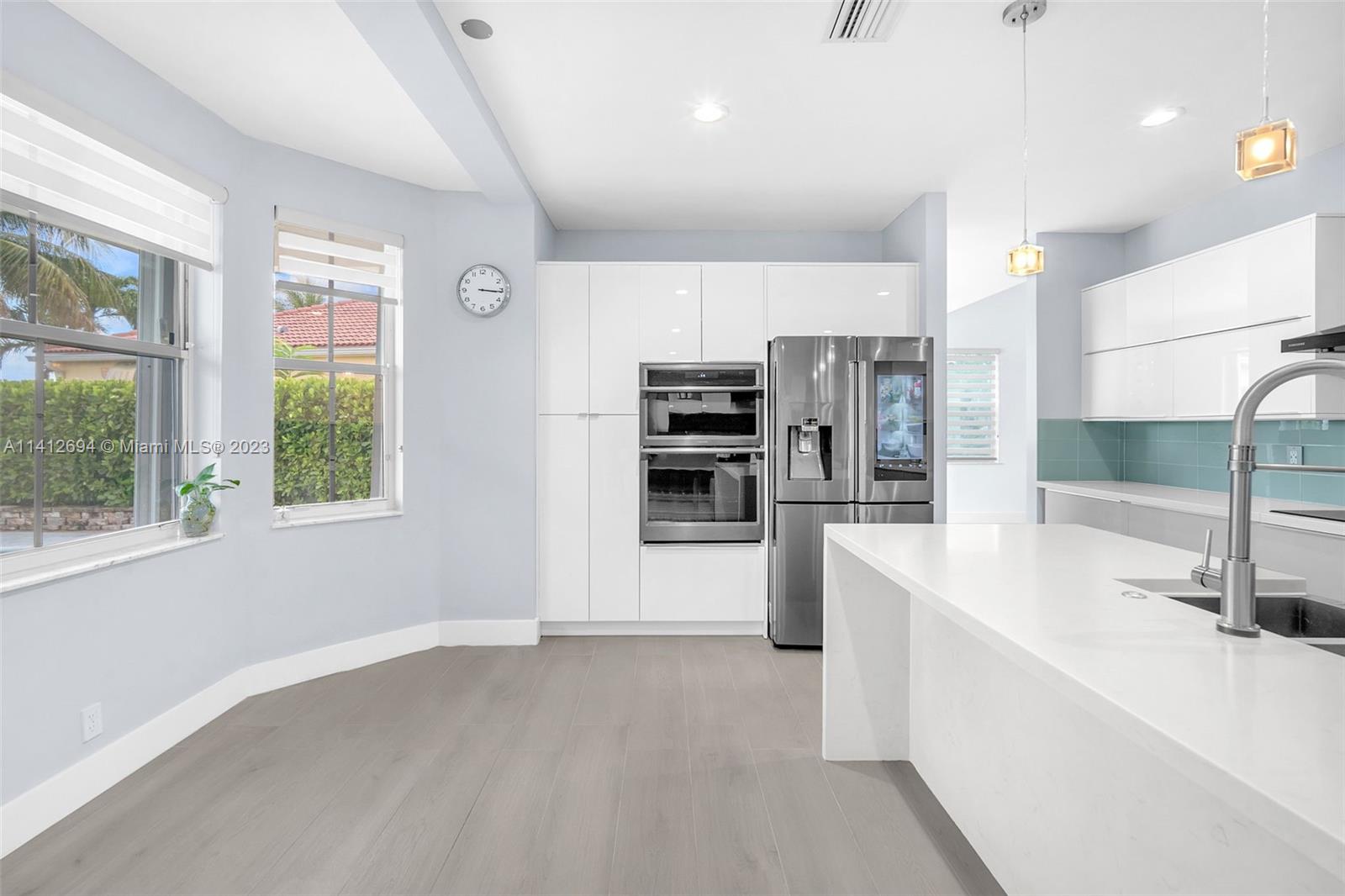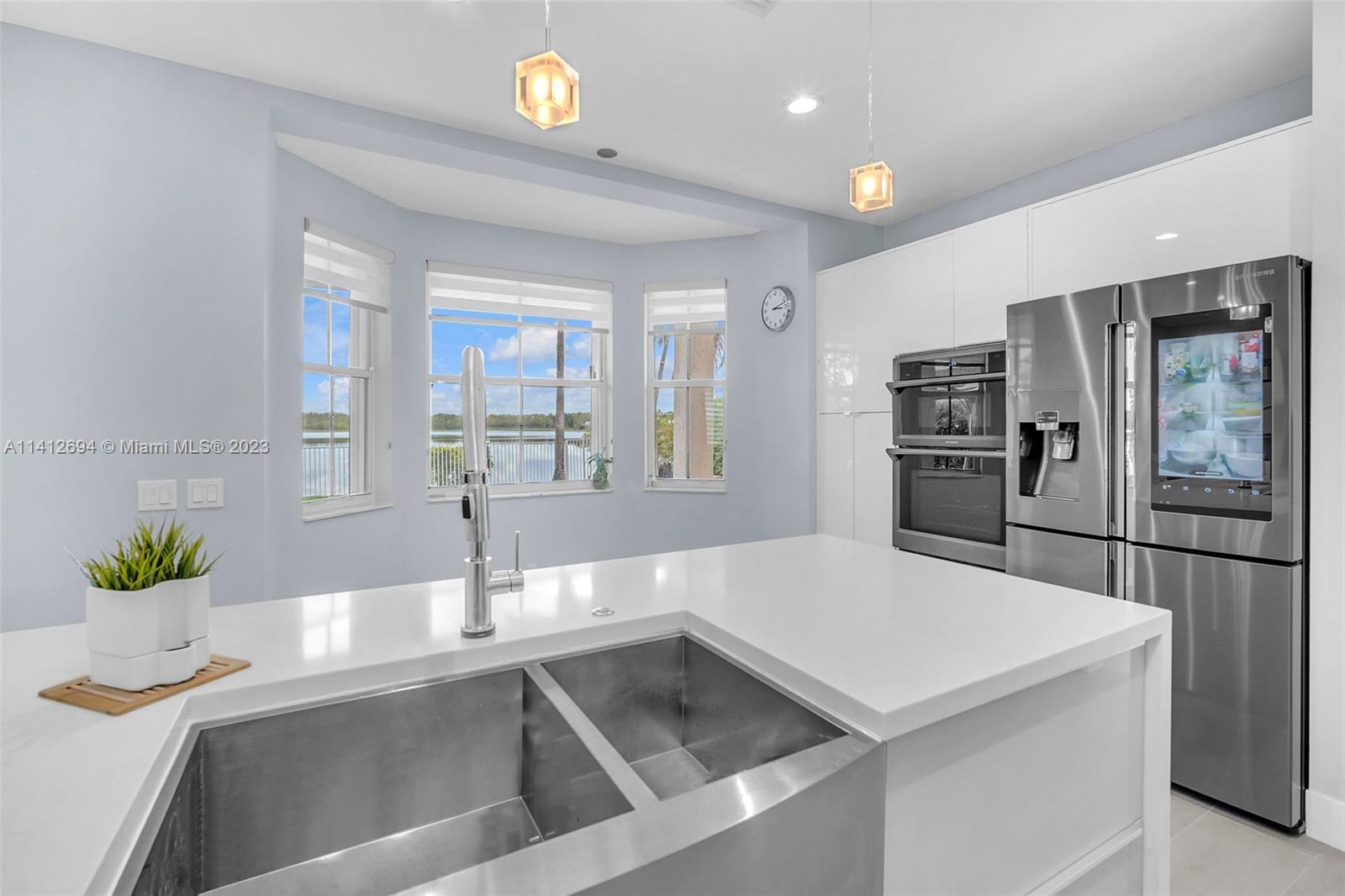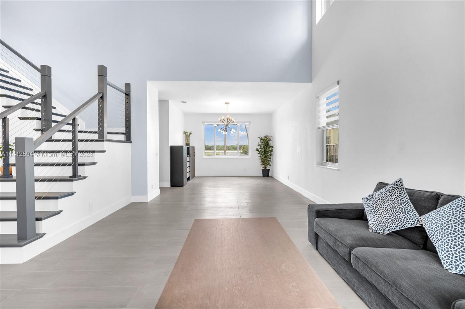 This beautiful, modern 4bed 2.5bath smart home has spectacular lake views on west side. The rustic, fruited entrance with rocks & orchids leads into an open, 20' ceiling, well lit living/dining area with stunning chandeliers that showcase the wood & metal staircase. To your left is a large family area next to the kitchen & b/fast nook with quartz counters, state of the art Samsung appliances & cabinetry enhanced by a glass backsplash. The large master has a den + glass enclosed shower, with tub, double sinks, and finished dual closets. All bathrooms & closets have been refitted & all appliances are newer. Backyard has a pool, is well manicured, has Seegar Apple & Loquat trees + summer kitchen. Downstairs has ceramic, wood like tiles & upstairs is laminate. 5 parking spaces. A "WOW" home!!!