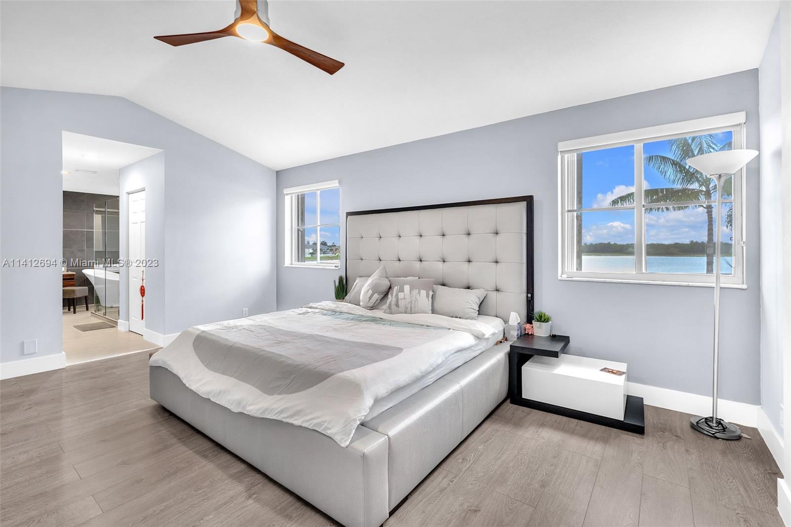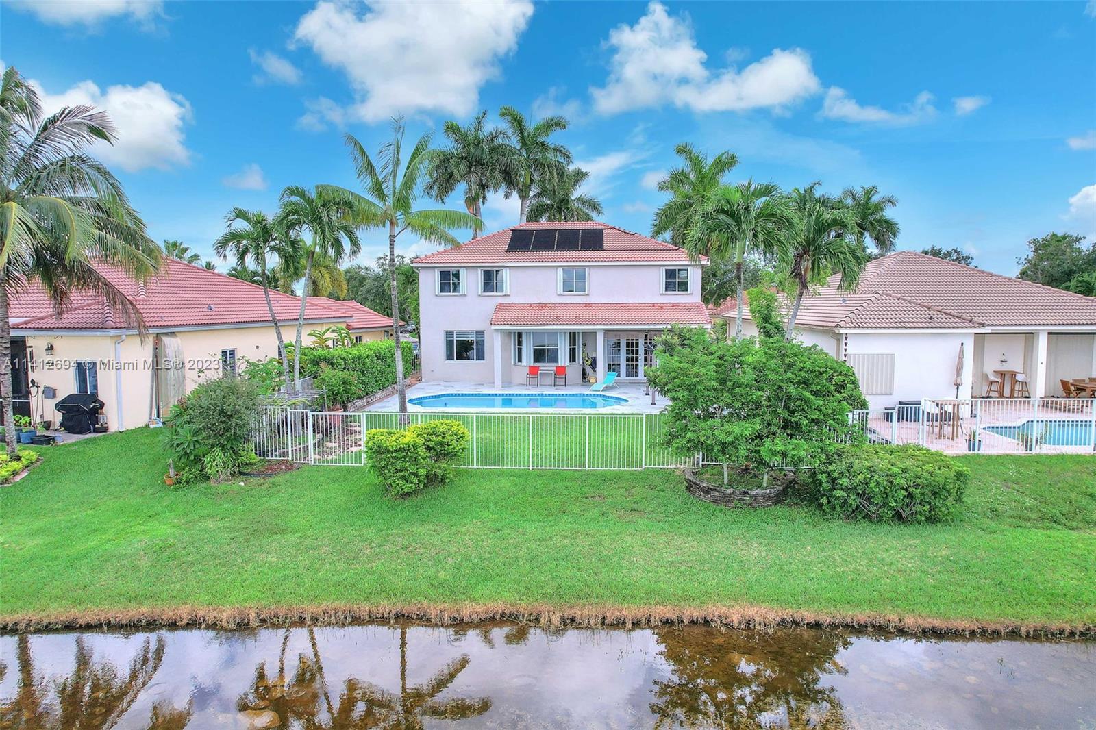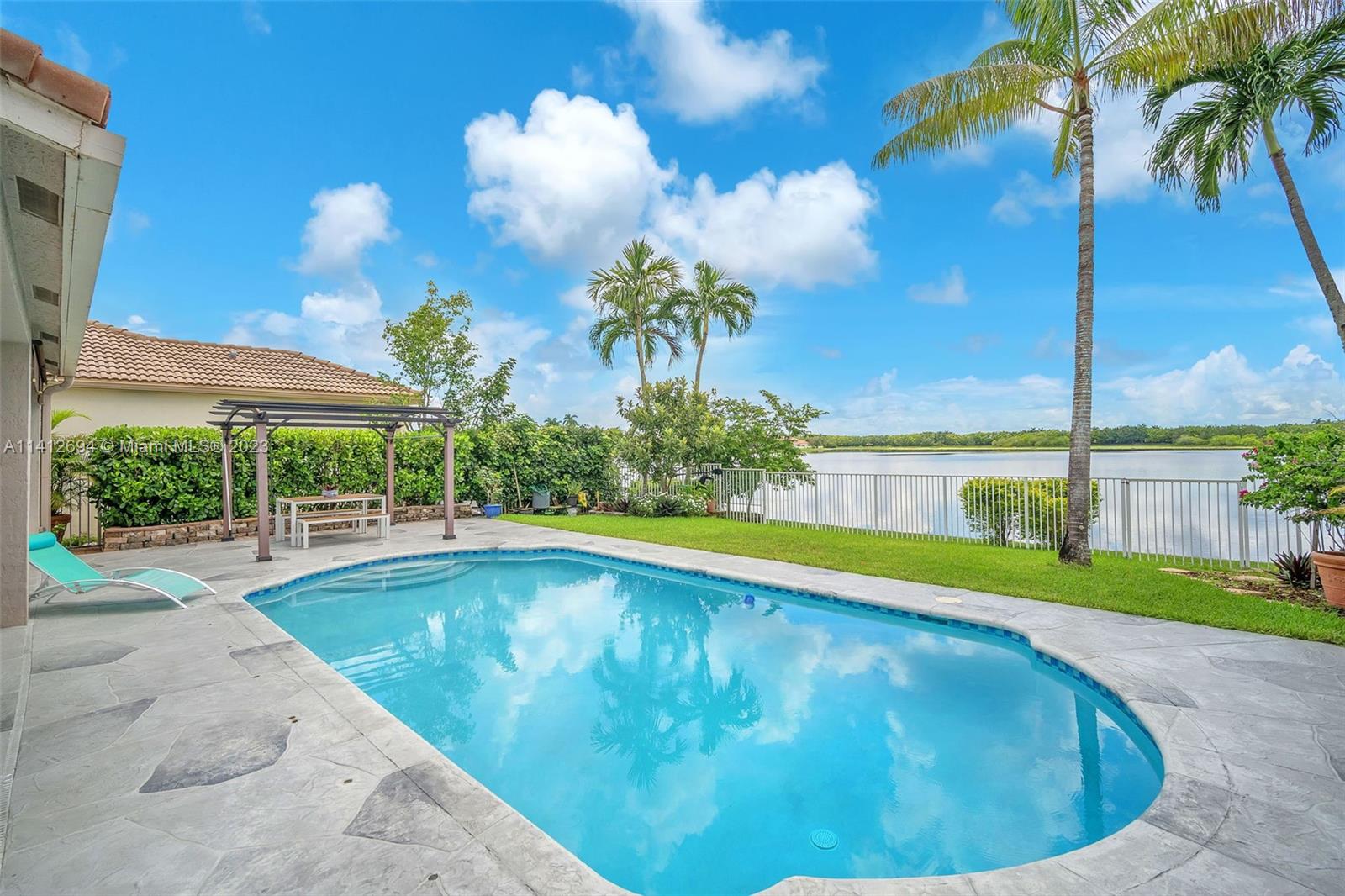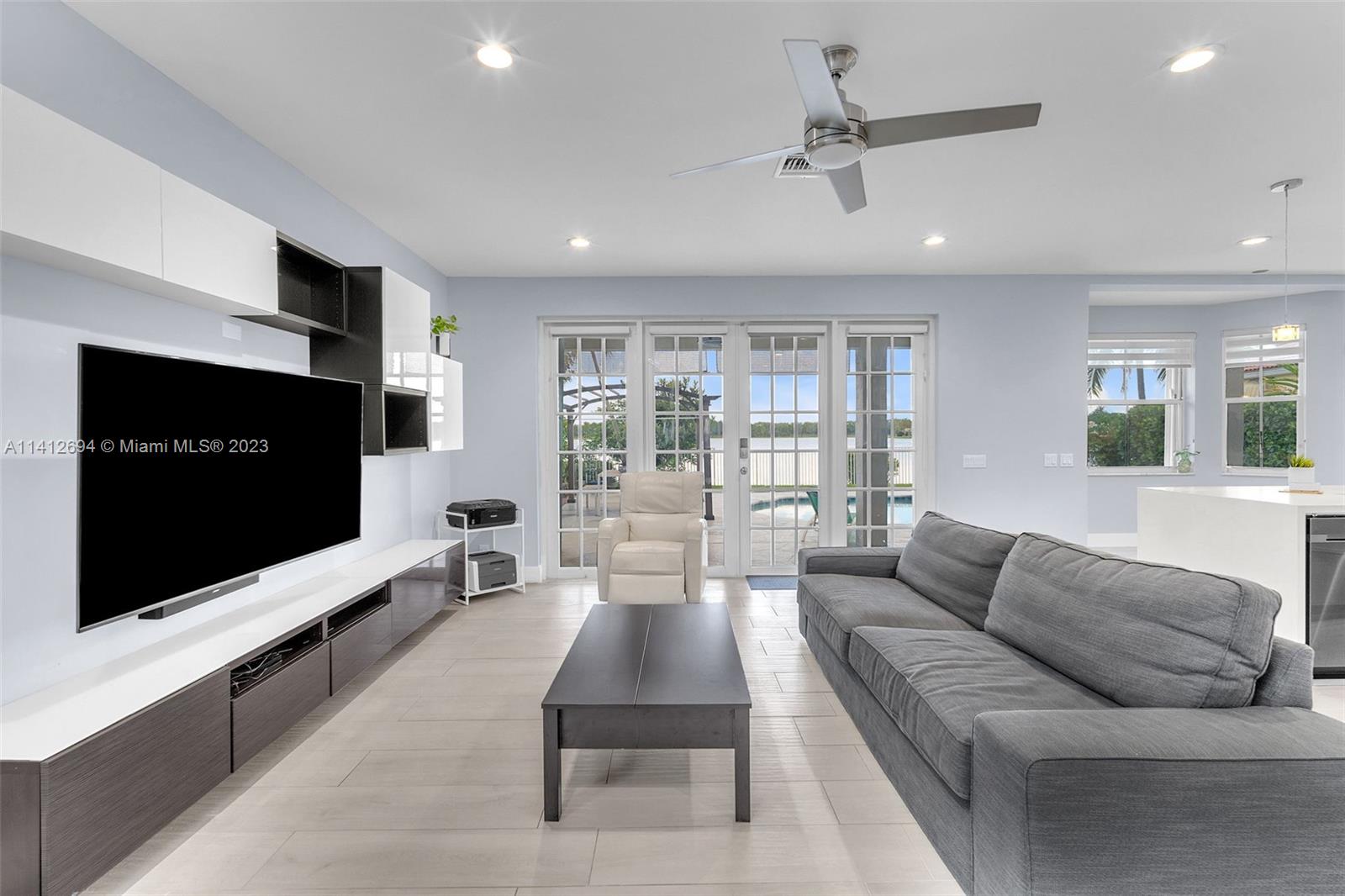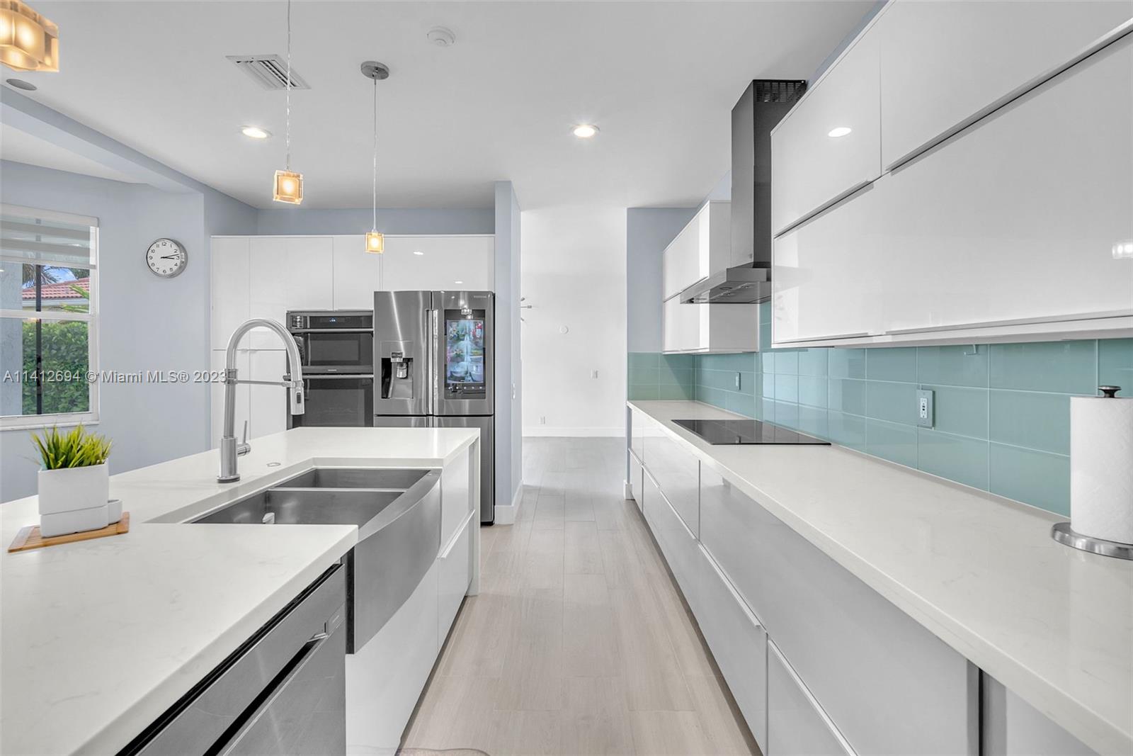This beautiful, modern 4bed 2.5bath smart home has spectacular lake views on west side. The rustic, fruited entrance with rocks & orchids leads into an open, 20' ceiling, well lit living/dining area with stunning chandeliers that showcase the wood & metal staircase. To your left is a large family area next to the kitchen & b/fast nook with quartz counters, state of the art Samsung appliances & cabinetry enhanced by a glass backsplash. The large master has a den + glass enclosed shower, with tub, double sinks, and finished dual closets. All bathrooms & closets have been refitted & all appliances are newer. Backyard has a pool, is well manicured, has Seegar Apple & Loquat trees + summer kitchen. Downstairs has ceramic, wood like tiles & upstairs is laminate. 5 parking spaces. A "WOW" home!!!