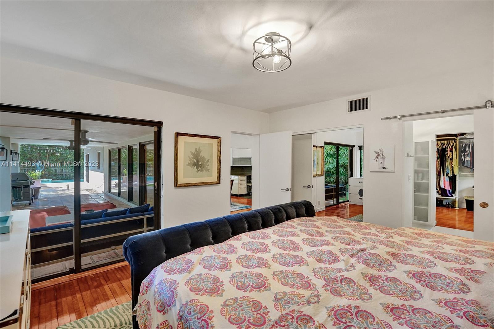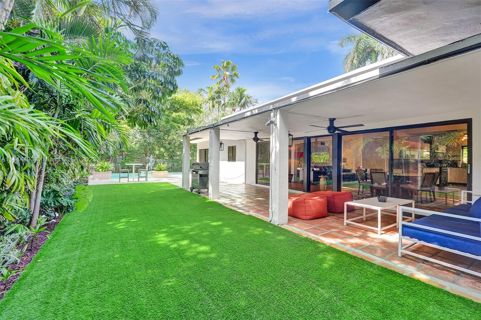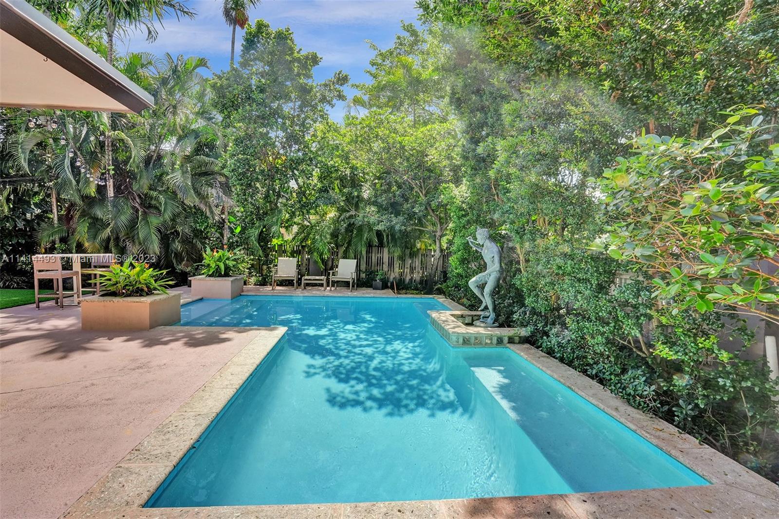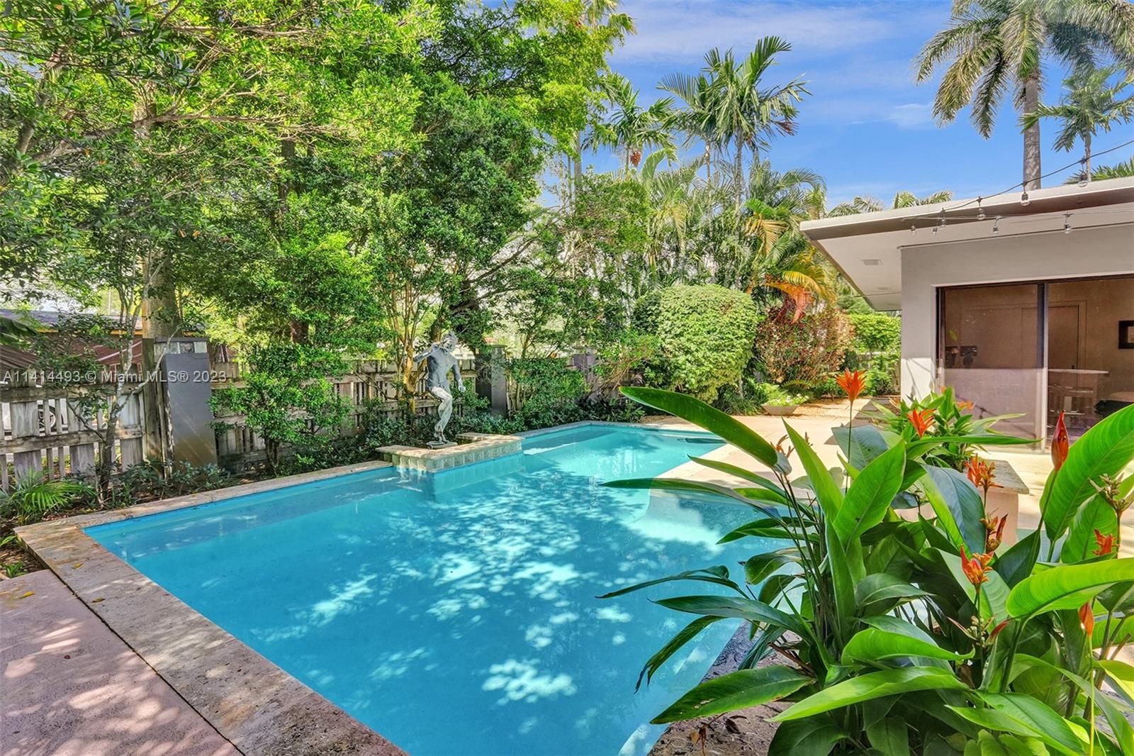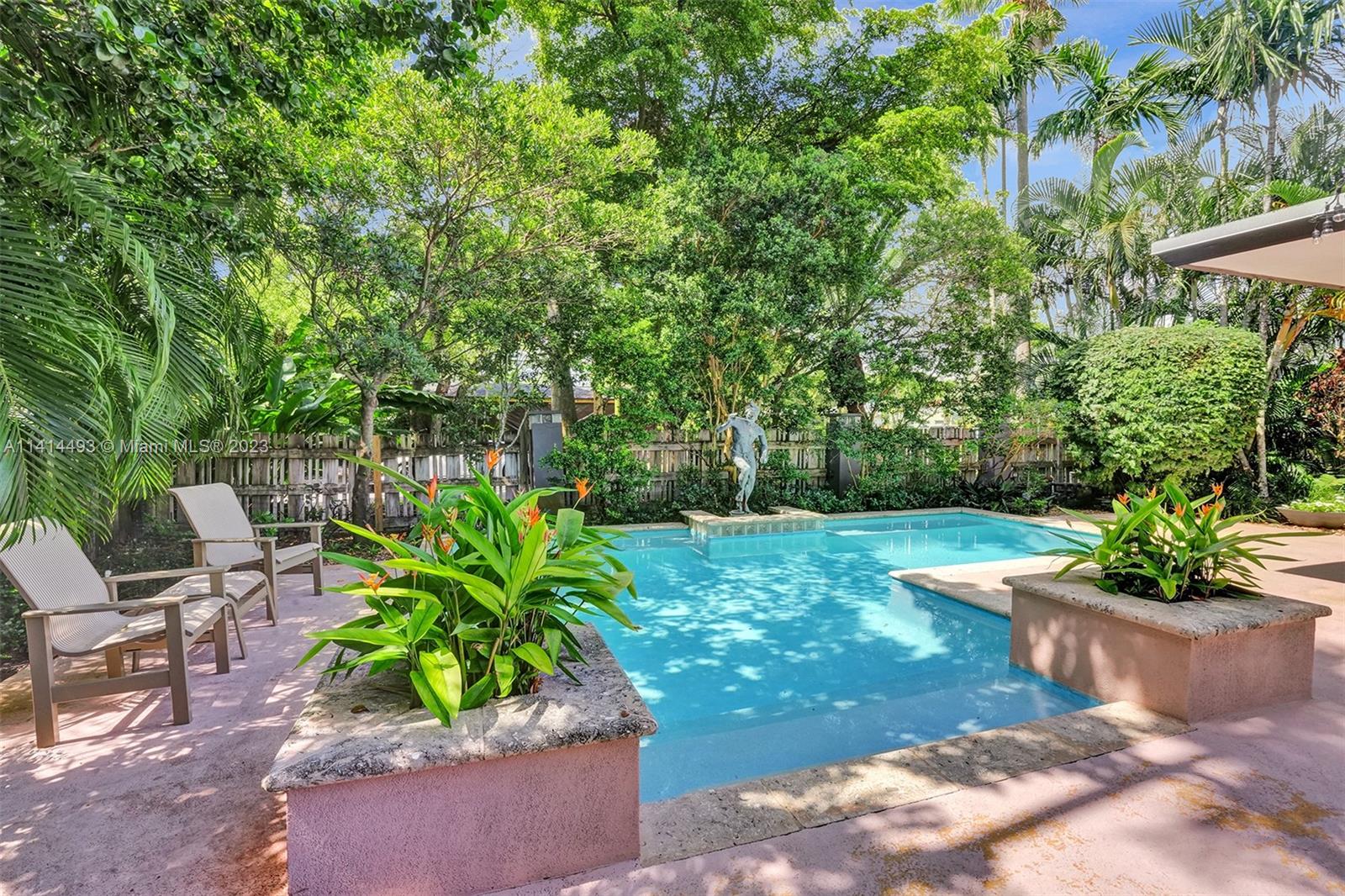COME SEE THIS MID-CENTURY MODERN MASTERPIECE. If you like entertaining space, natural light, manicured gardens, wall art & walkability, then this is definitely the home for you. Your life will be completely private from the outside hustle. This home is enclosed by a high-fence line & lush landscaping. A courtyard entrance that sets the tone & carries you along the back. Artificial turf offers soft comfort & ease. Dip into your custom-shaped soaking pool or relax under the large covered patio for outdoor dining. The interior is wrapped in sliders, both front & rear. High-volume ceilings & generous-sized bedrooms complement the living experience, balanced by a Nest dual-zoned system. A well-designed updated Kitchen w/ natural gas range. Everything about this home screams enjoyment.